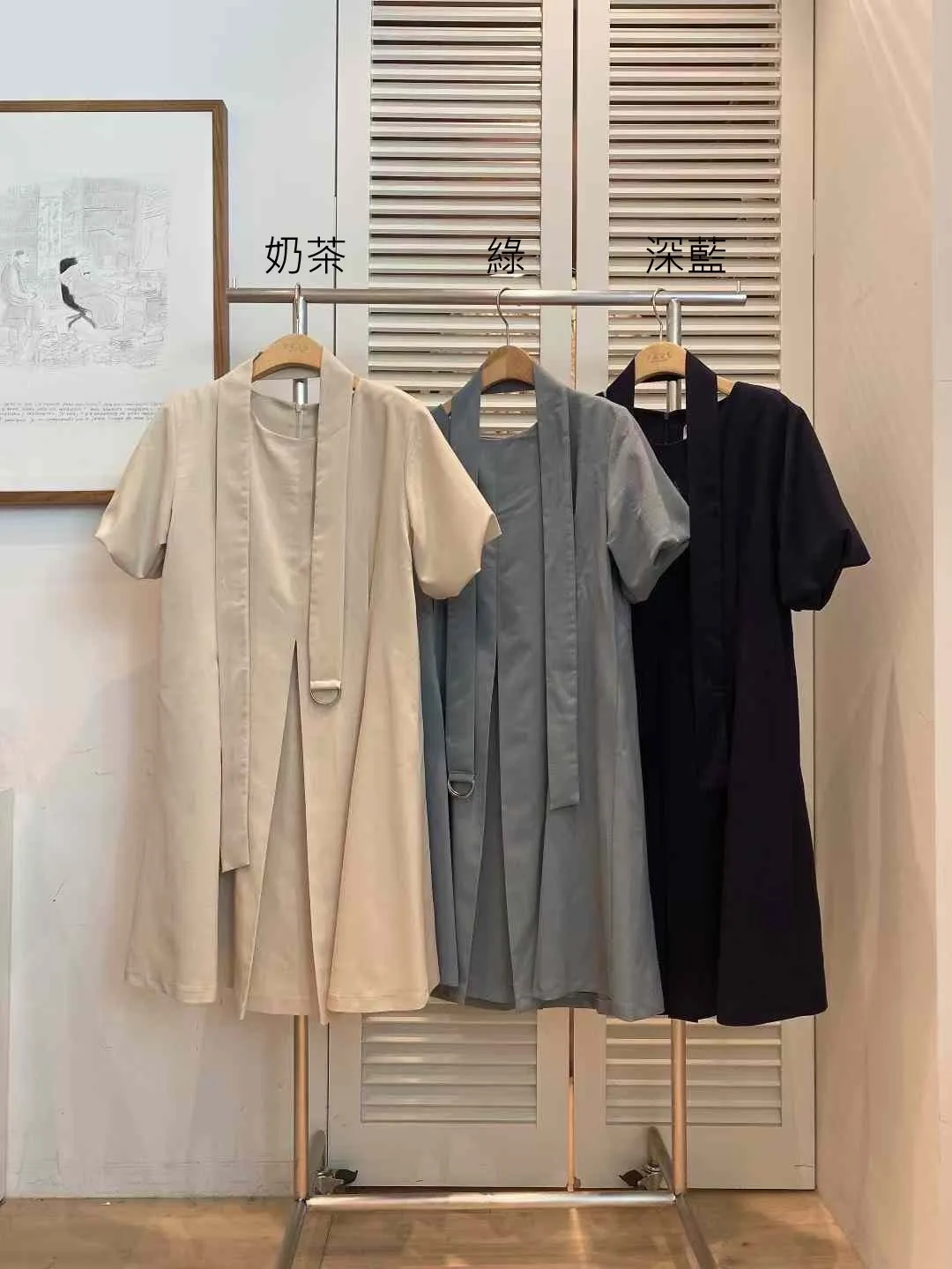 人造絲+聚酯+彈力 細腰俐落車線 綁帶可繞腰或頸帶 有內裡 後拉鍊穿脫