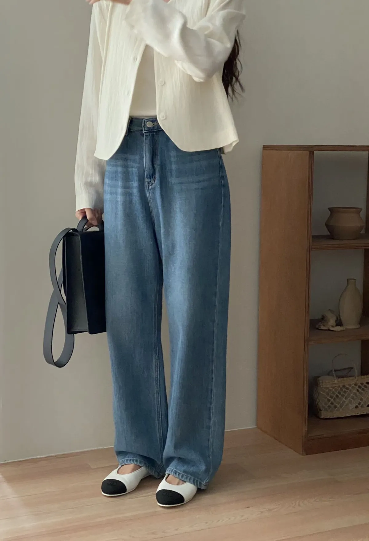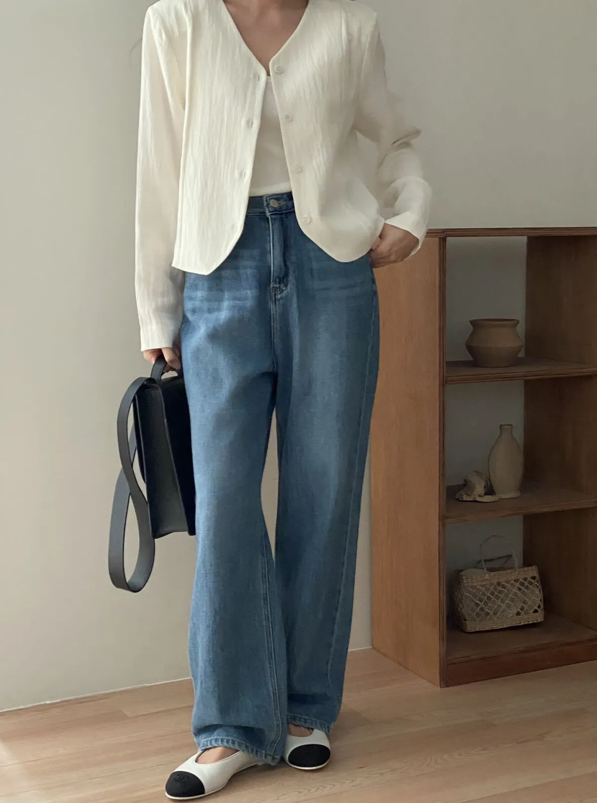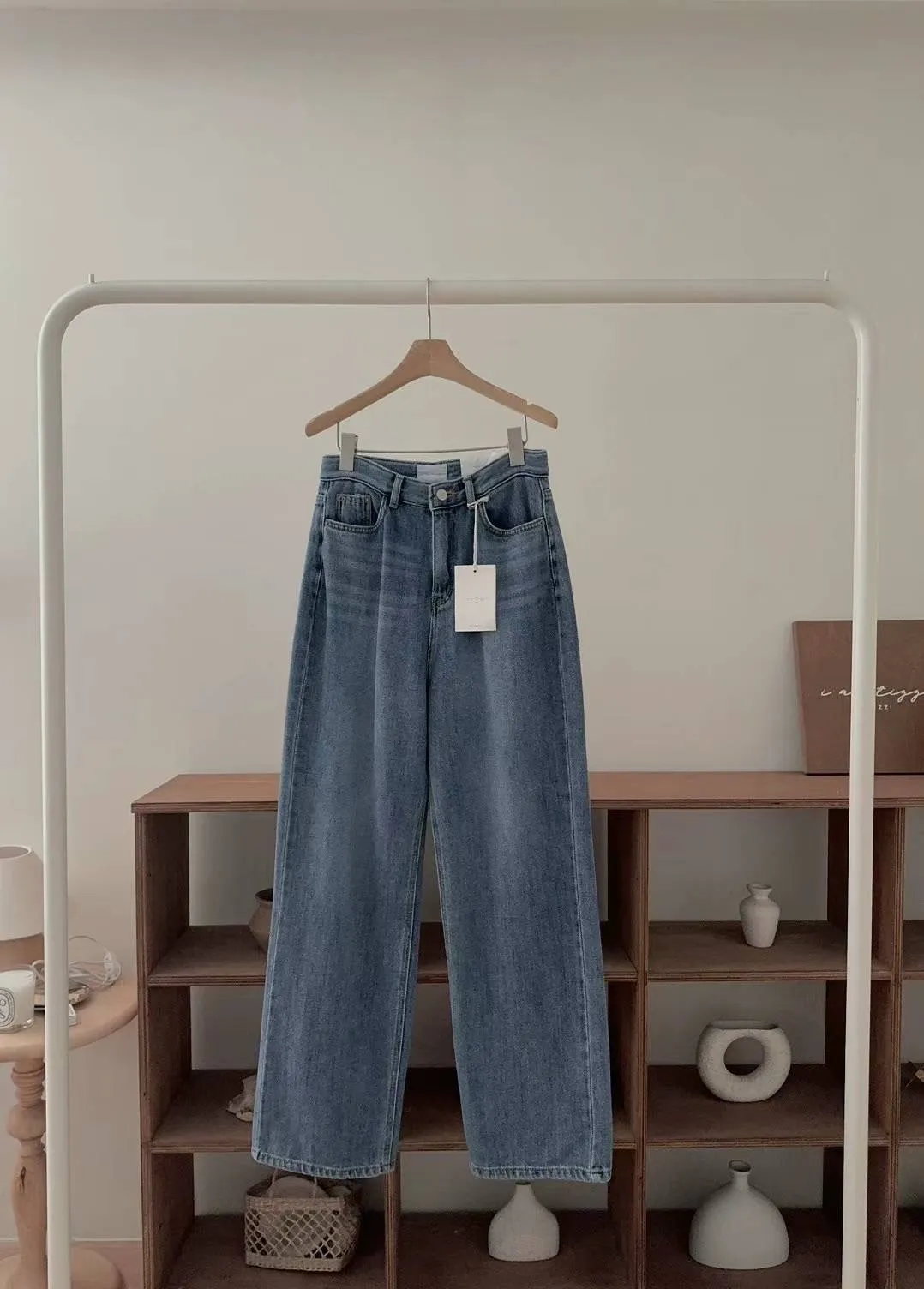 棉 釦鍊穿脫 褲檔微微貓抓刷色 有口袋 順身寬直筒 尺寸正常拿