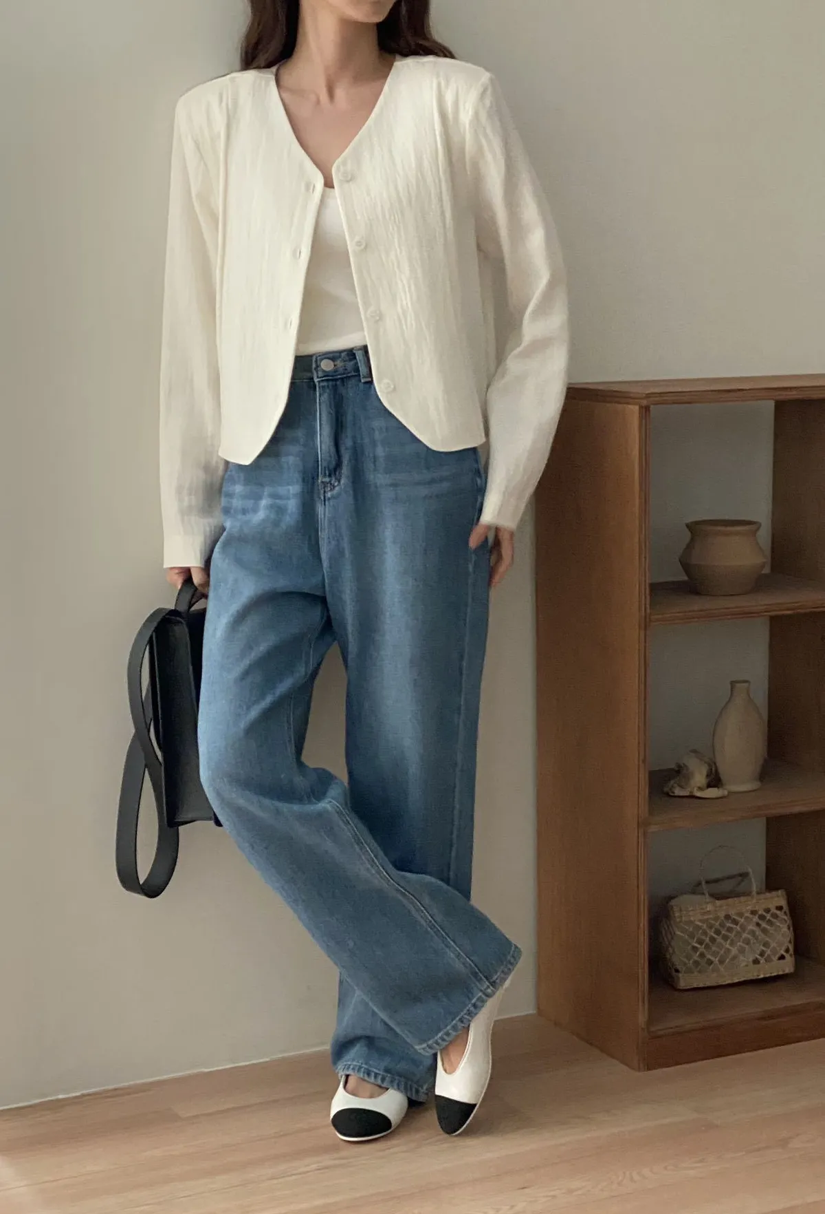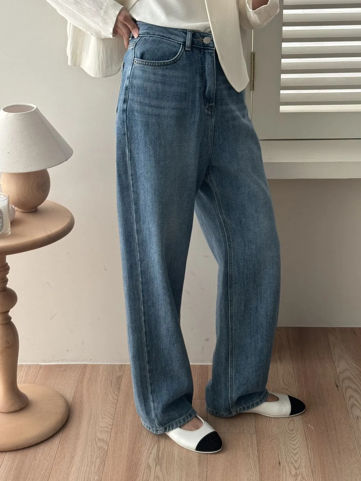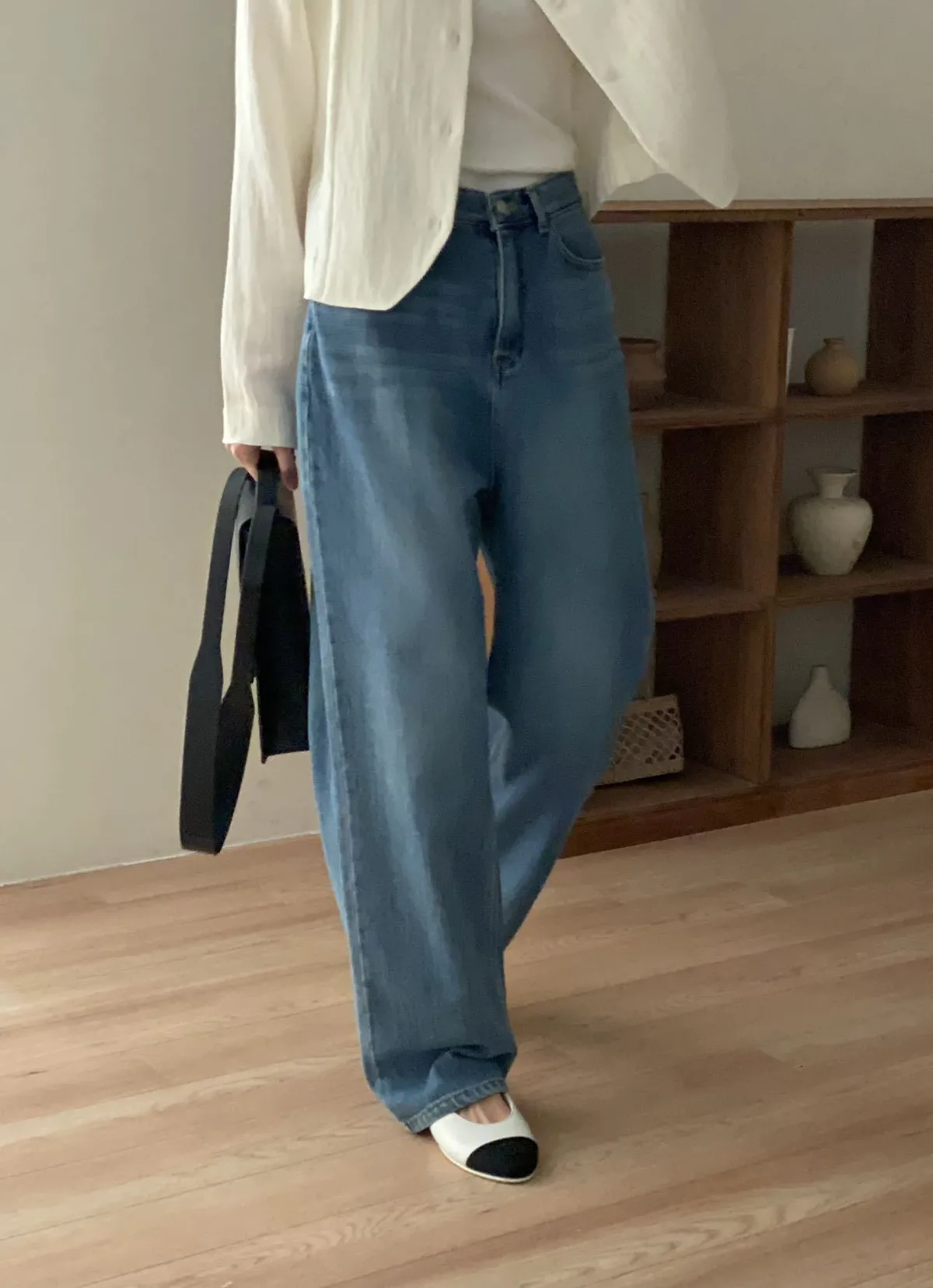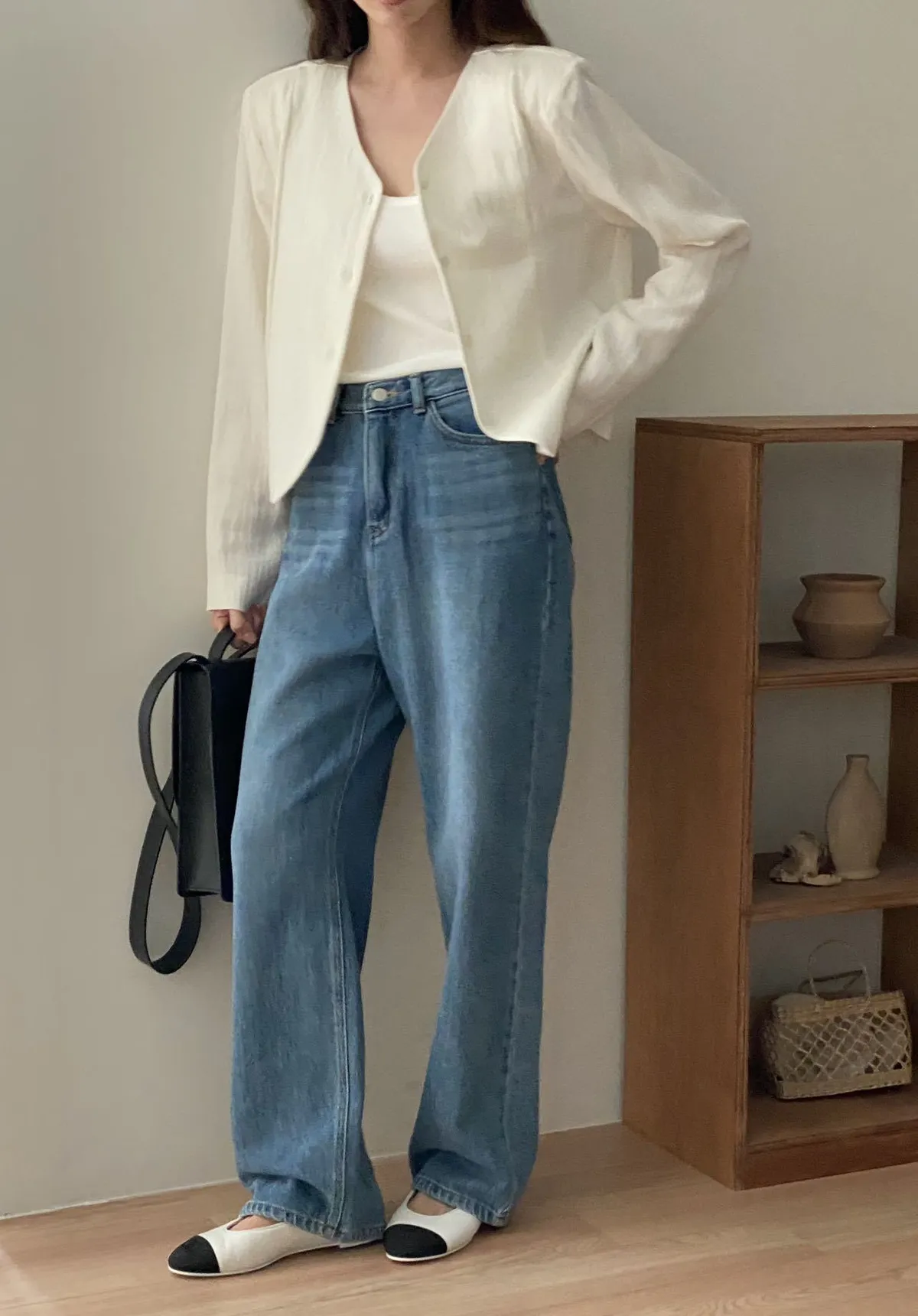 棉 釦鍊穿脫 褲檔微微貓抓刷色 有口袋 順身寬直筒 尺寸正常拿