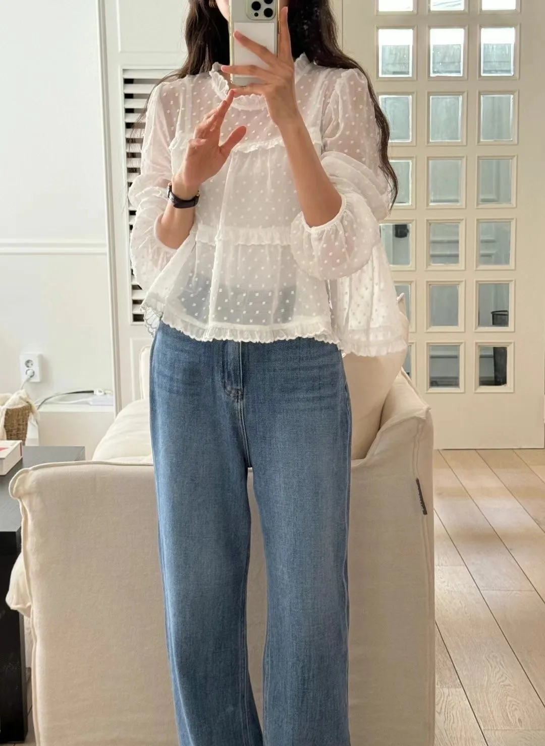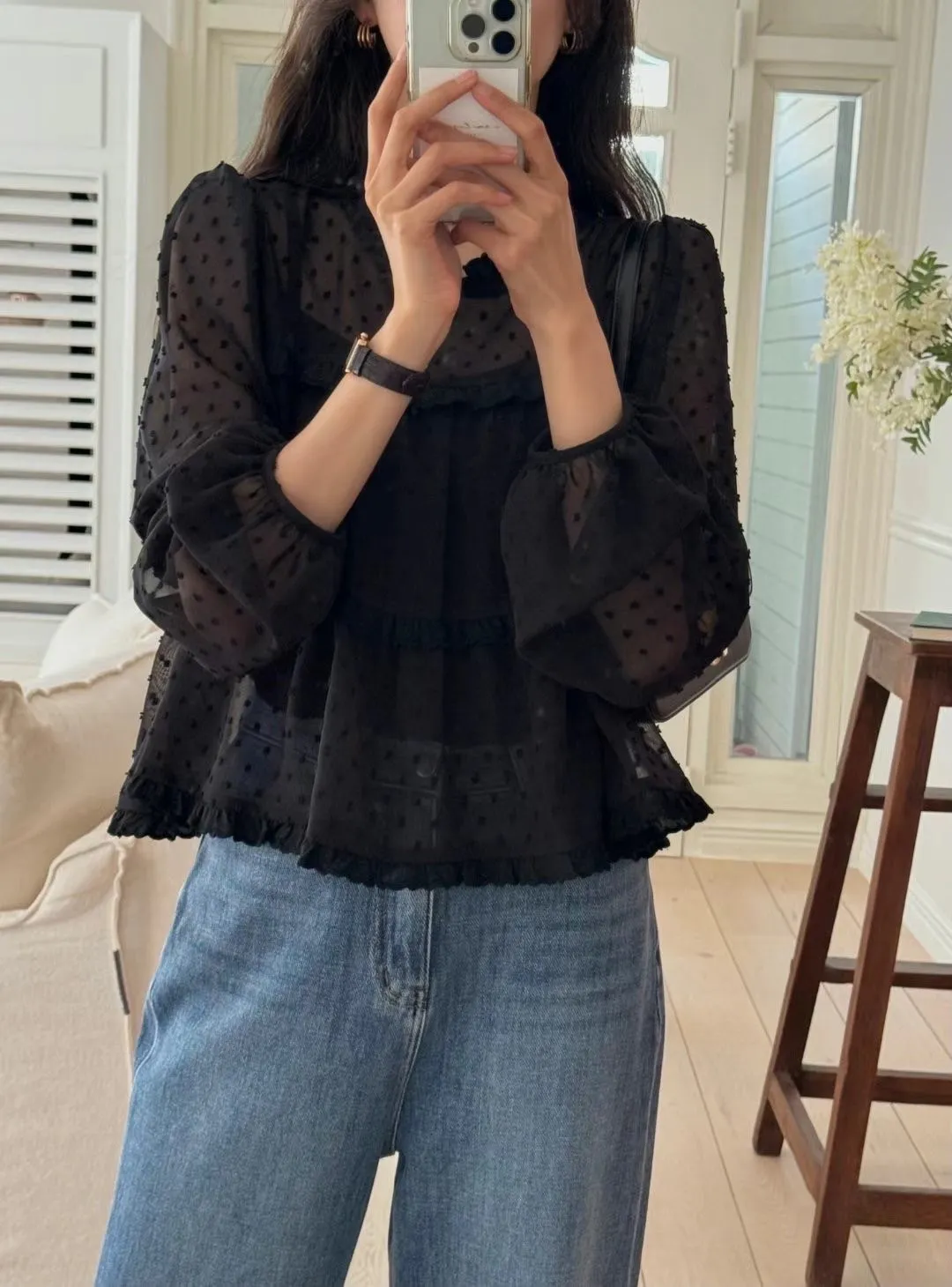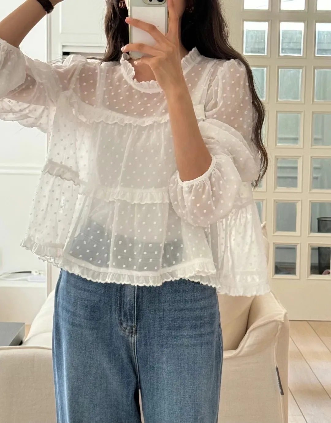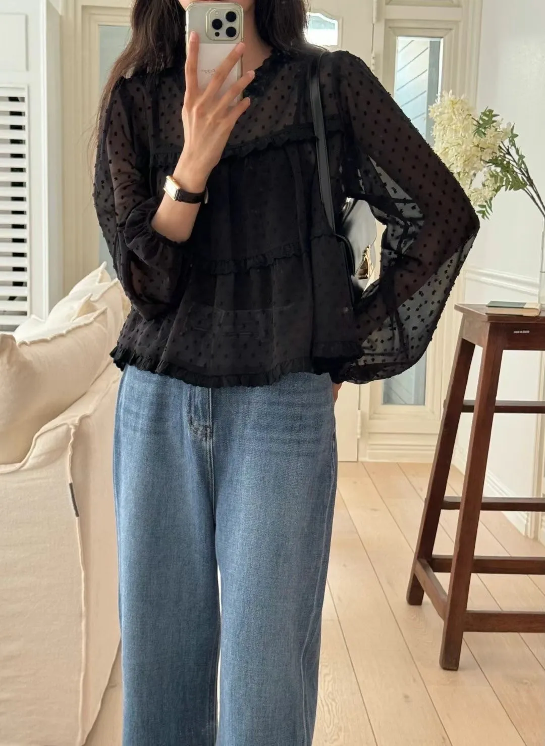 雪紡 薄款細緻透光 點點蛋糕層次 寬鬆舒適 適合台灣四季