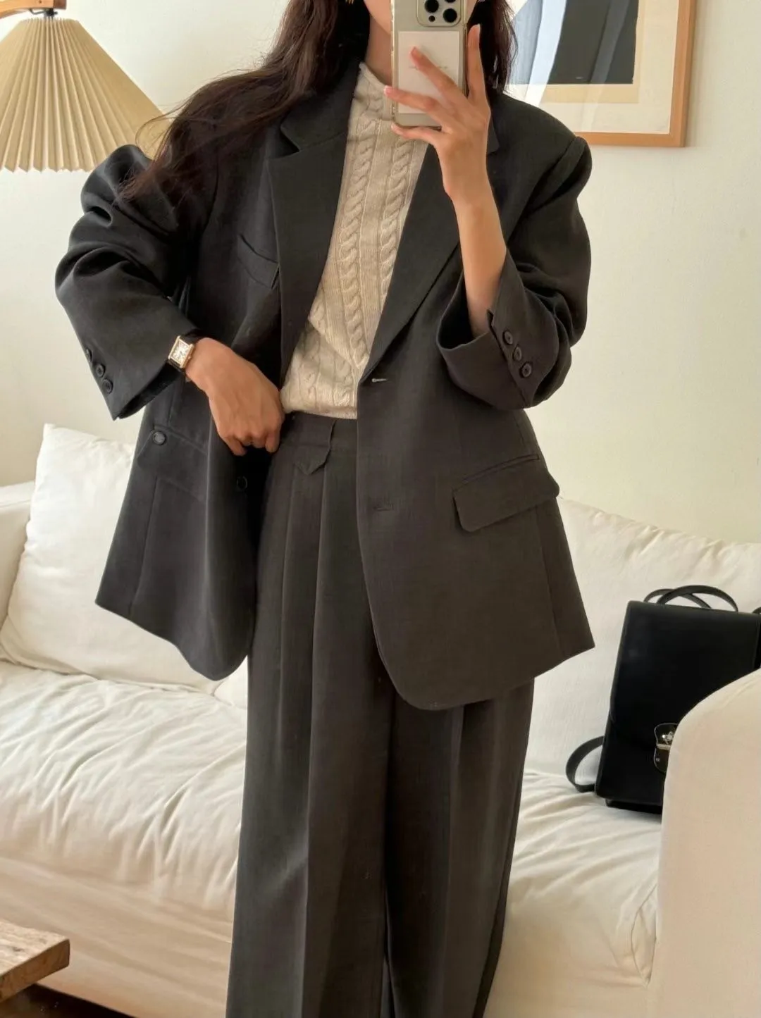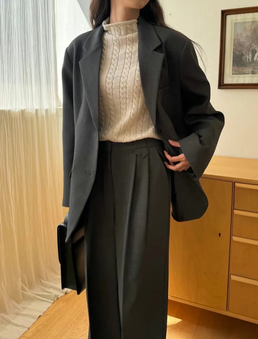 西裝面料+縲縈+彈力 空間寬鬆 微微墊肩 有內裡 L號友善