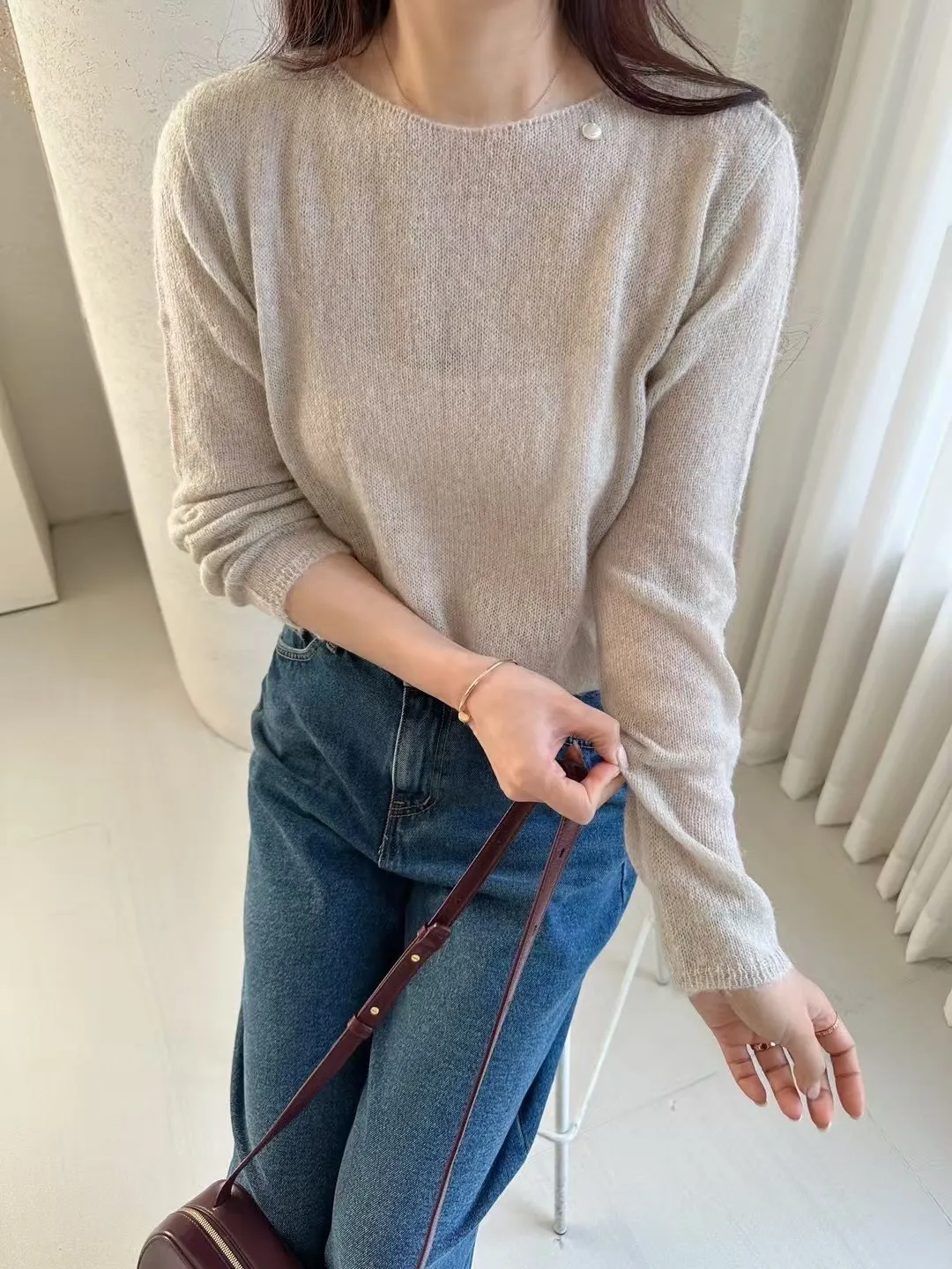 羊駝18%+羊毛15%+尼龍+壓克力 溫柔垂墜 薄款透光
