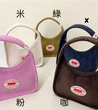 燈芯絨 拉鍊閉合 有內袋 內層尼龍 百搭風格色系