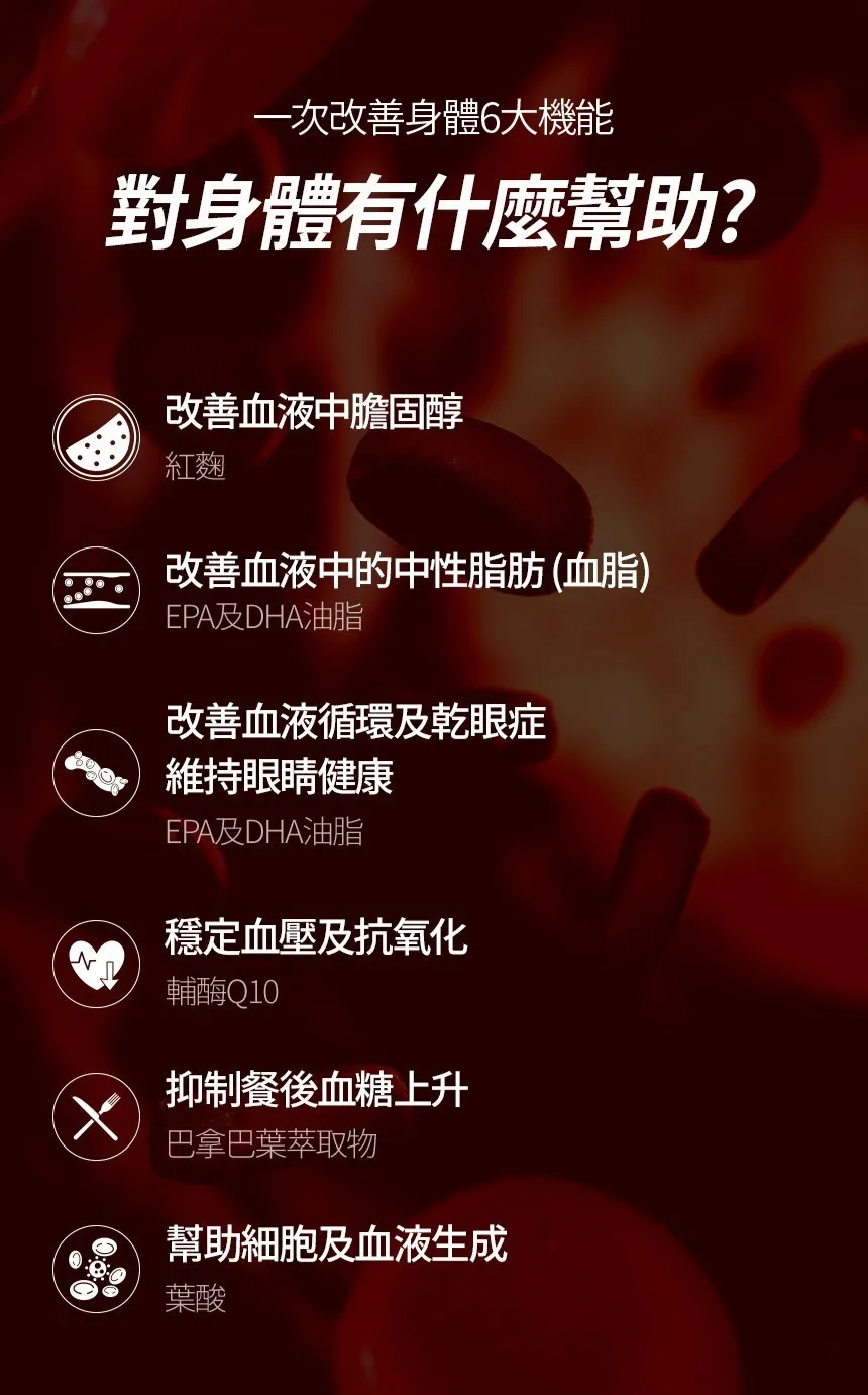 使用效果 : 改善血液循環 控制血壓血糖 血管減脂