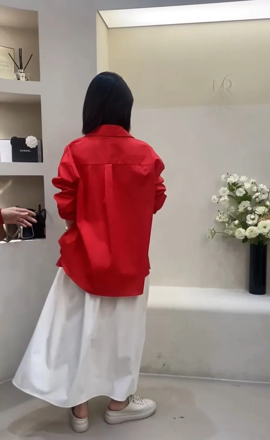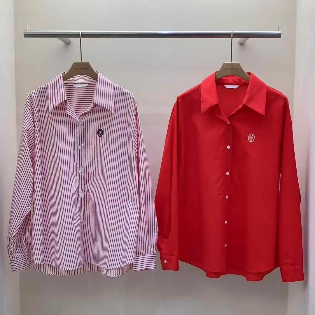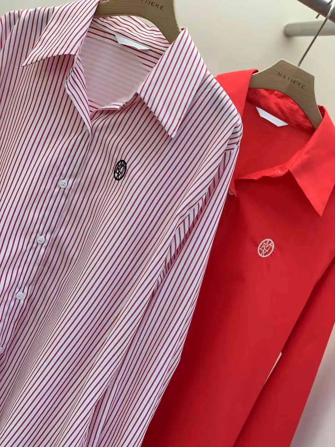 AK352刺繡圓標長袖襯衫 紅 條紋 官網價$1290 線上價$1260