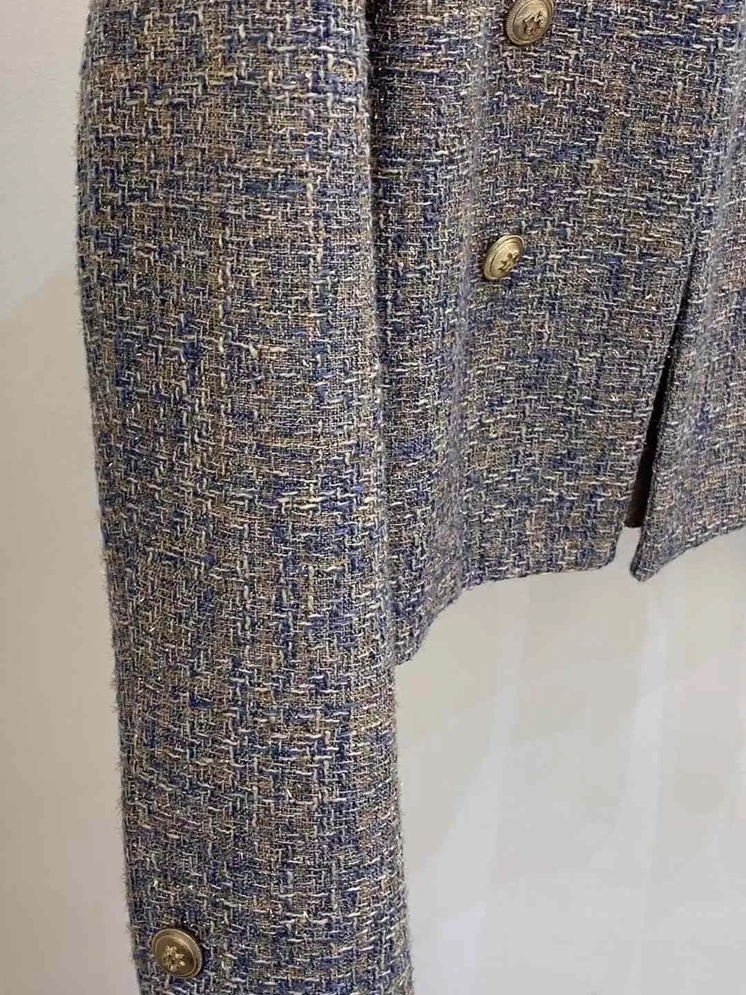 聚酯+縲縈 金蔥織線 雙排釦 有內裡 微墊肩 金蔥面料面料有刺感