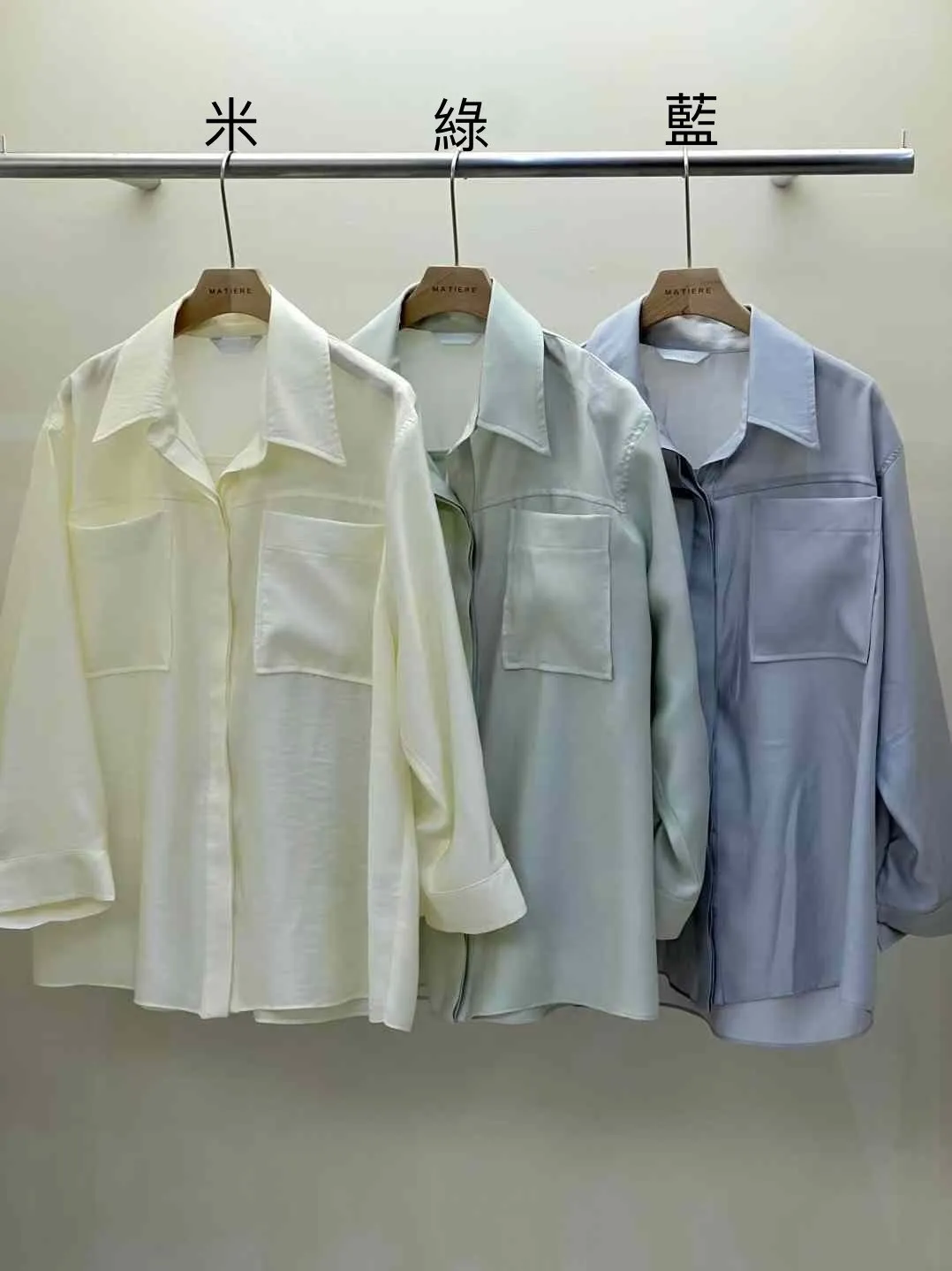 人造絲 高級感顏色 雙口袋時尚 高級藏釦俐落設計 前短後長
