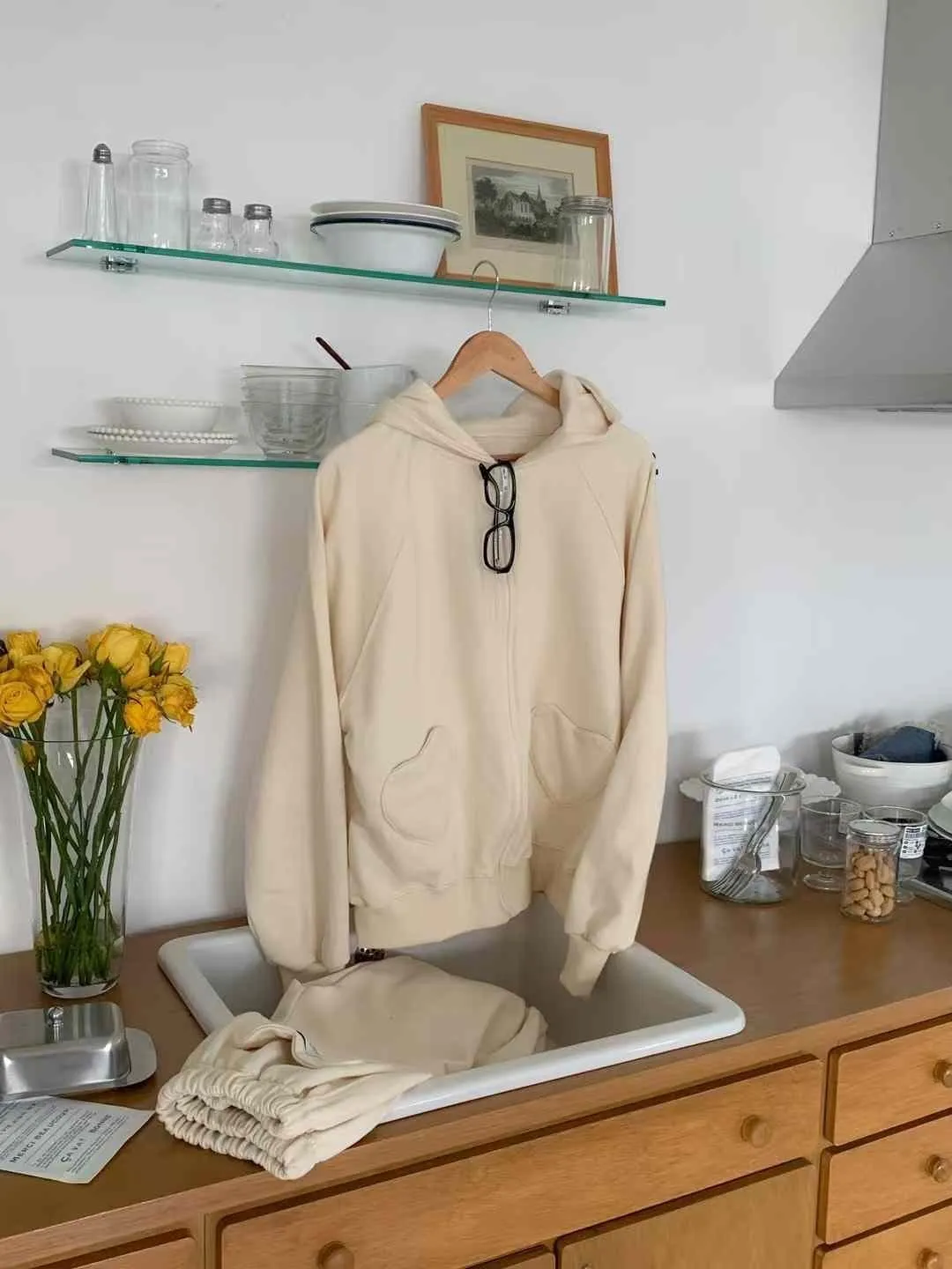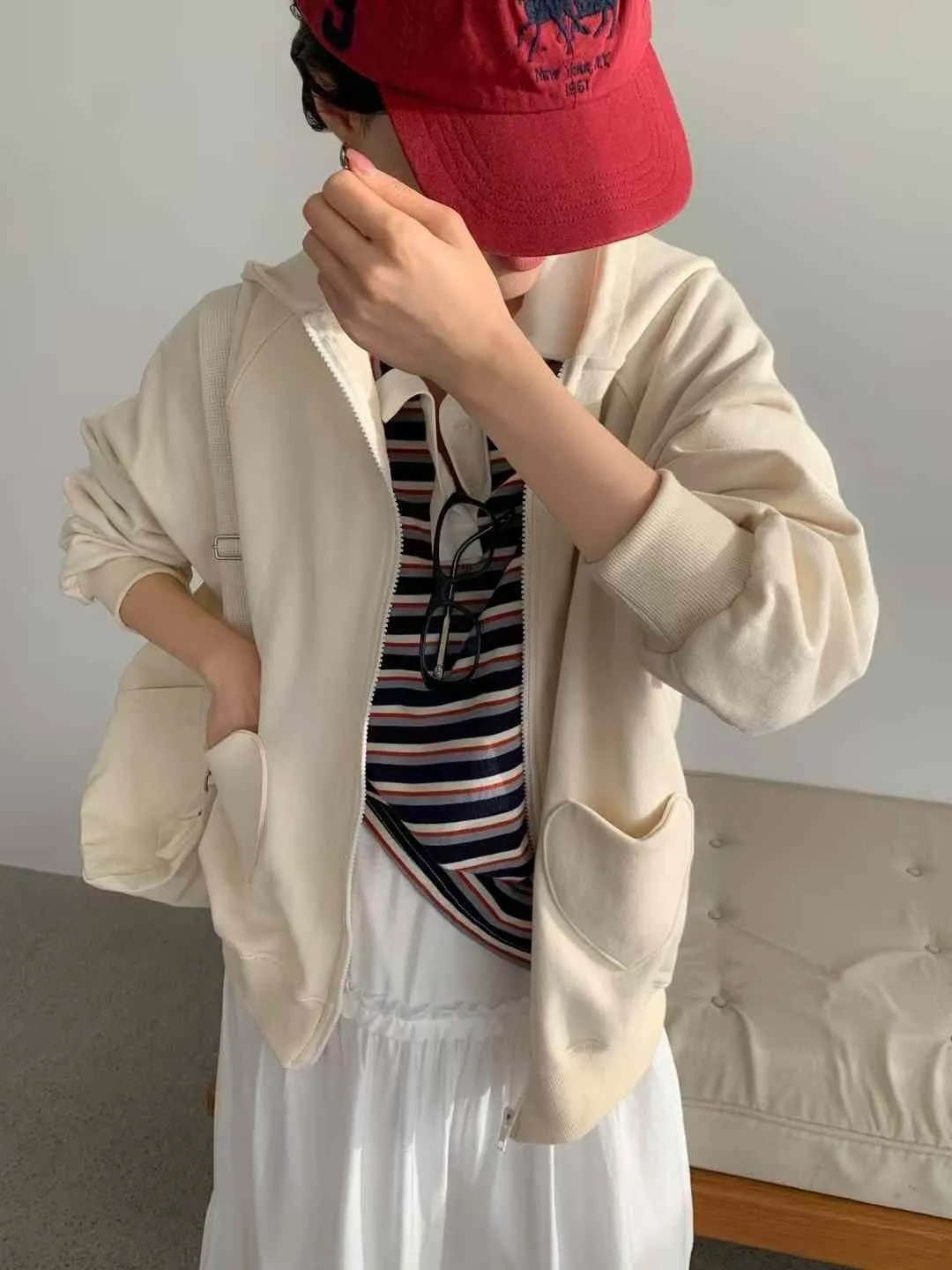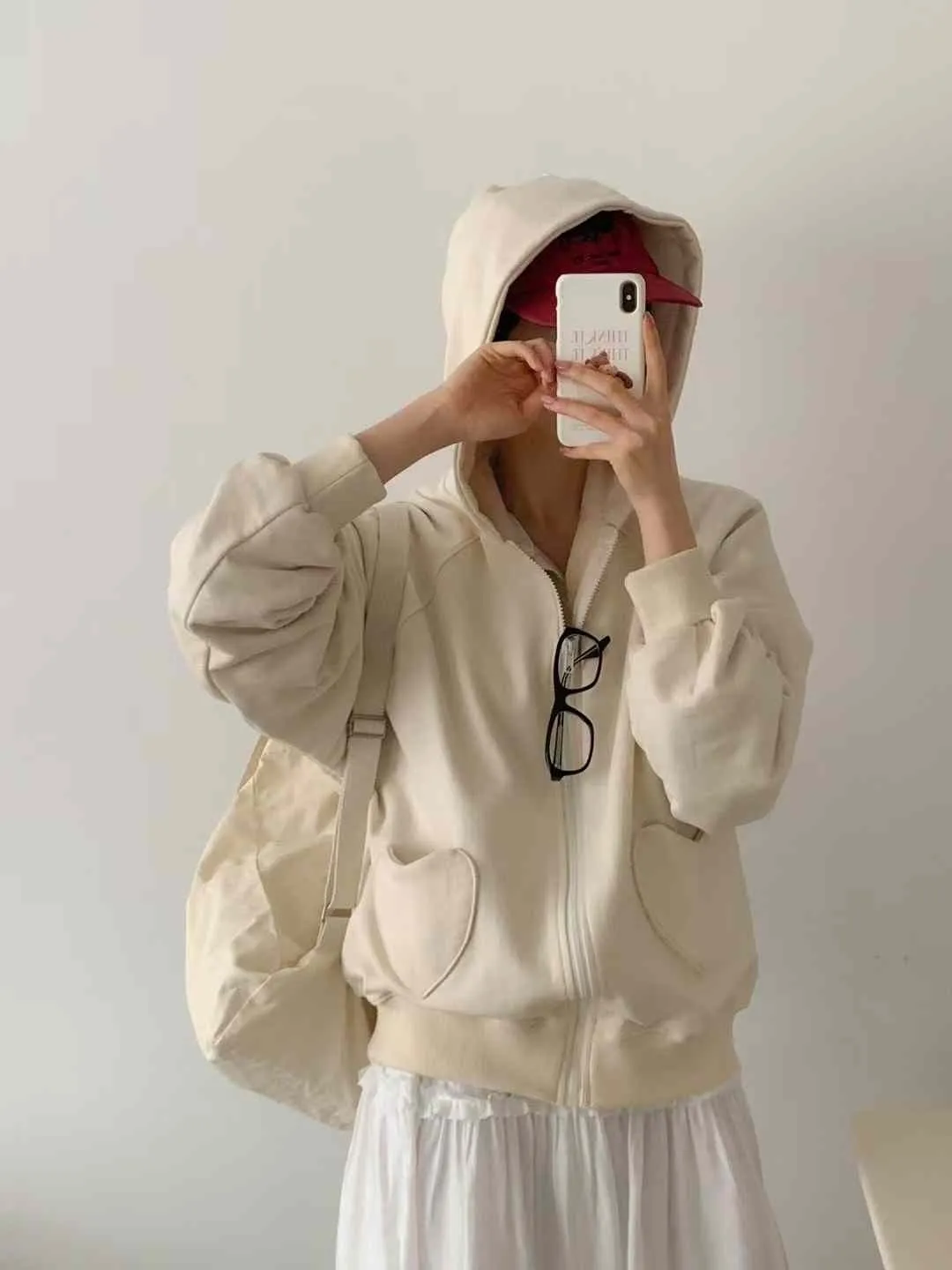 棉 內襯無刷毛 愛心口袋設計 連帽版型 無肩線 手袖鬆緊