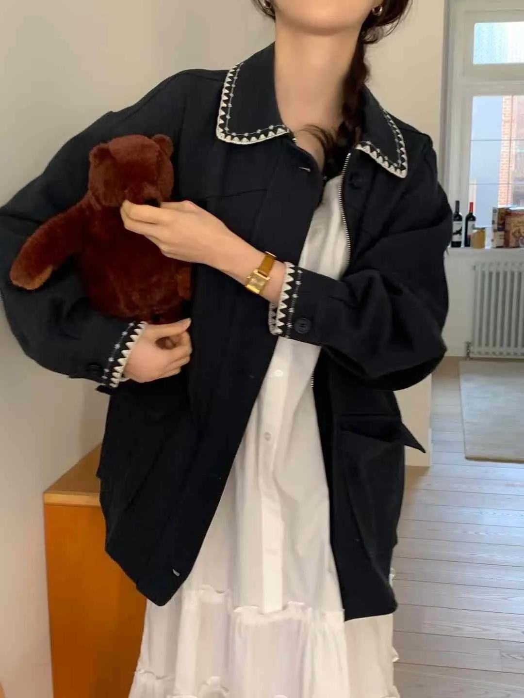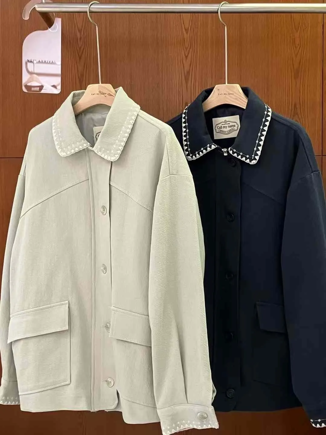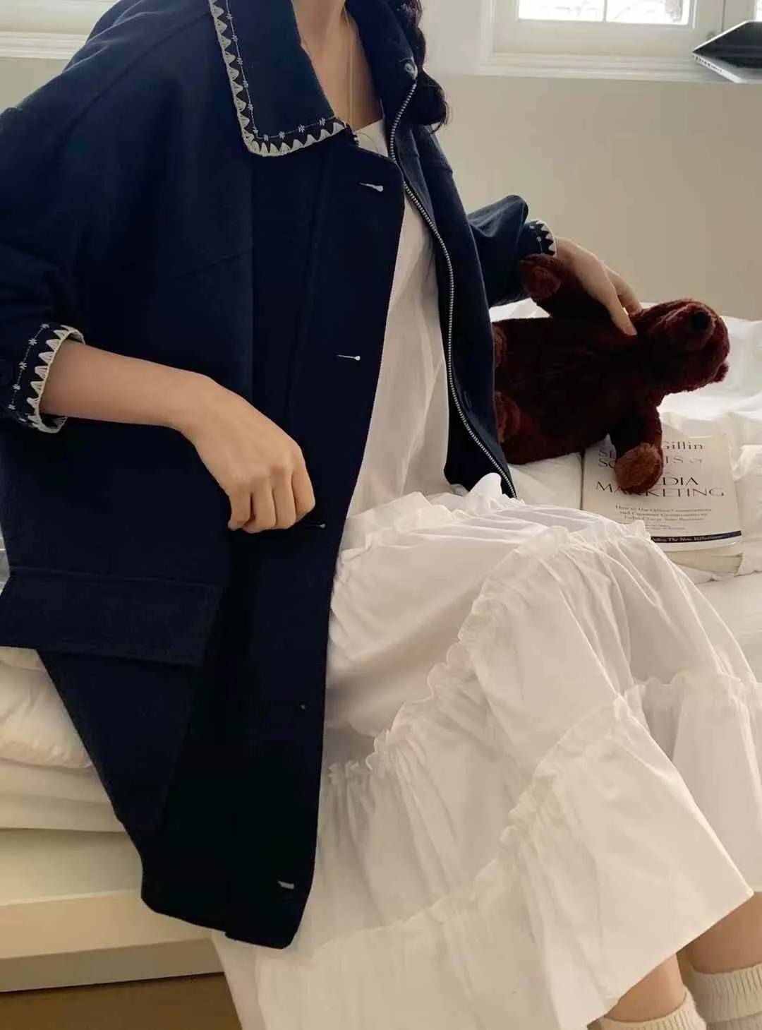 棉 拉鍊排釦穿脫 領口手袖都是刺繡設計 有口袋 輕盈款