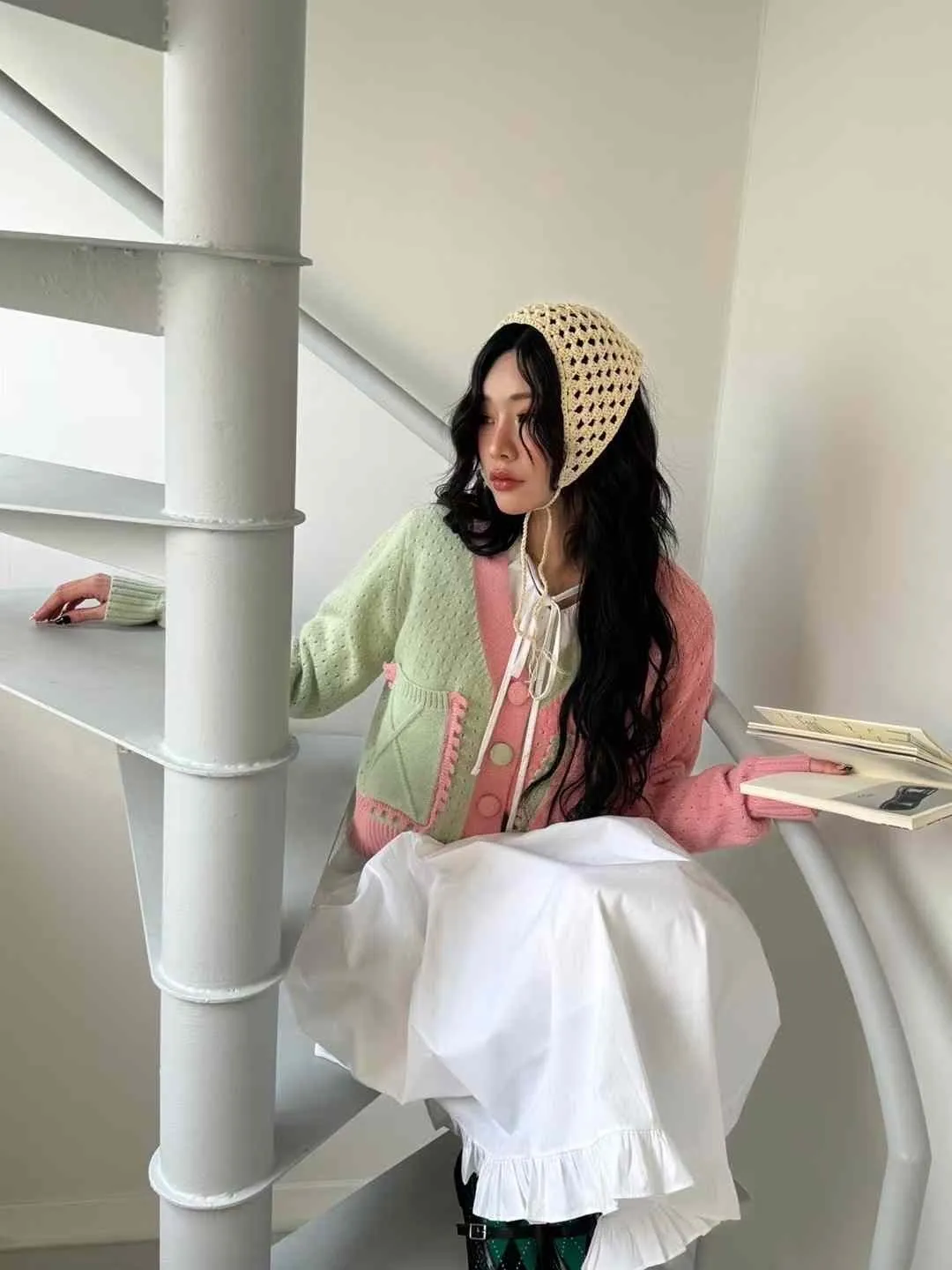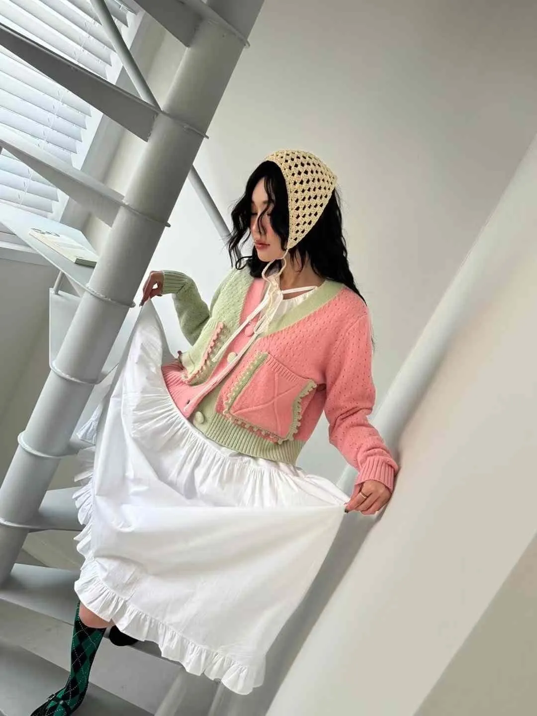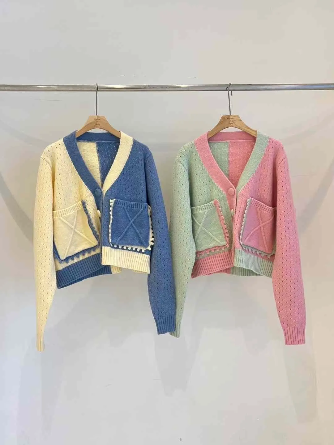 AK416新款拚色針織外套 藍 粉 官網價$1150 線上價$1120