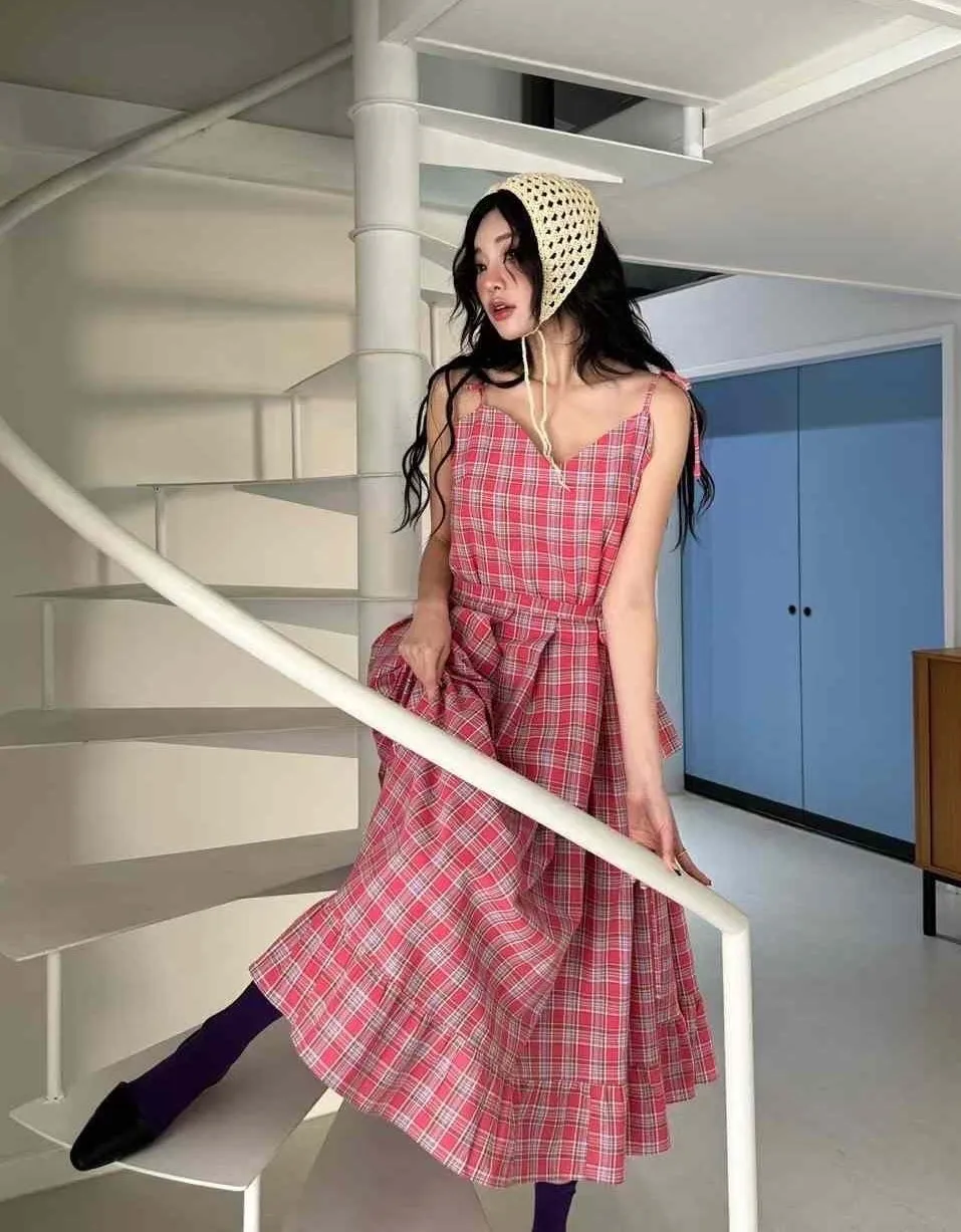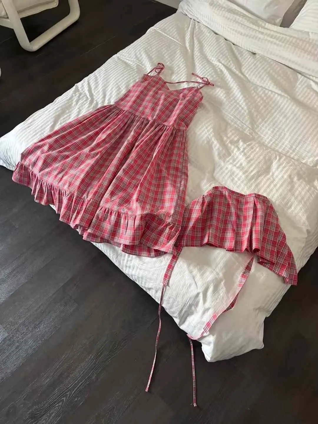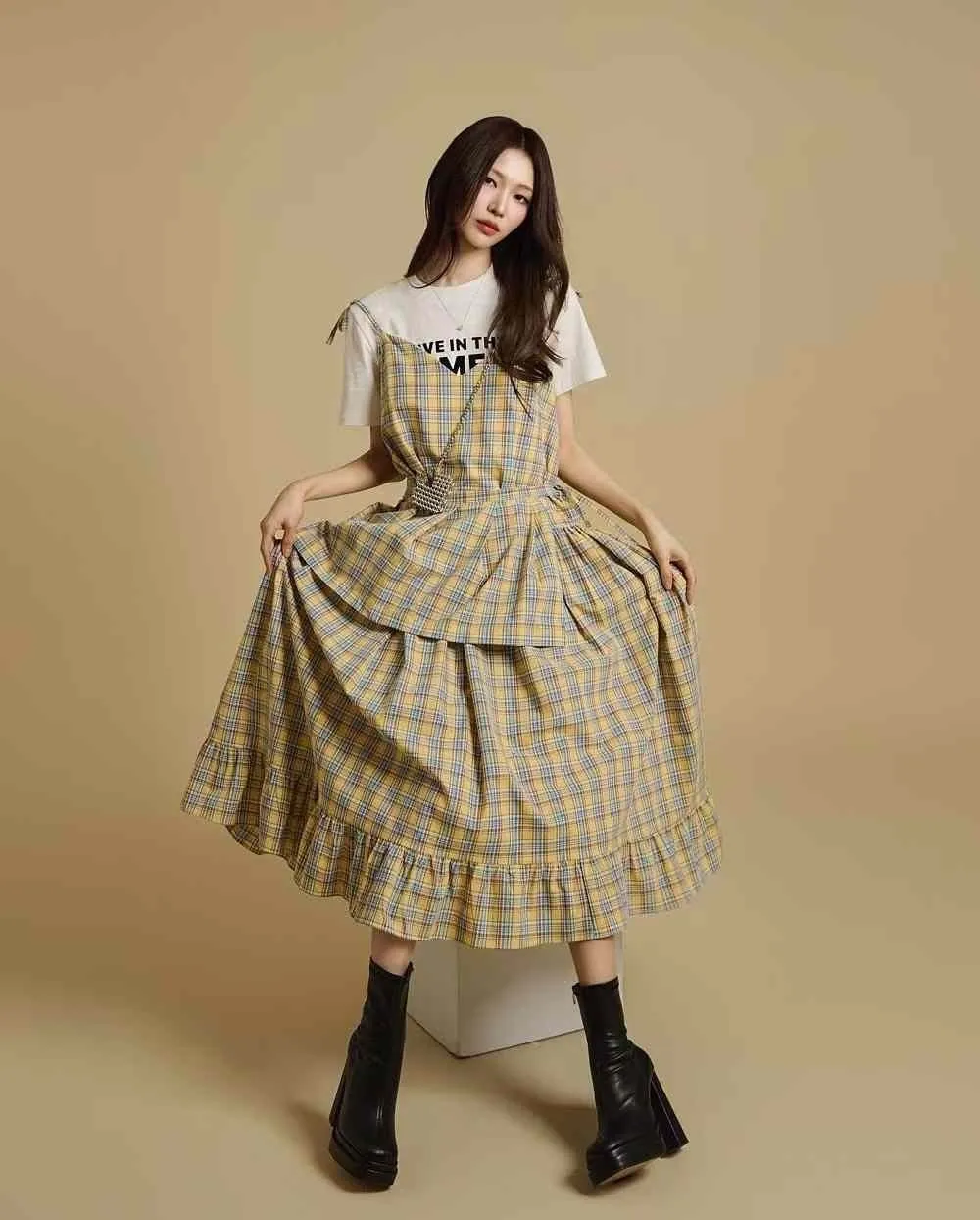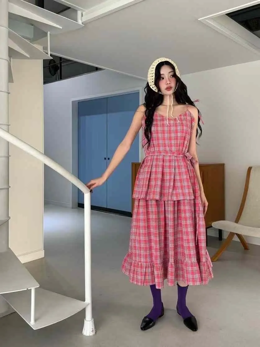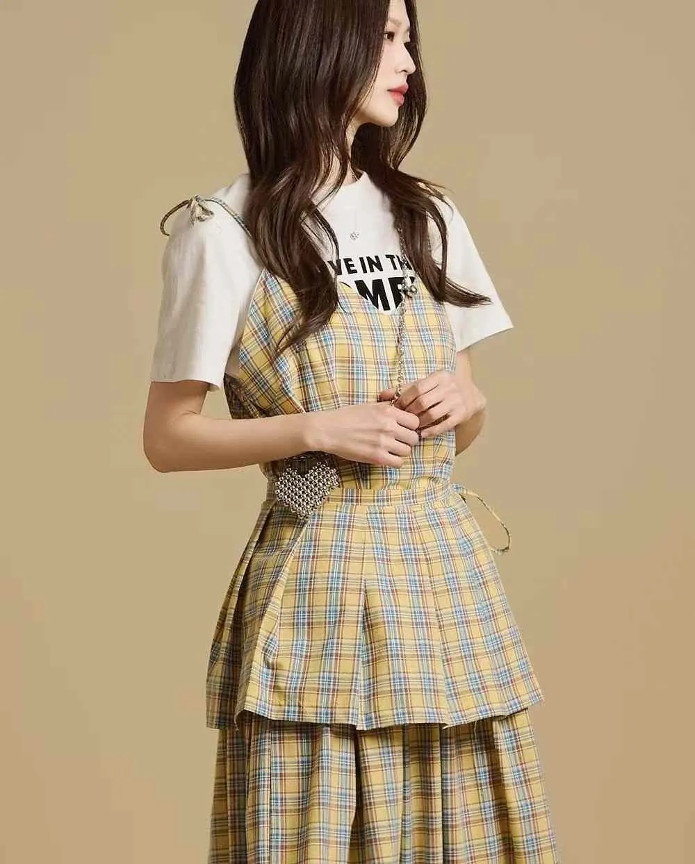 AK420套裝的單配單品格紋襯裙 粉 黃 官網價$650 線上價$620