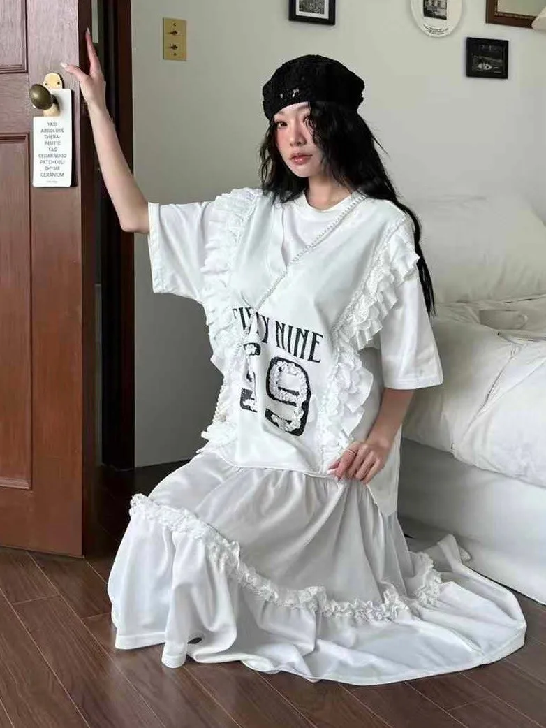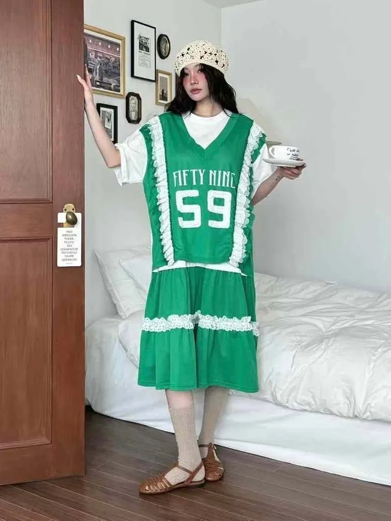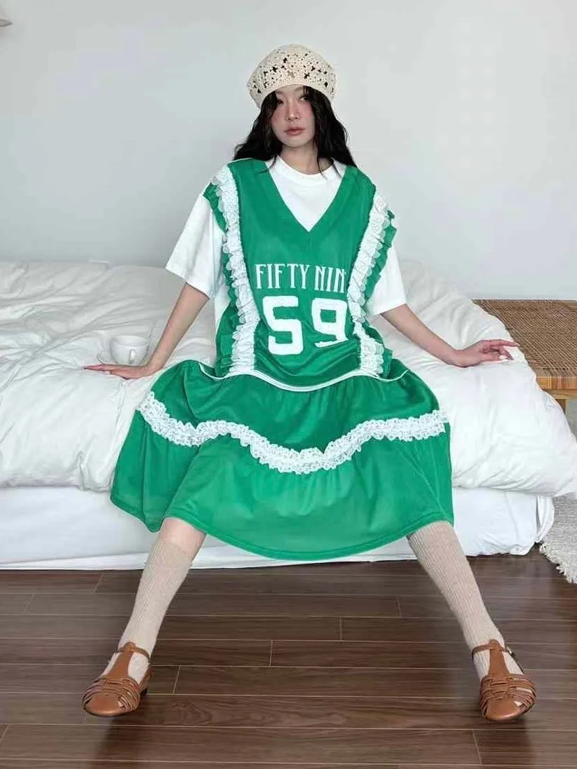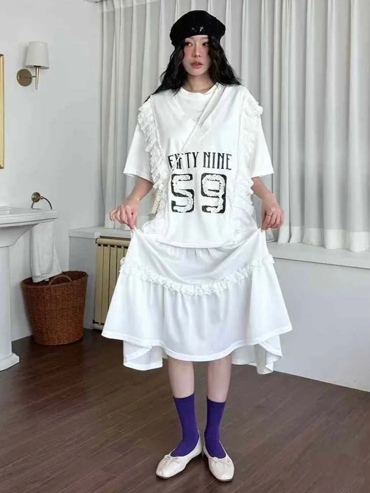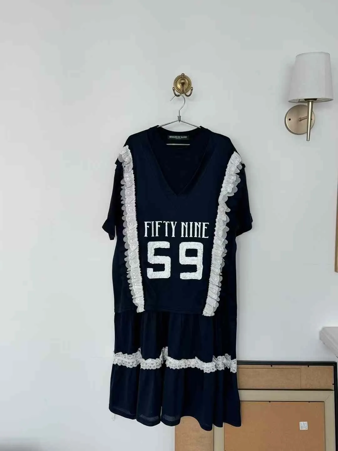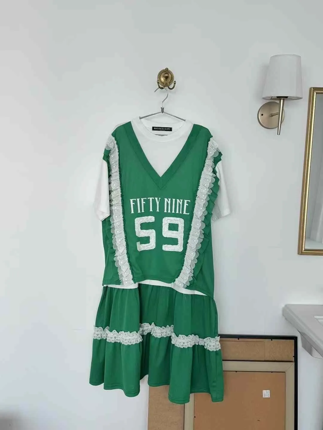 棉 薄款舒適 假兩件拼接 運動風 蕾絲鑲嵌 立體59數字 XXL友善