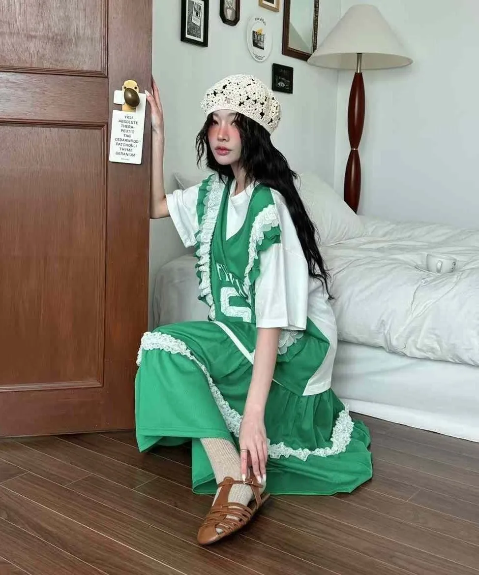 AK421韓系甜美運動風59洋裝 白 藍 綠 官網價$1780 線上價$1750