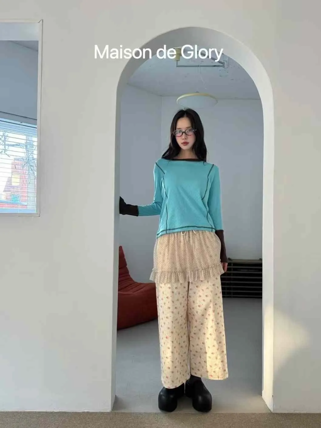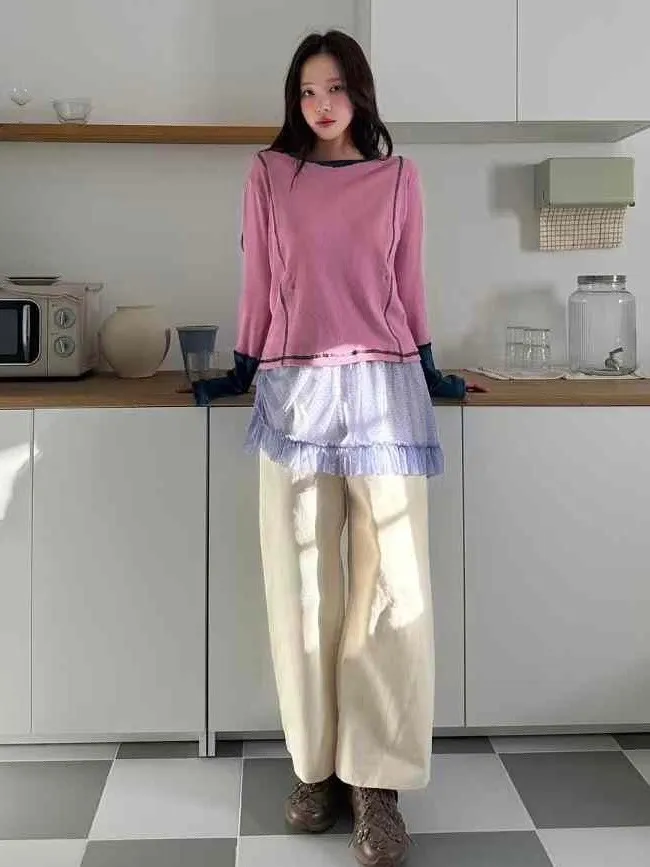 棉,跳色車線 拼接手袖色塊 自然腰身視覺車線