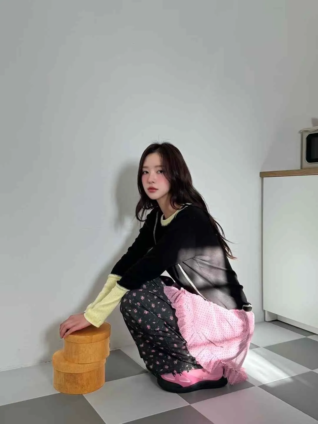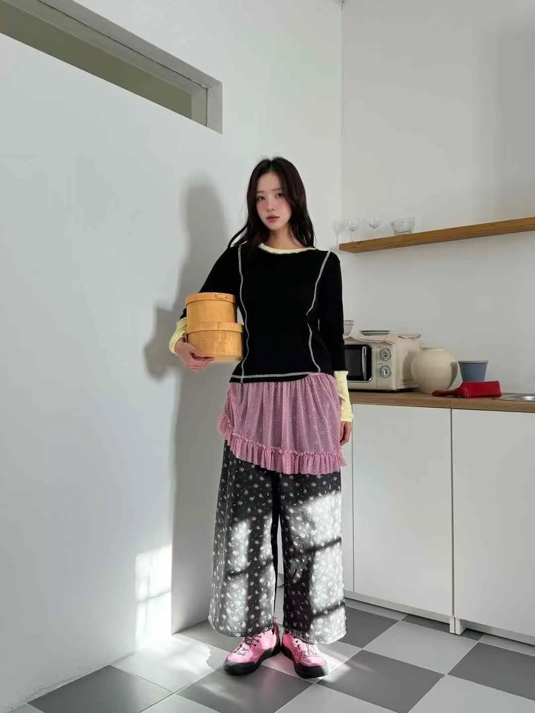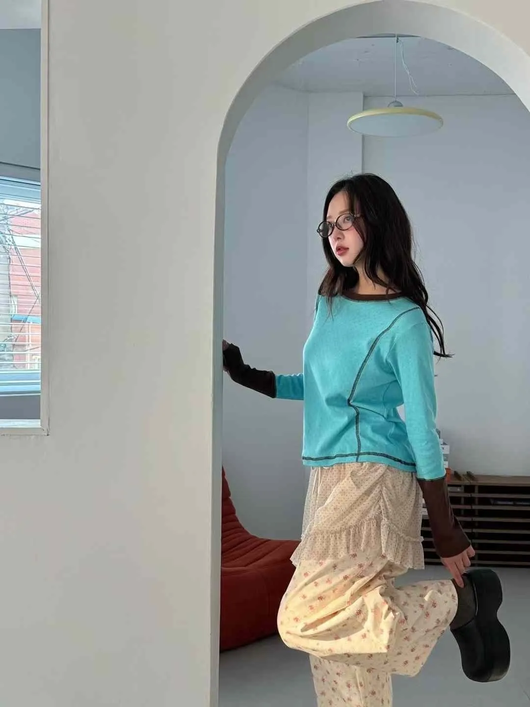 AK426跳色車線手接拼接上衣 粉 藍 黑 官網價$699 線上價$669