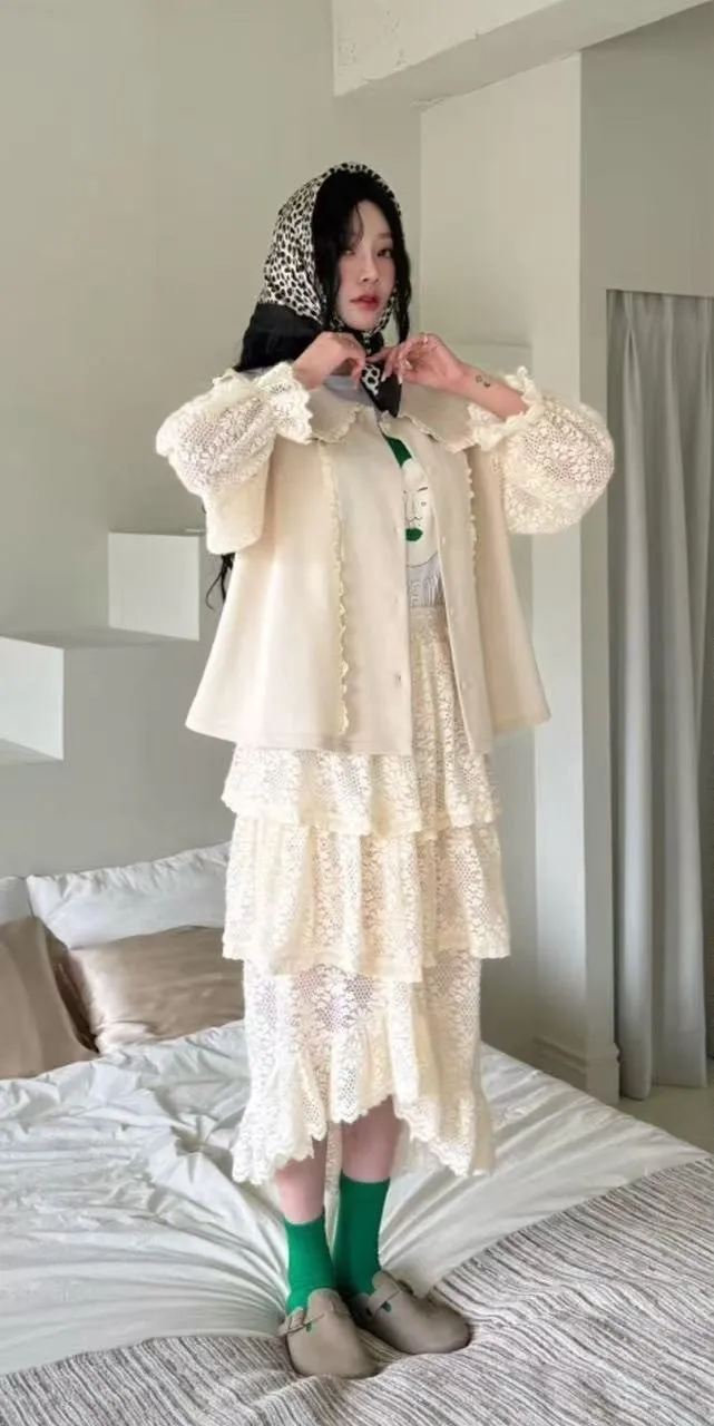 AK427燒花蕾絲三層蛋糕裙 白 黑 官網價$1920 線上價$1890
