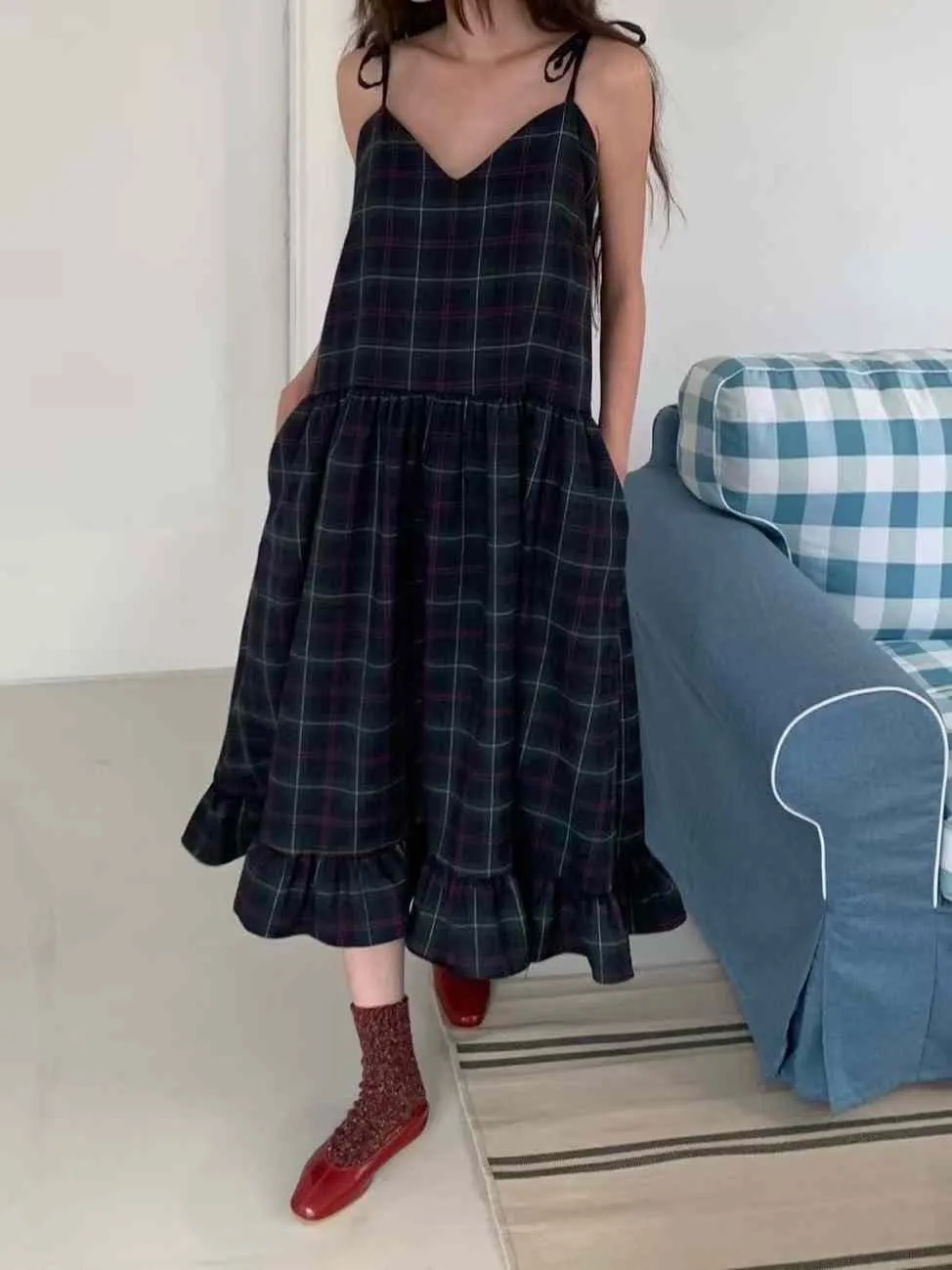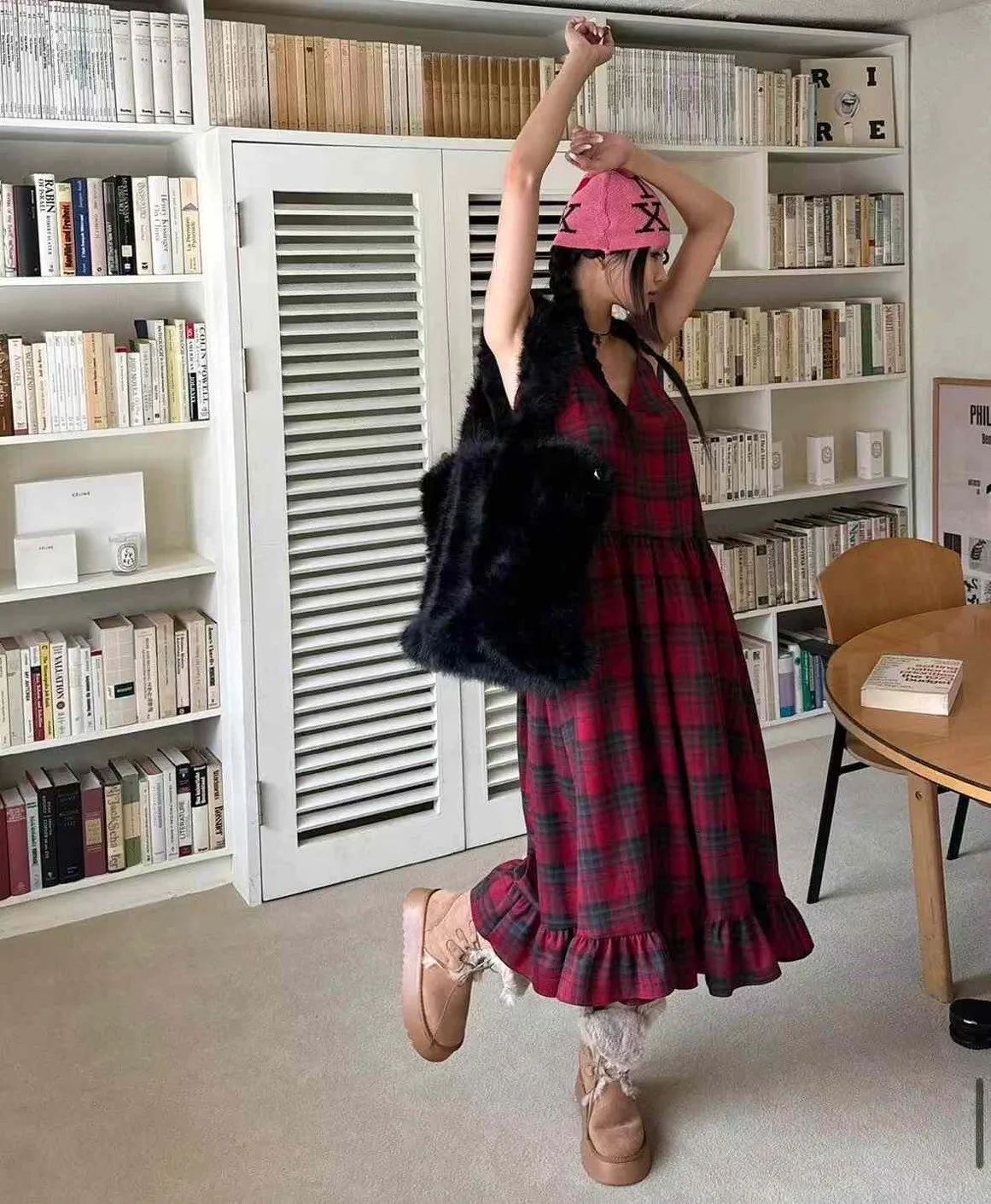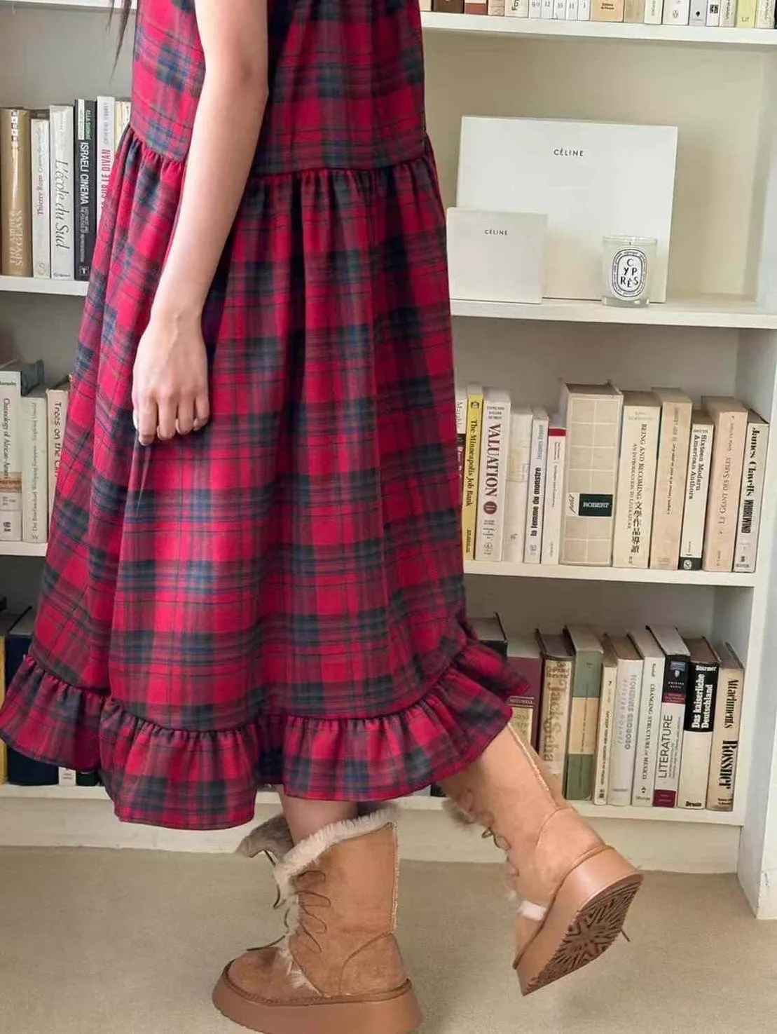 AK428套裝的細肩帶桃心領格紋洋裝 紅 灰 官網價$1780 線上價$1750