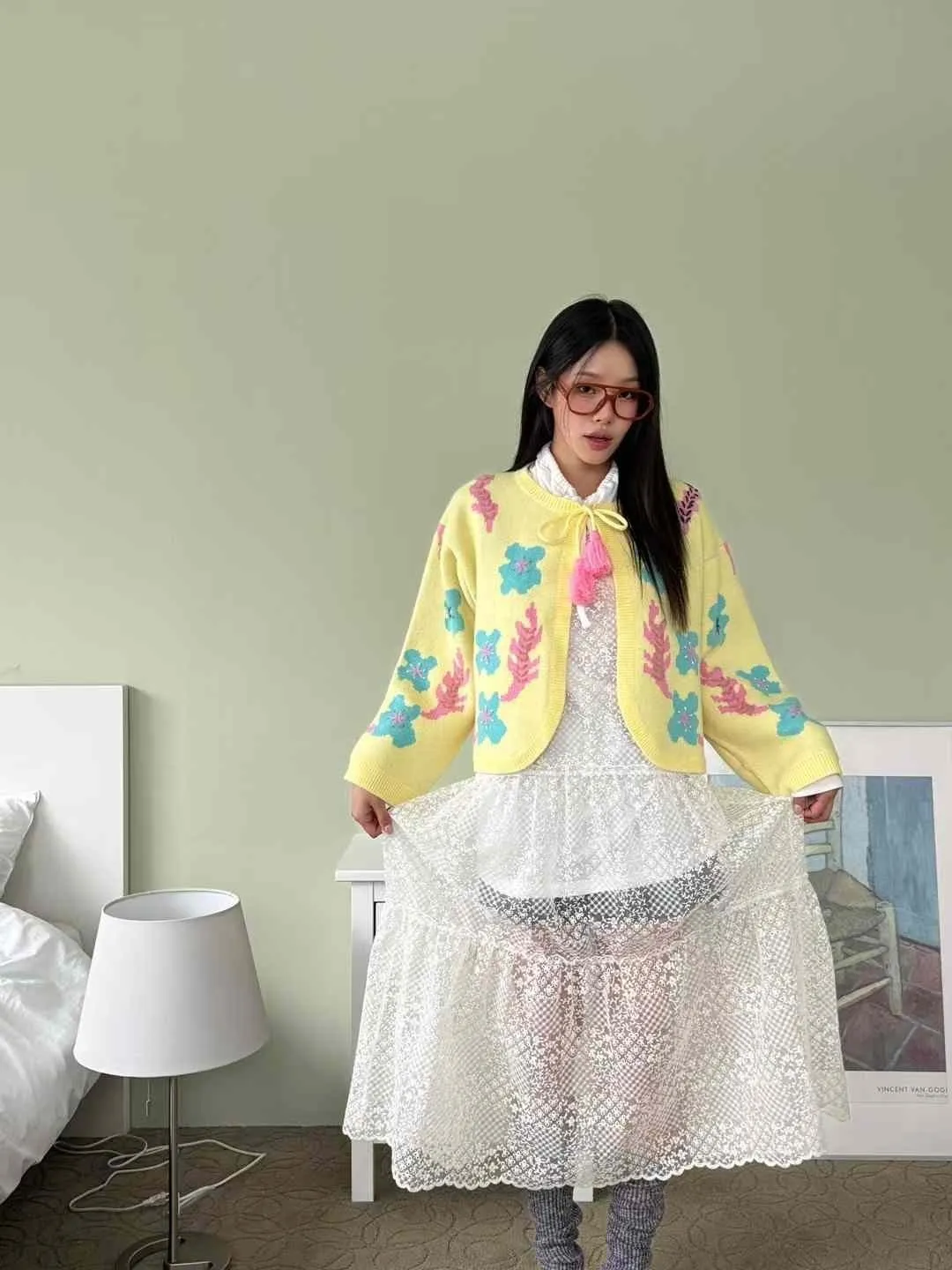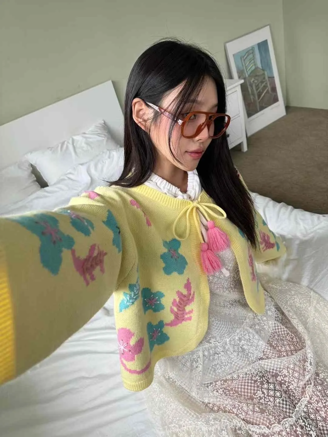 AK437特價繽紛花花黃色外套 原價$2000 特價$1180