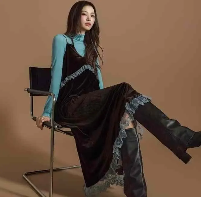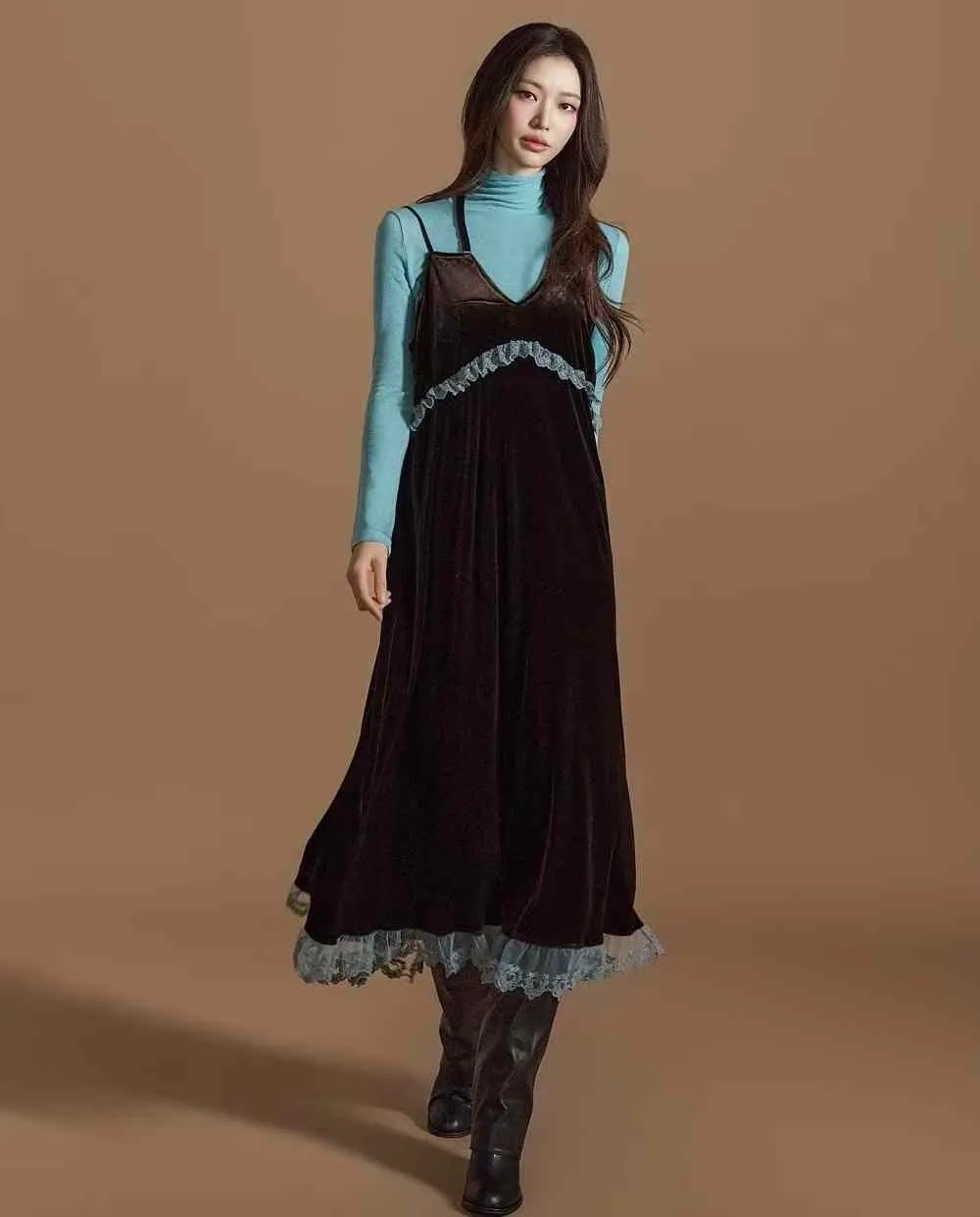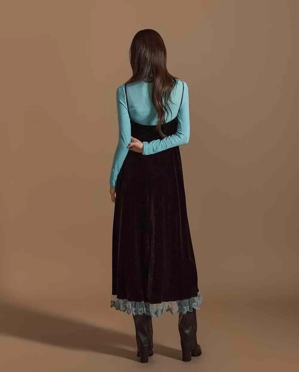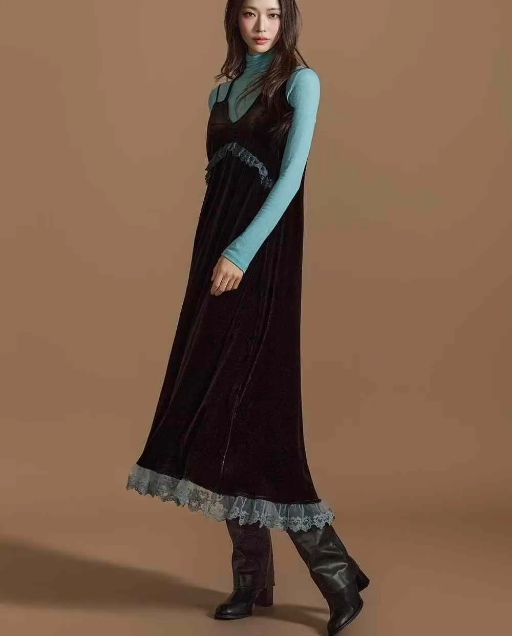 AK438天鵝絨細肩帶奢華咖色洋裝 官網價$1490 線上價$1460