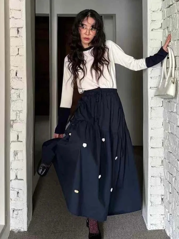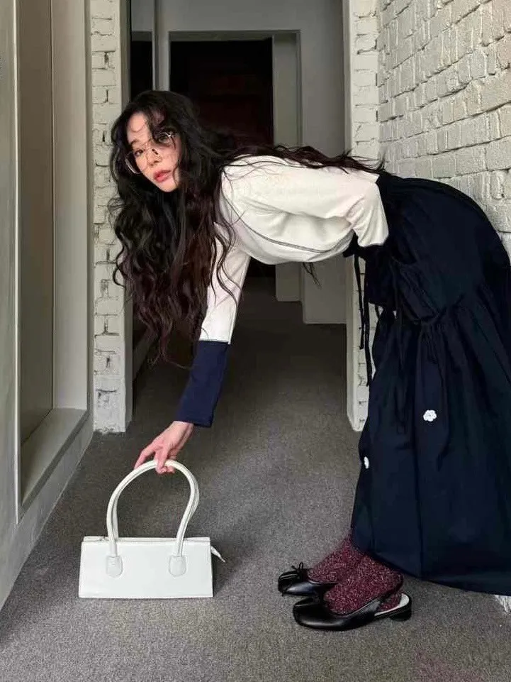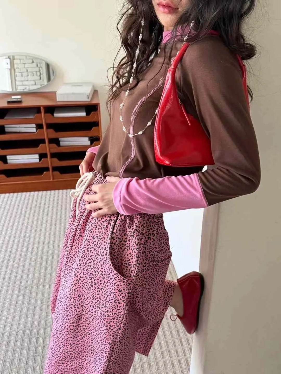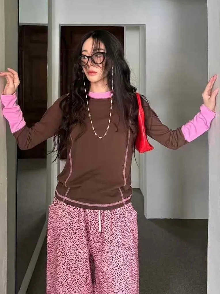 AK439車線外翻設計跳色手袖上衣 米 咖 藍 官網價$670 線上價$640
