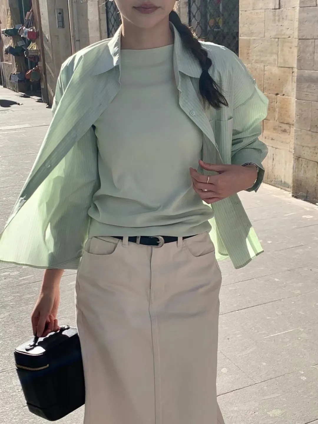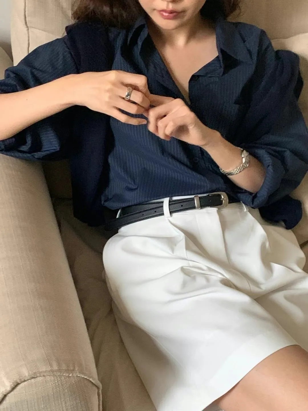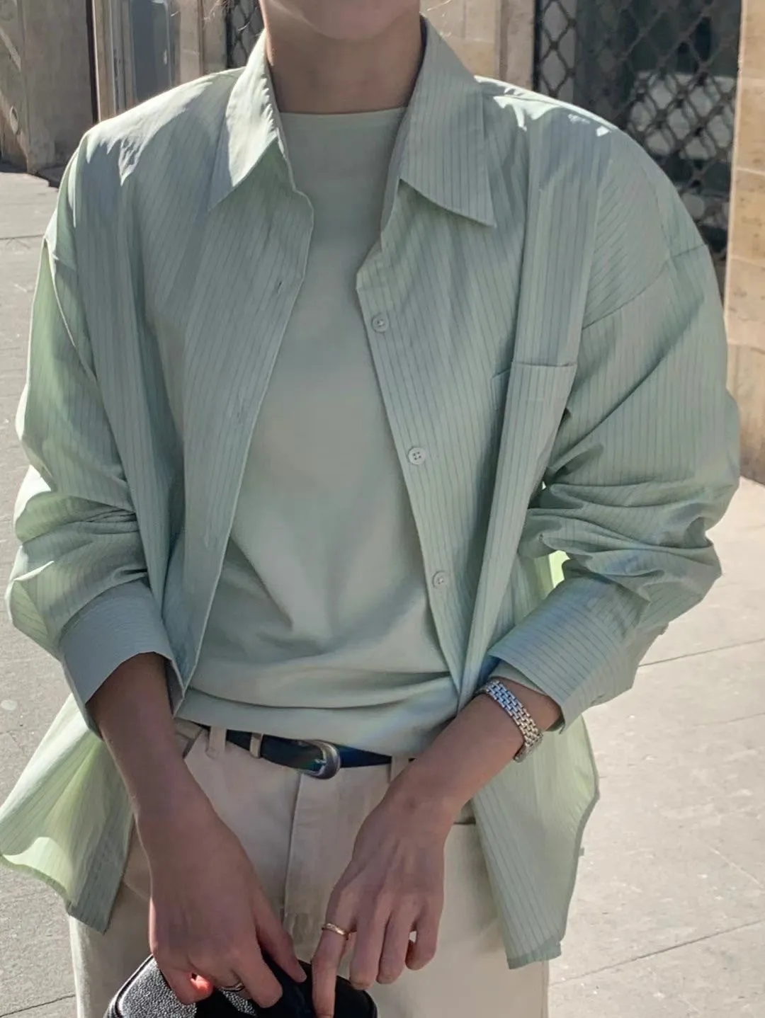 聚酯,細細的直條紋 薄款透氣 夏天可 可襯衫可罩衫 L號友善