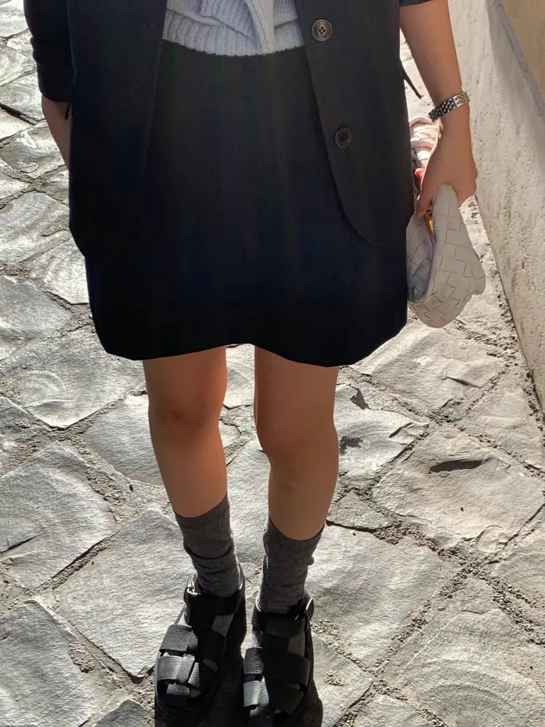 羊毛5%+天絲+尼龍+人造絲+聚酯 側拉鍊 是褲裙 春天厚度