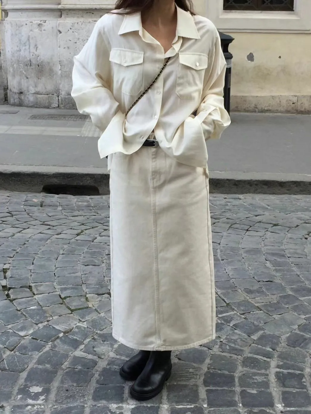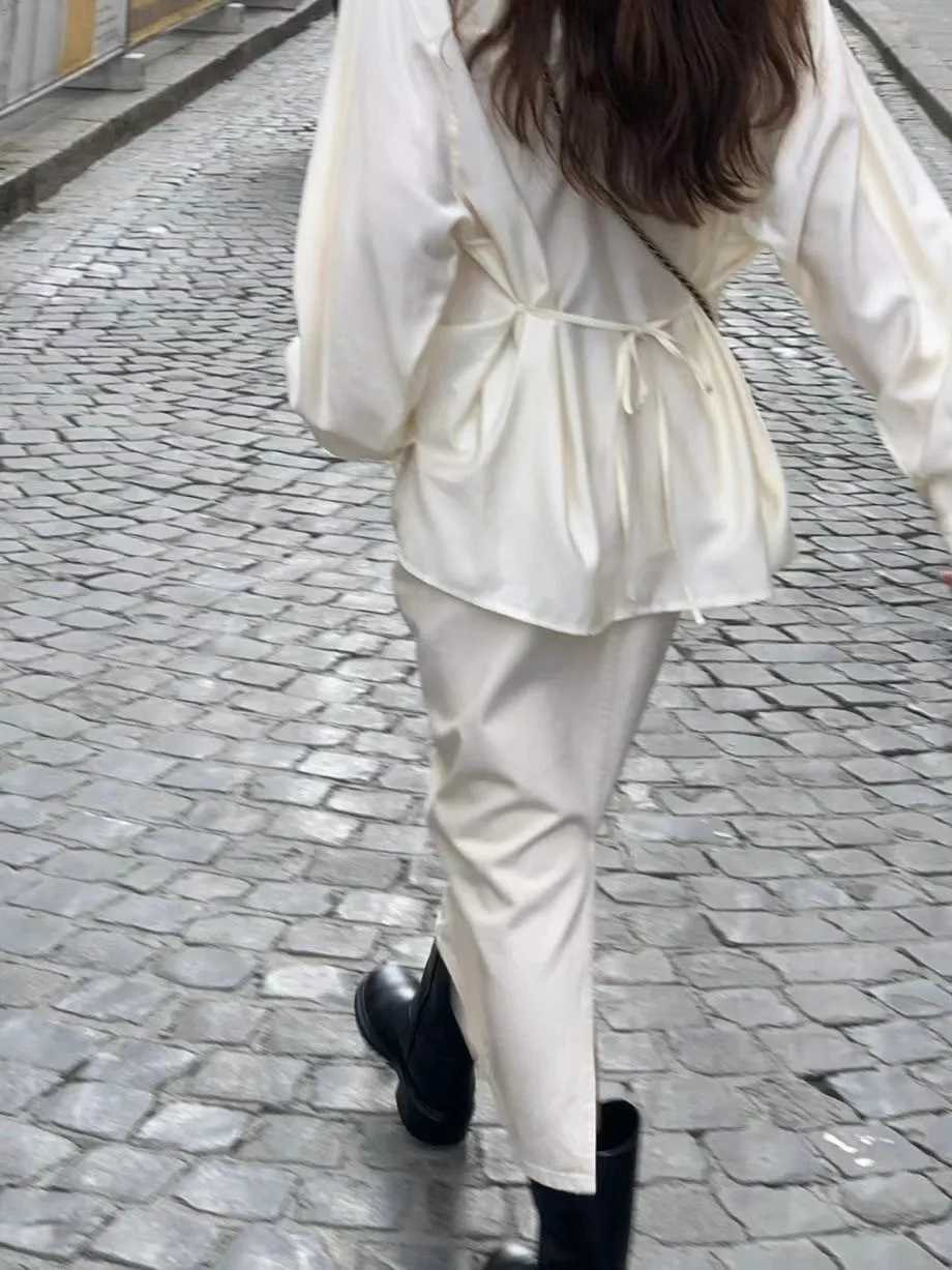 羊毛8%+人造絲 體感舒適 微光澤 雙口袋腰綁帶 側開叉 XL友善