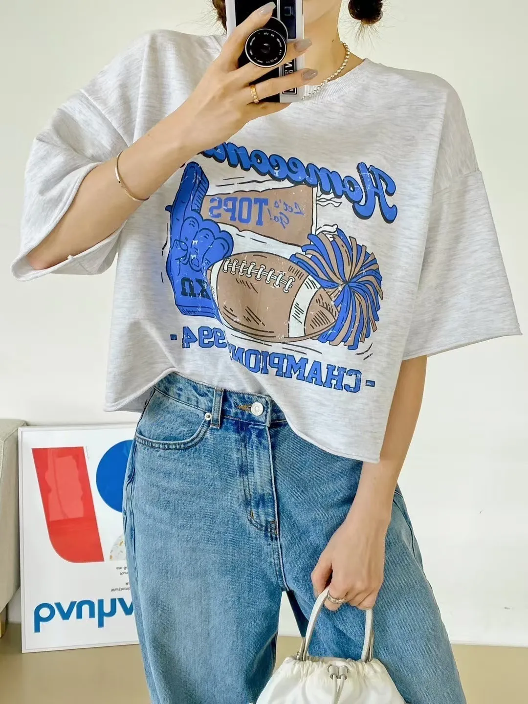 棉 透氣舒適 休閒運動風 短版好比例 仿舊美式圖片 下擺手袖捲邊