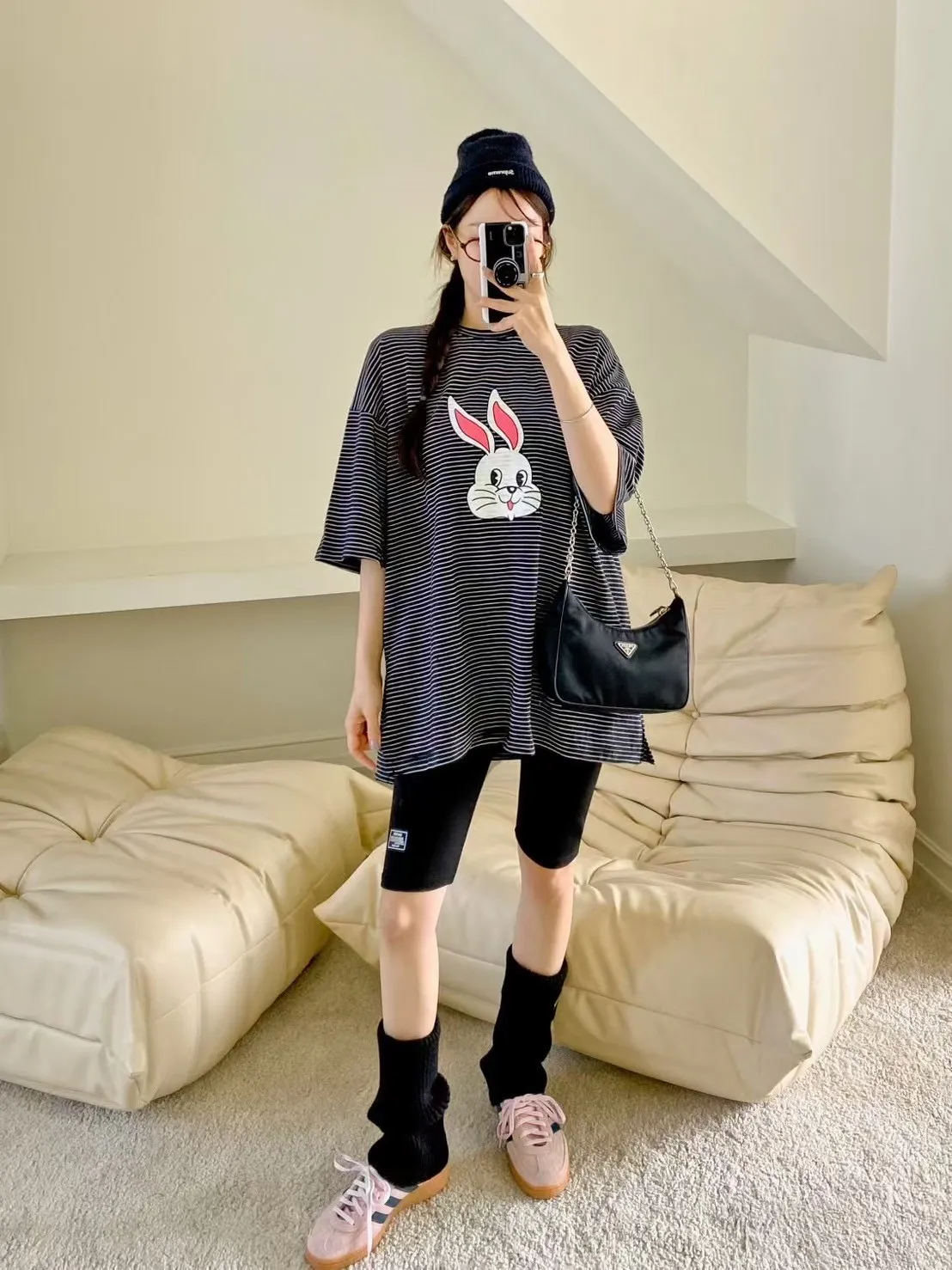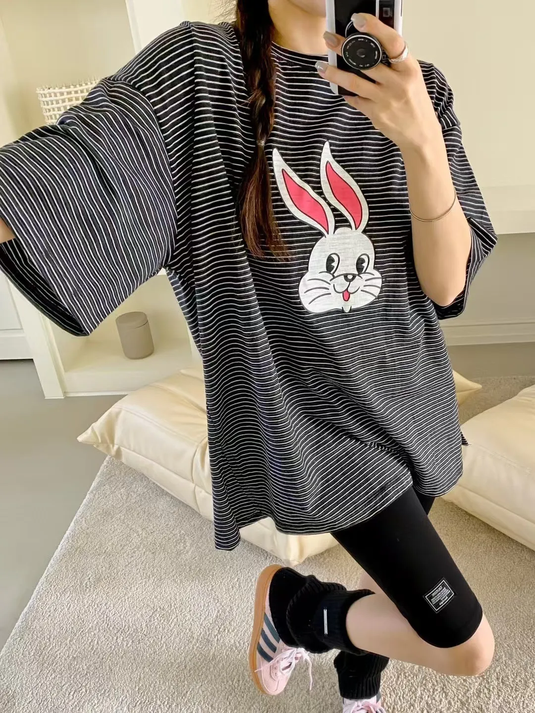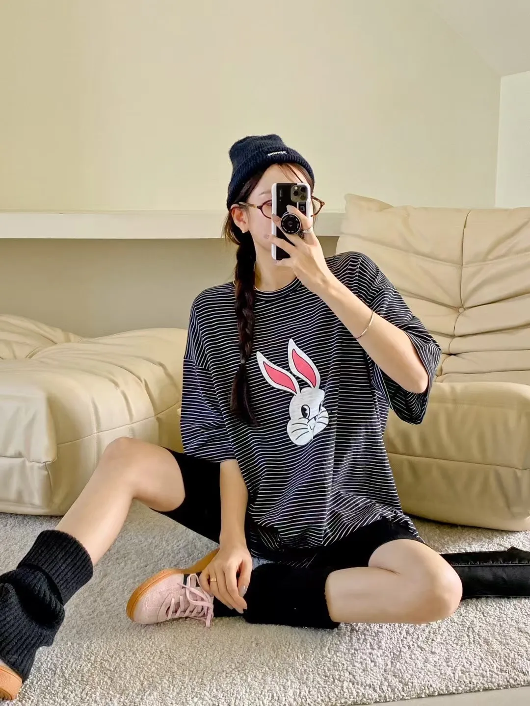 棉 可愛兔兔 類似竹節棉 透氣舒適 側面開叉