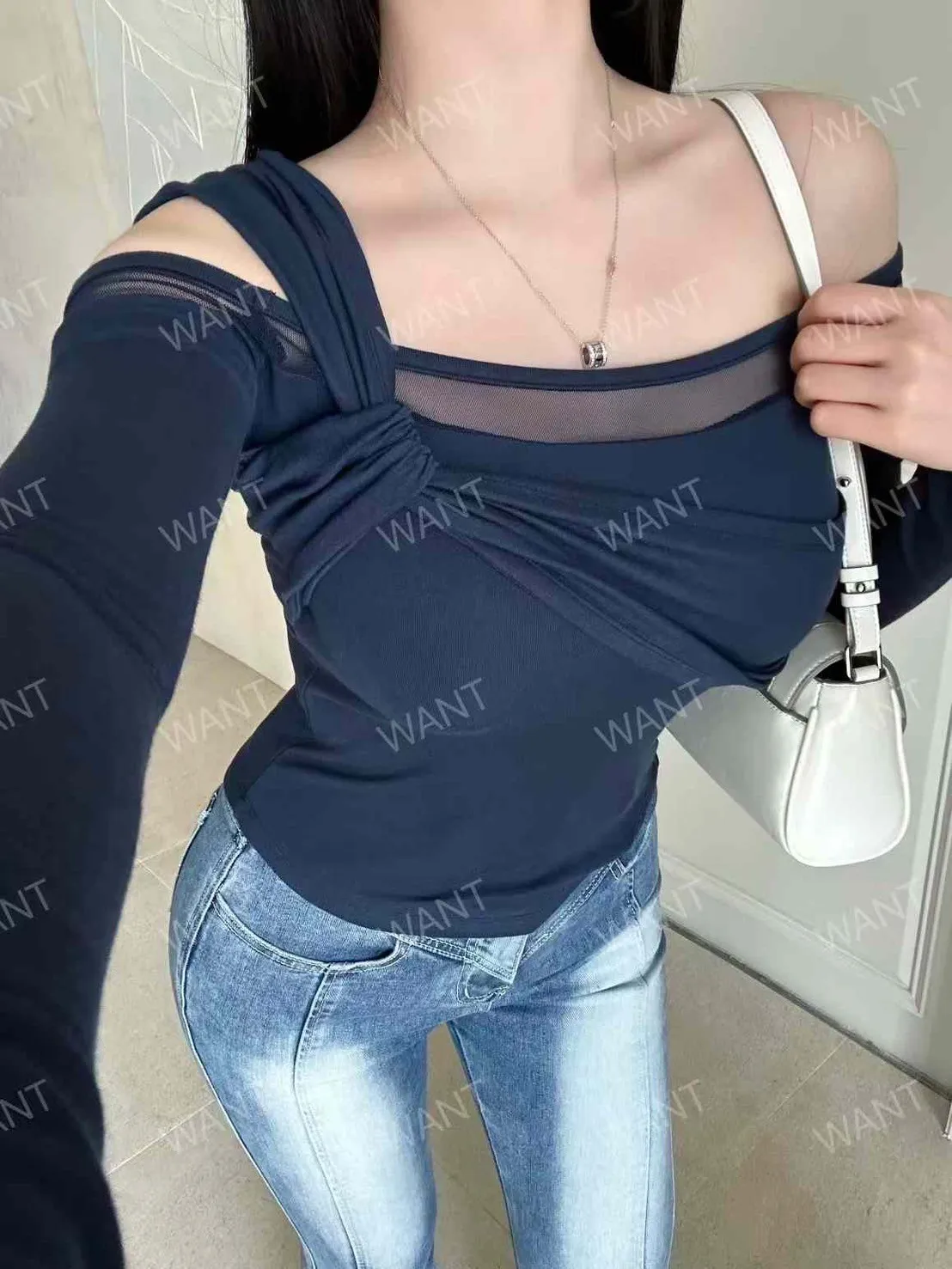 棉+網紗 微性感透膚 網紗有彈性親膚不刺癢 單肩設計 遮附乳