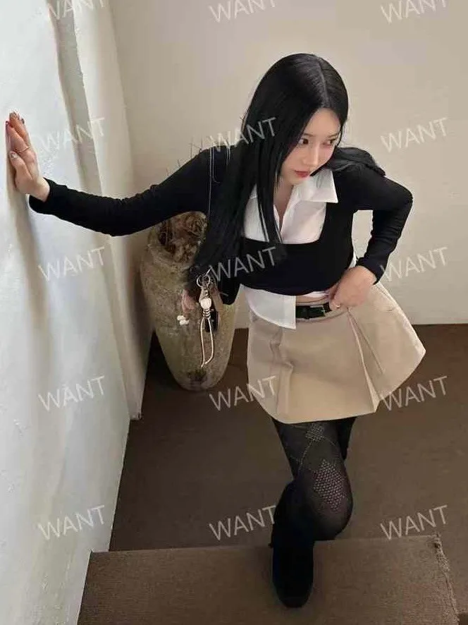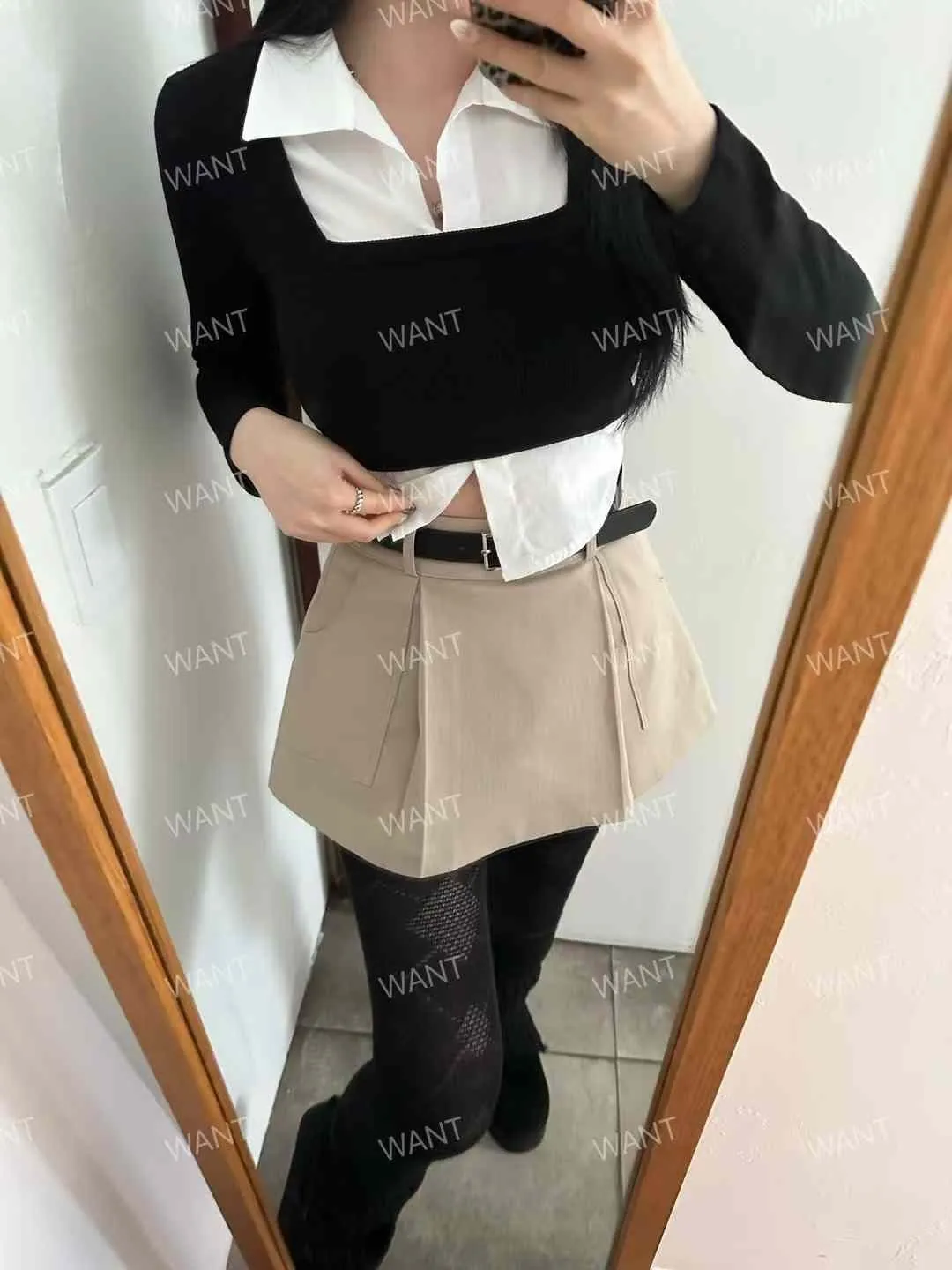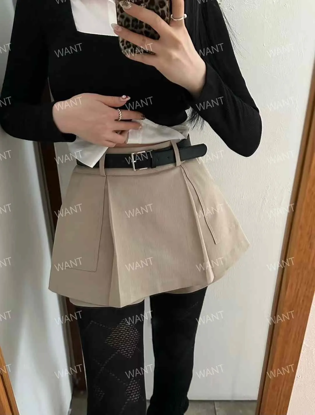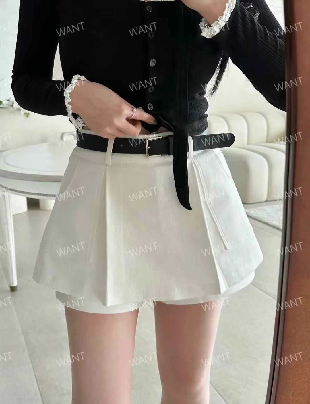AK520細腿好比例套裝組(褲裙+皮帶) 白 黑 奶茶 官網價$1100 線上價$1070