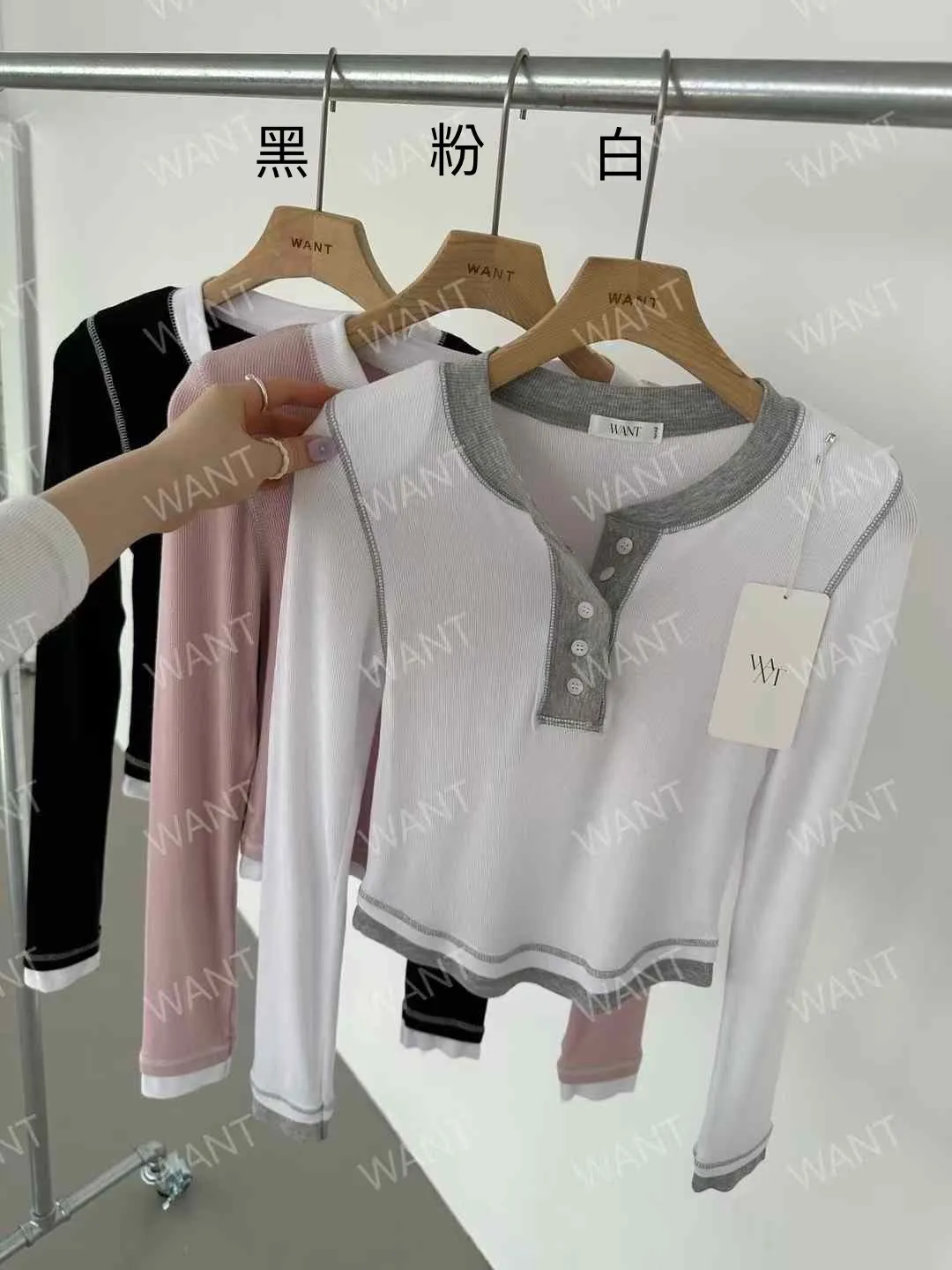 AK522薄款開襟跳色設計上衣 白 粉 黑 官網價$660 線上價$630