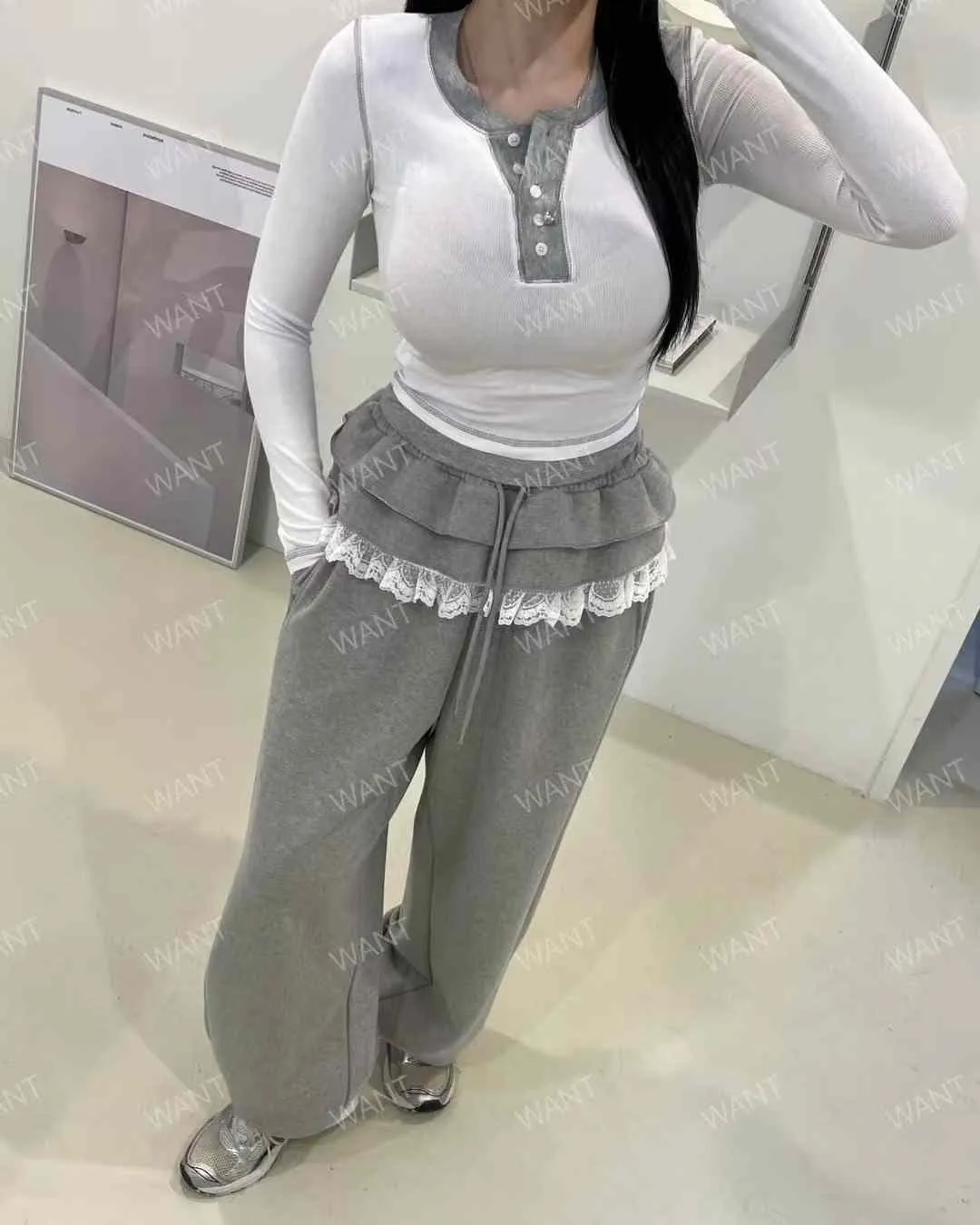 AK523蕾絲小襯裙棉長褲 米 粉 藍 灰 黑 官網價$1220 線上價$1190