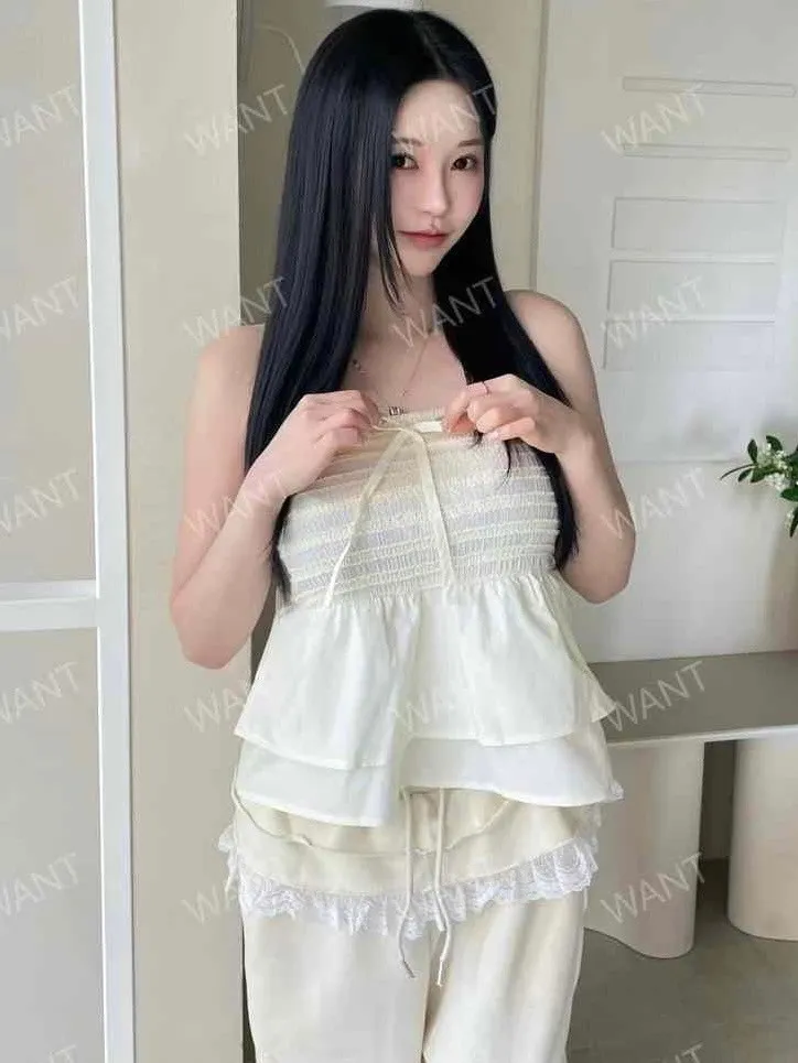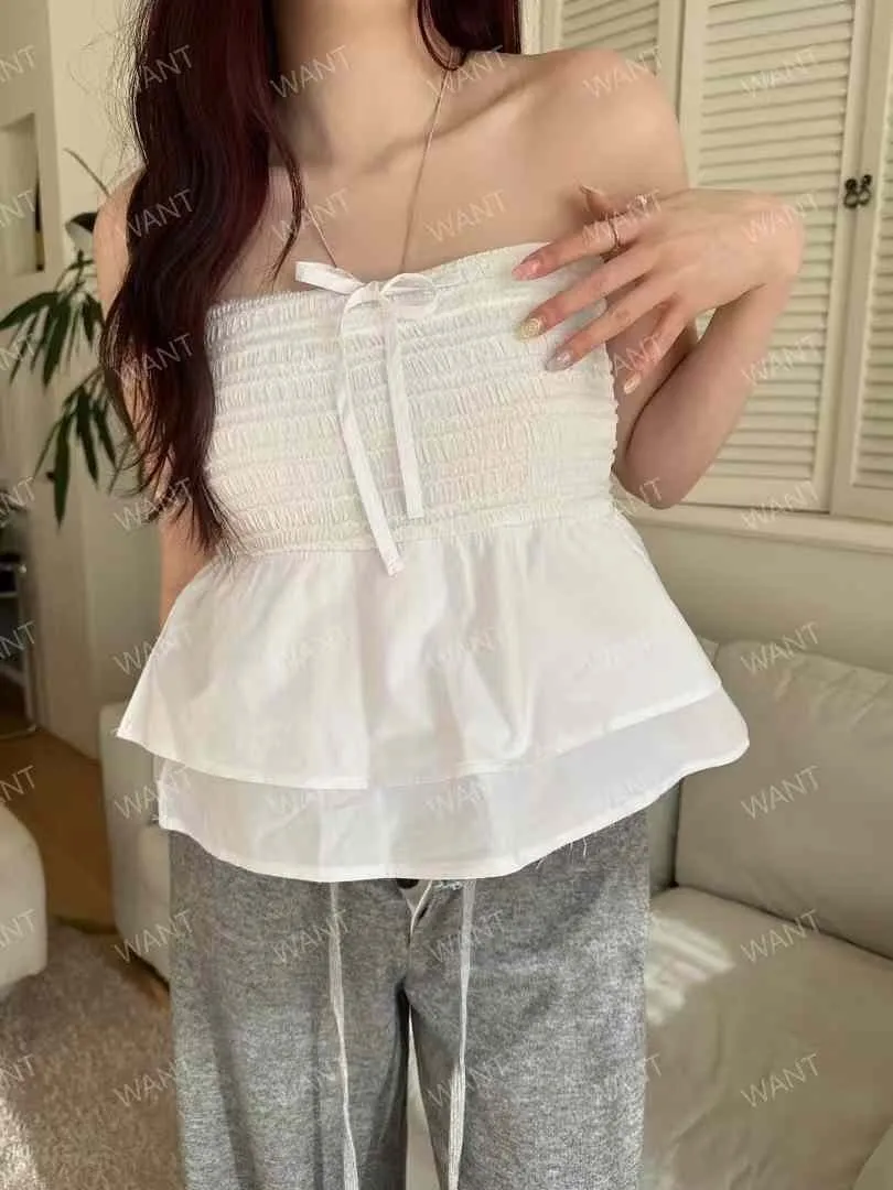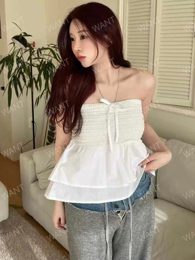 AK524平口胸綁帶娃娃裝上衣 白 米 黑 官網價$590 線上價$560