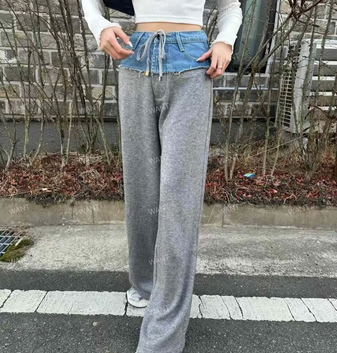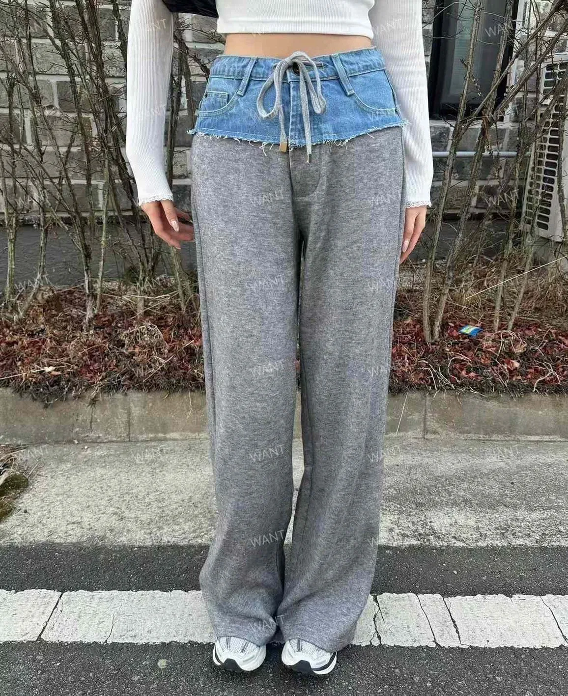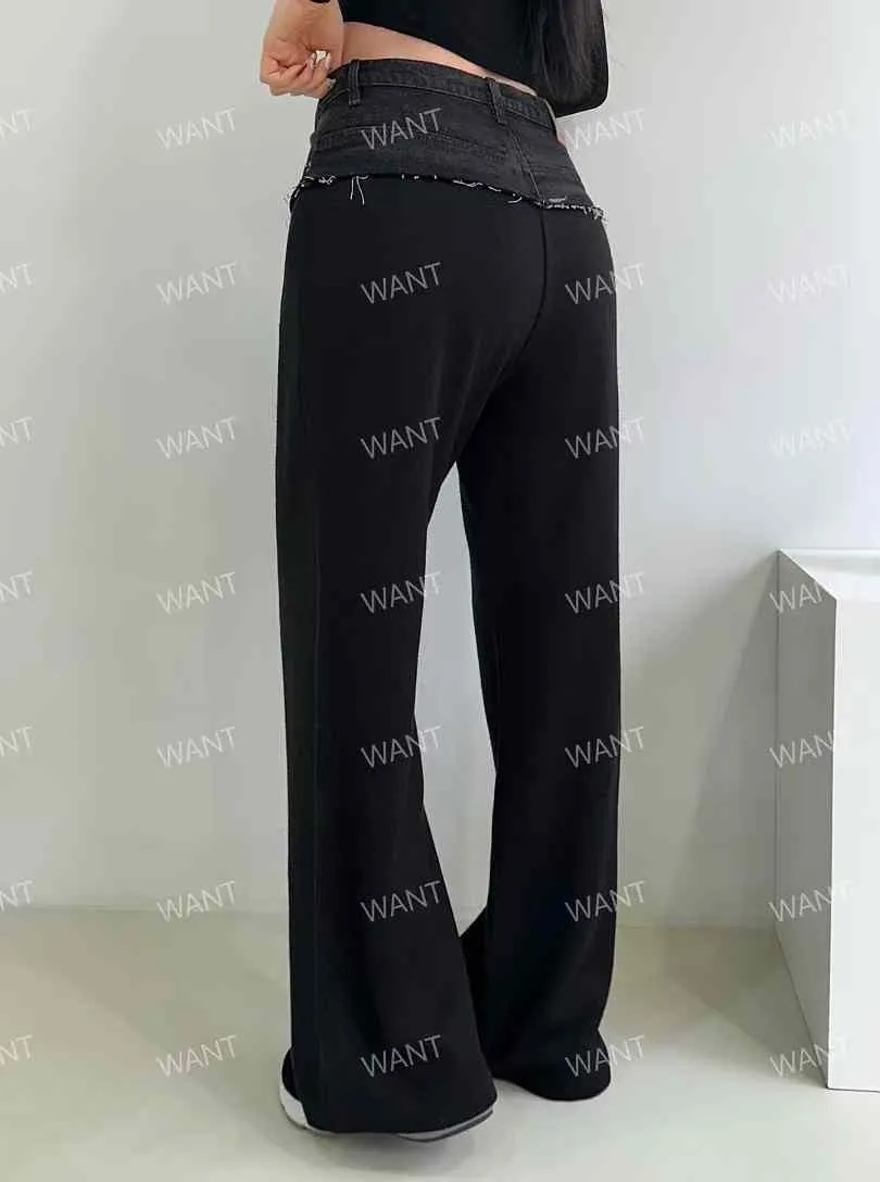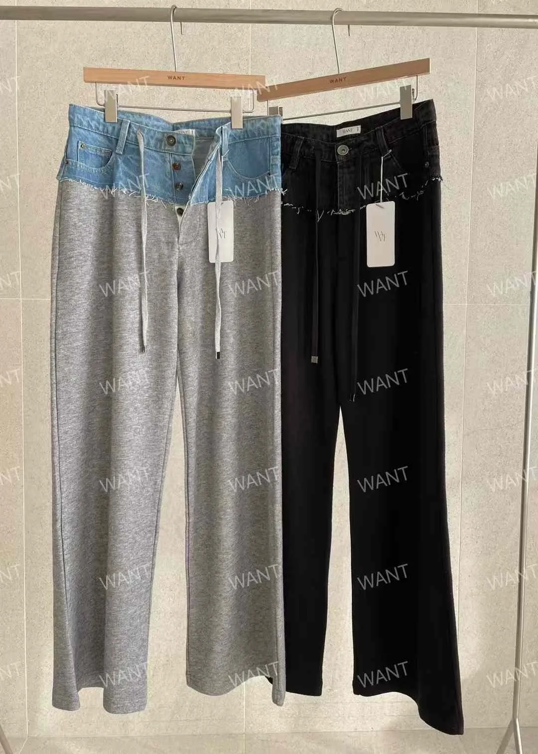 AK525丹寧腰拼接棉長褲 灰 黑 官網價$1120 線上價$1190