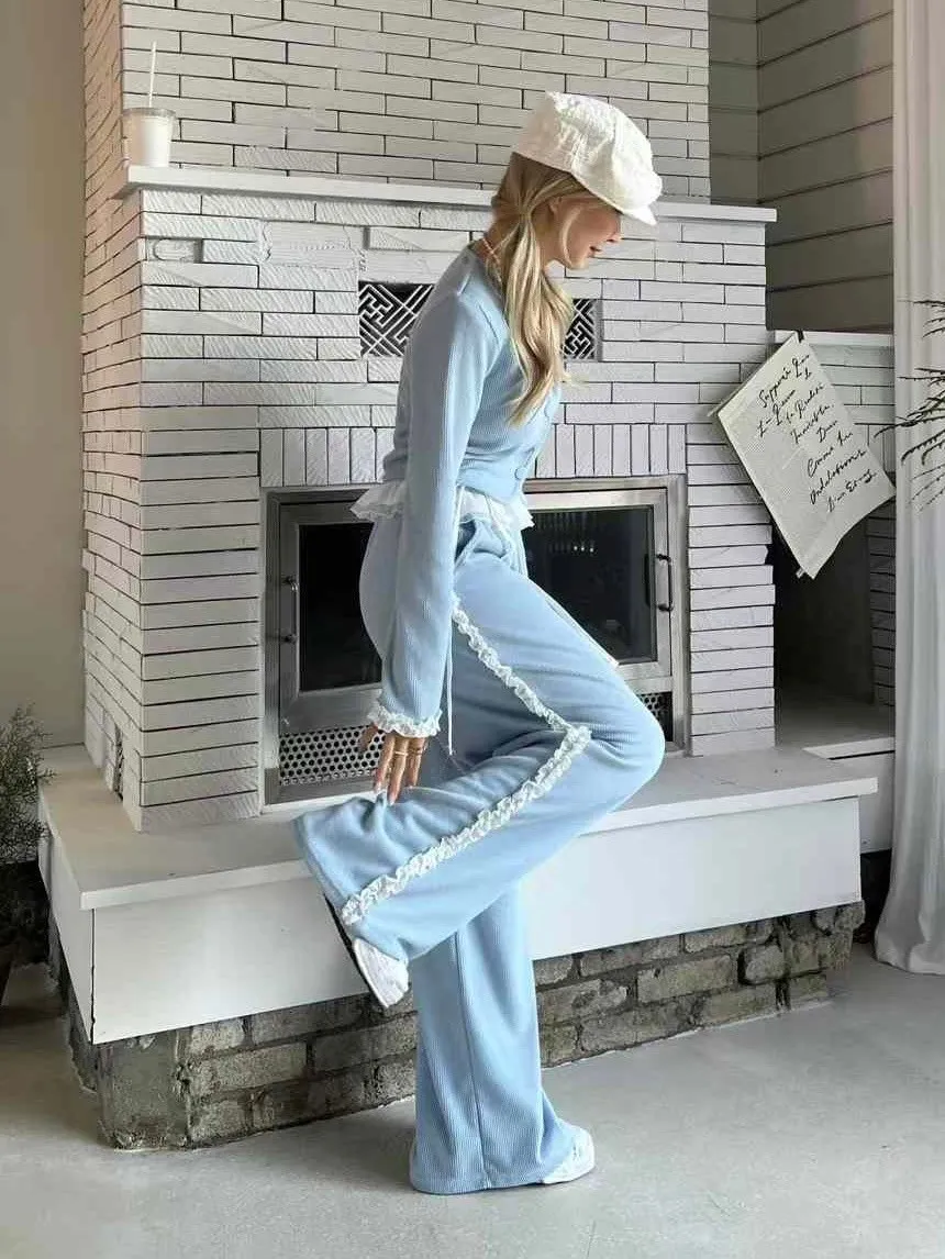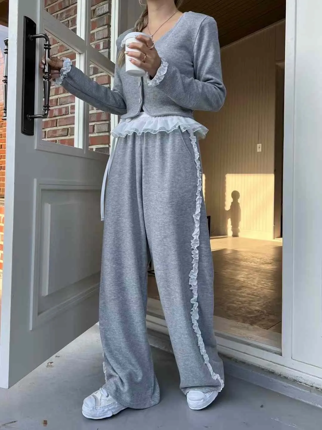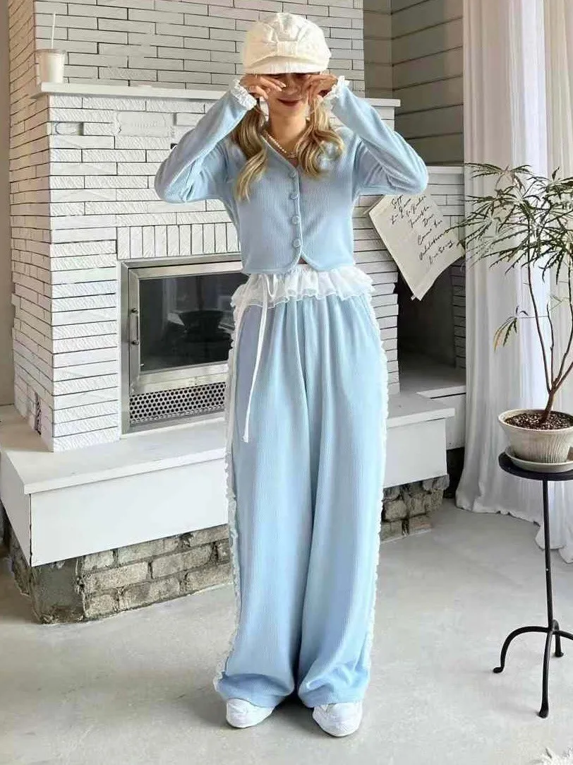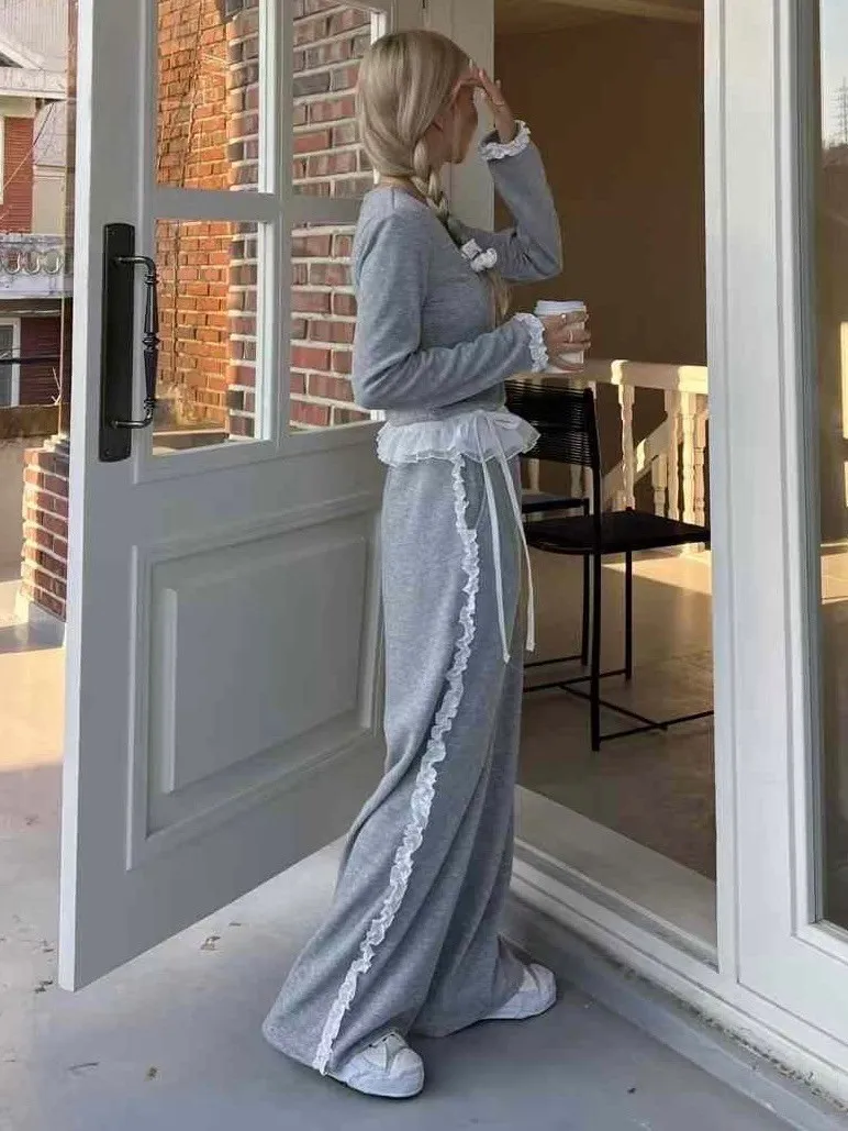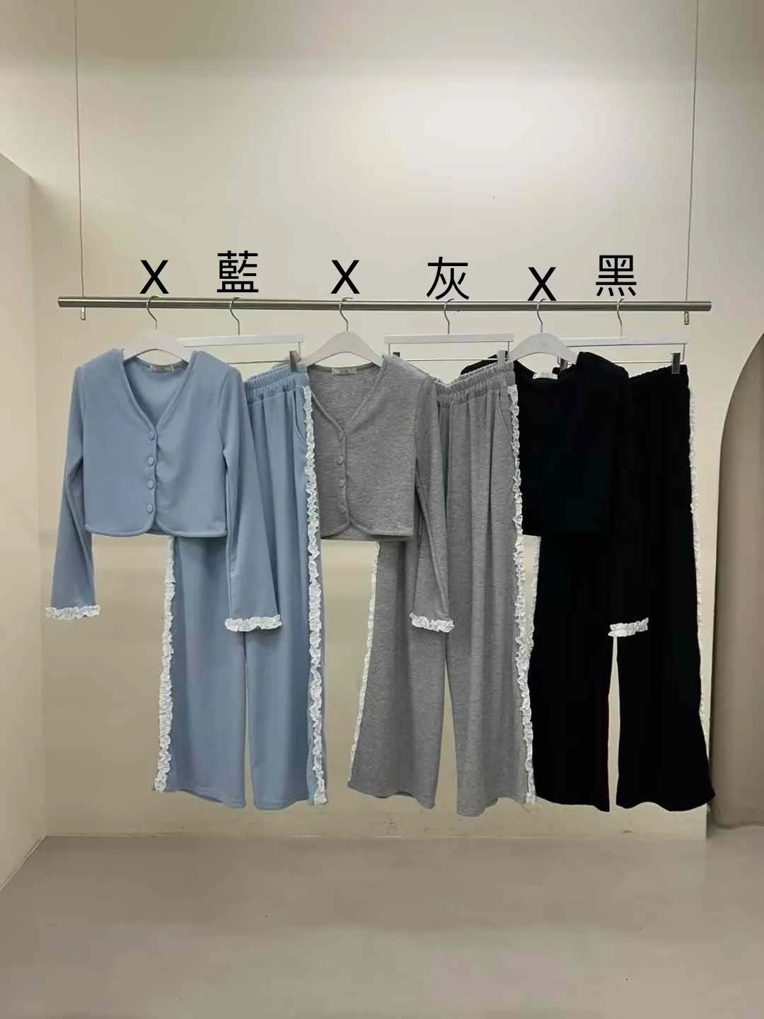 棉 蕾絲側腿 有口袋 全腰鬆緊有抽繩加固不外翻 自然垂墜