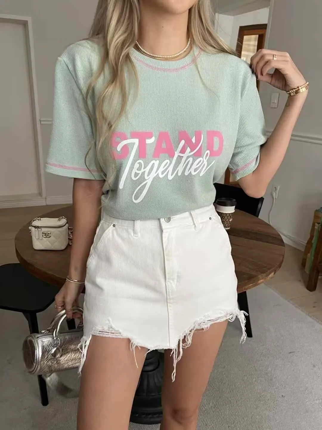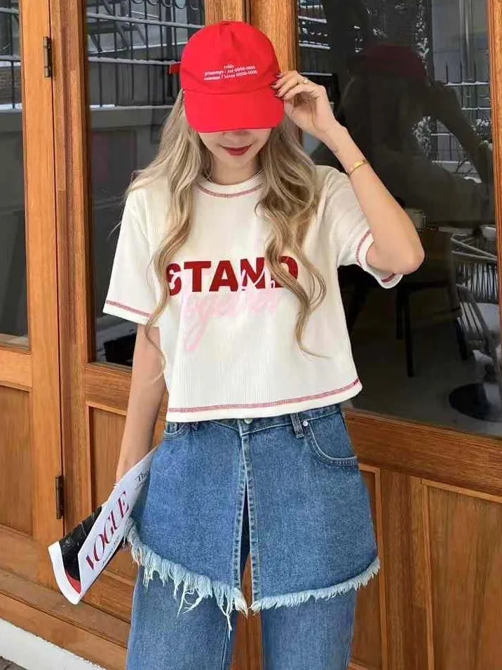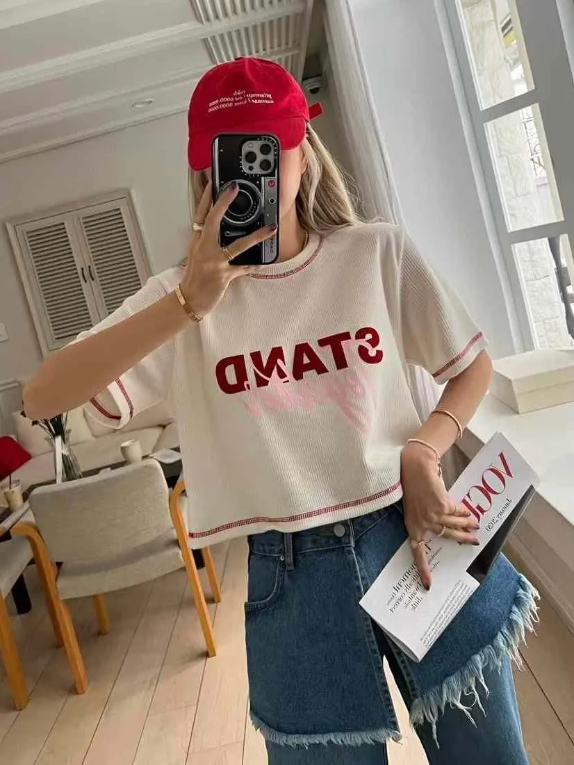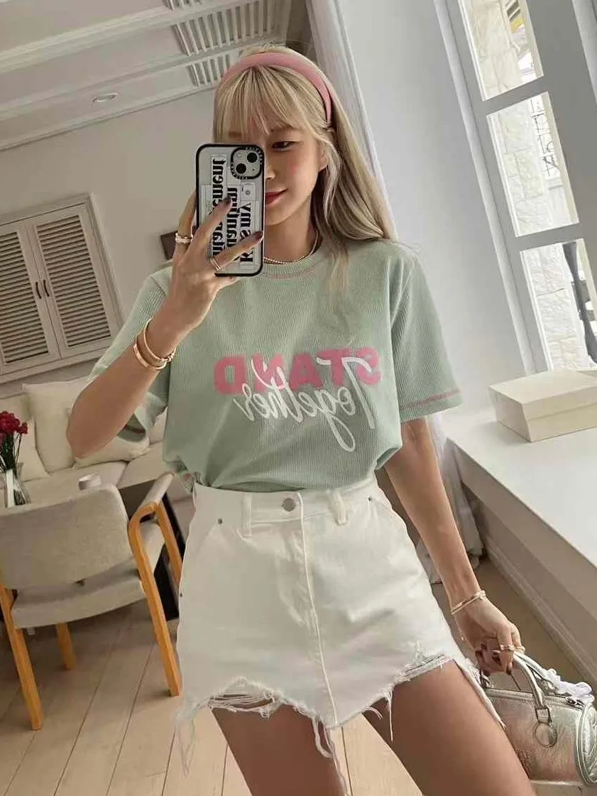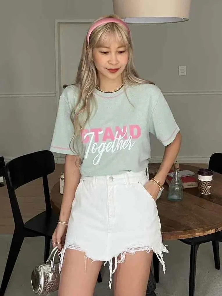 棉 舒適透氣 夏天配色 層次英文字體 短版好比例