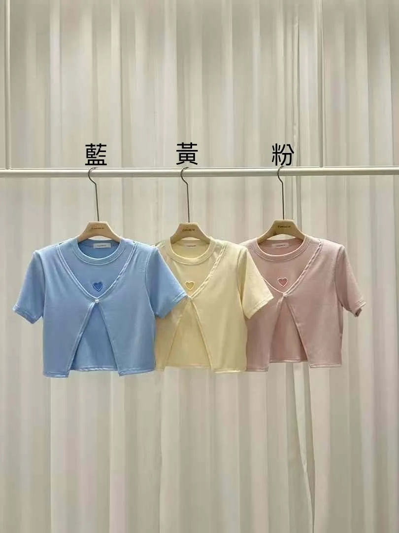棉 簍空愛心 假兩件不可拆 短版好比例 夏天可 釦子也是愛心