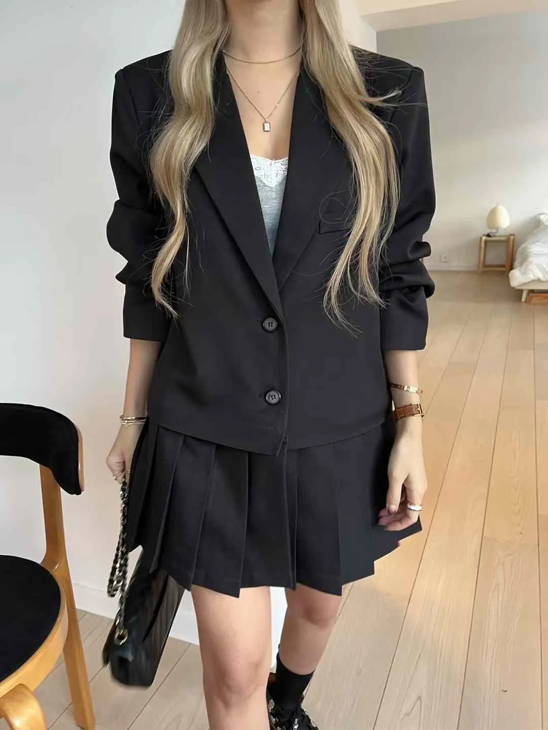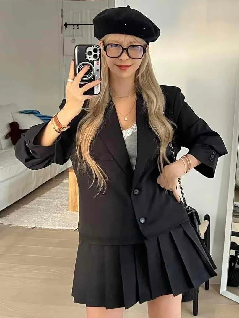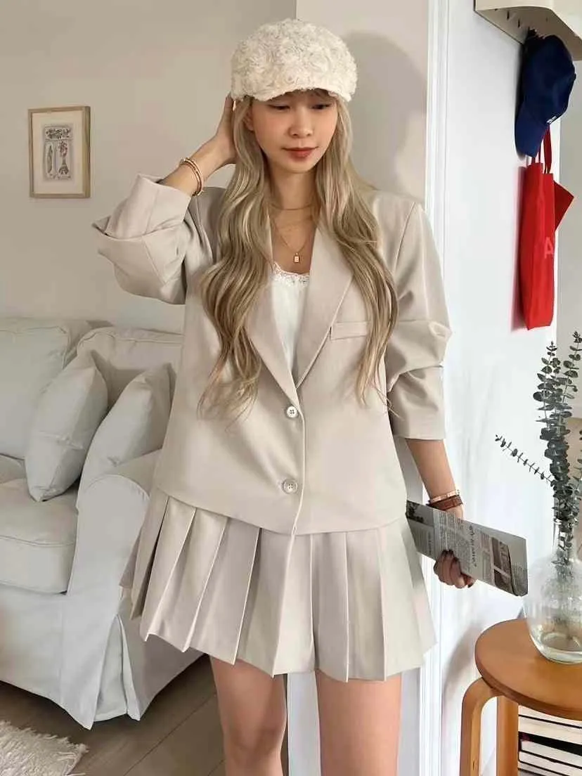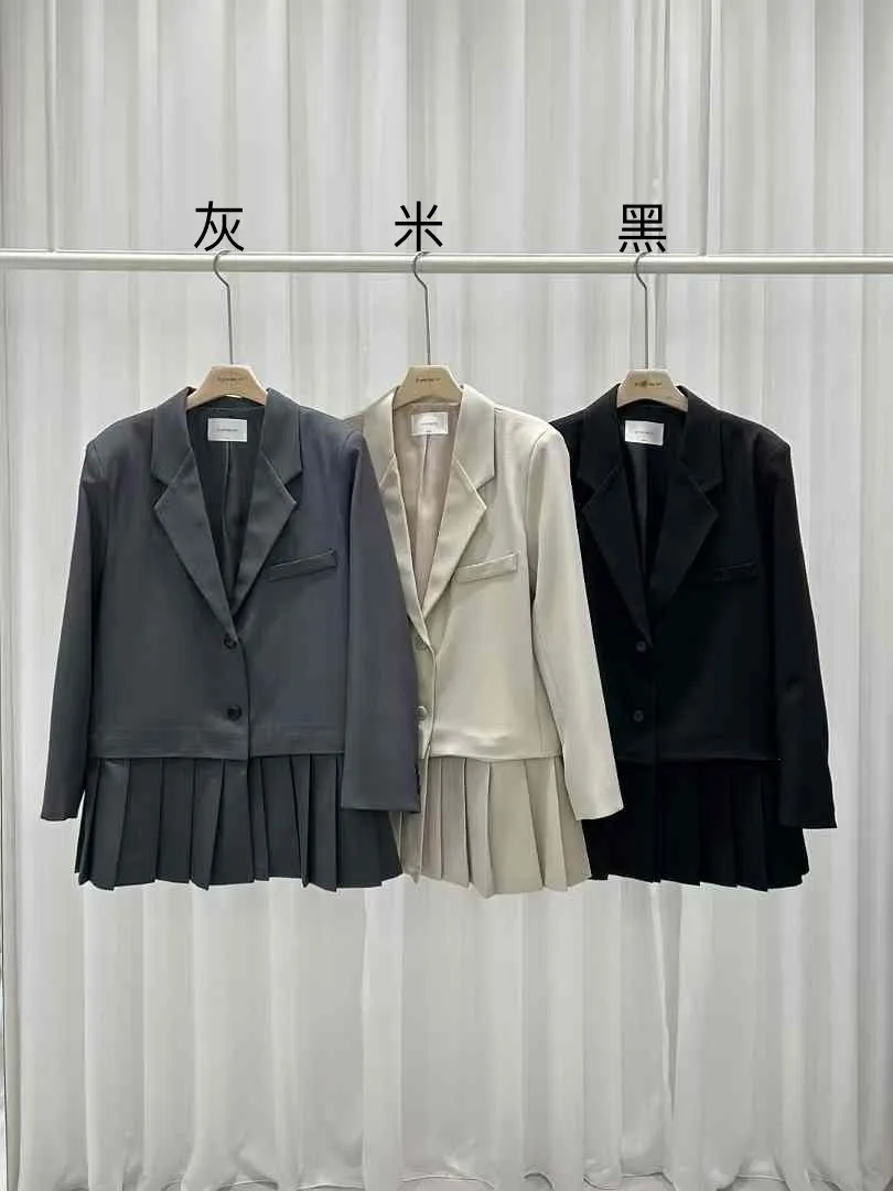 西裝面料 薄款 外套和裙子可以拆開 兩件拉鍊連結 夏天可穿 無口袋