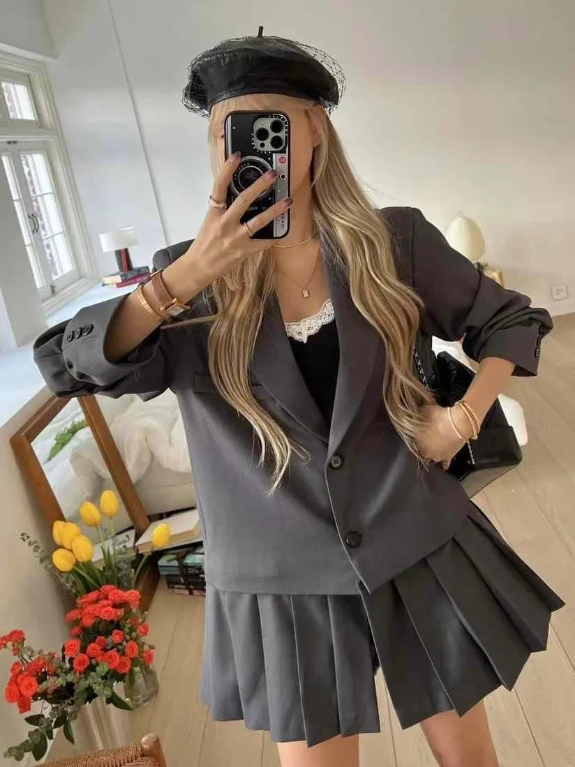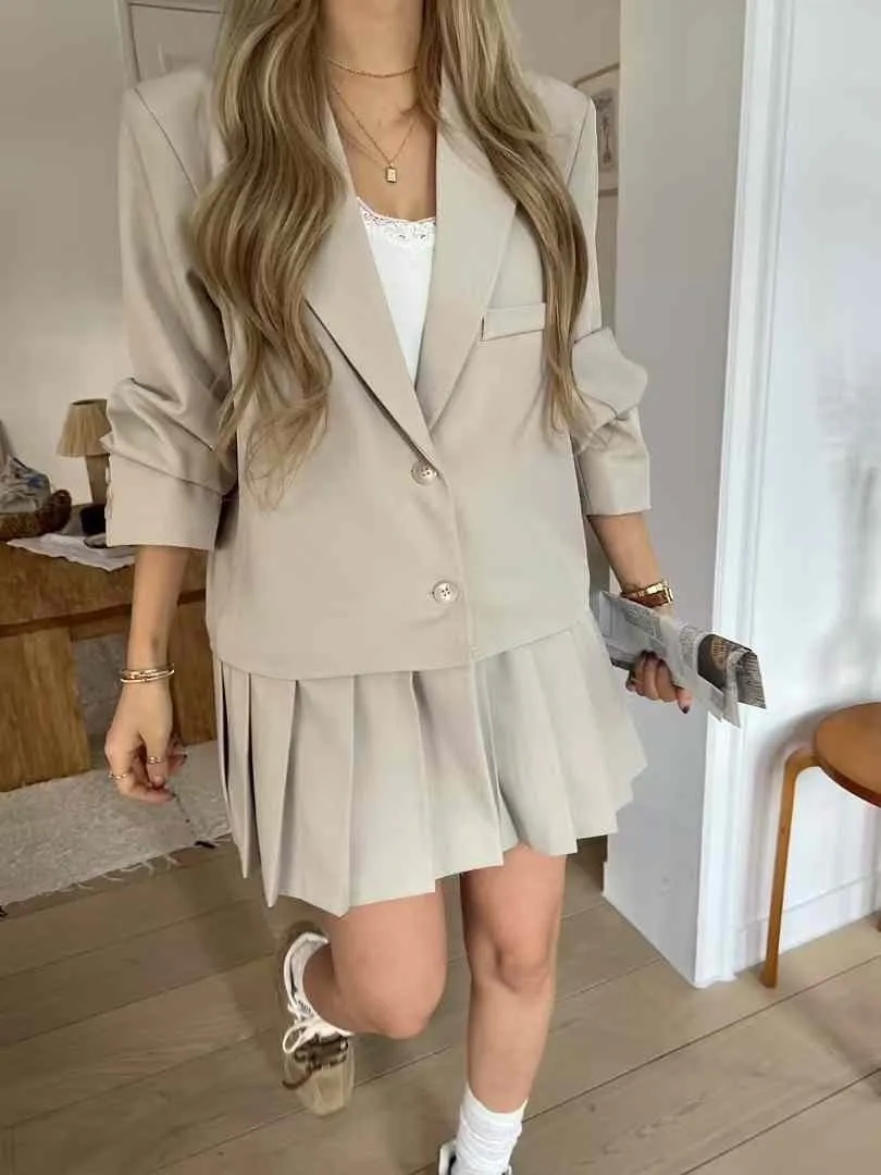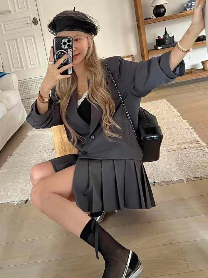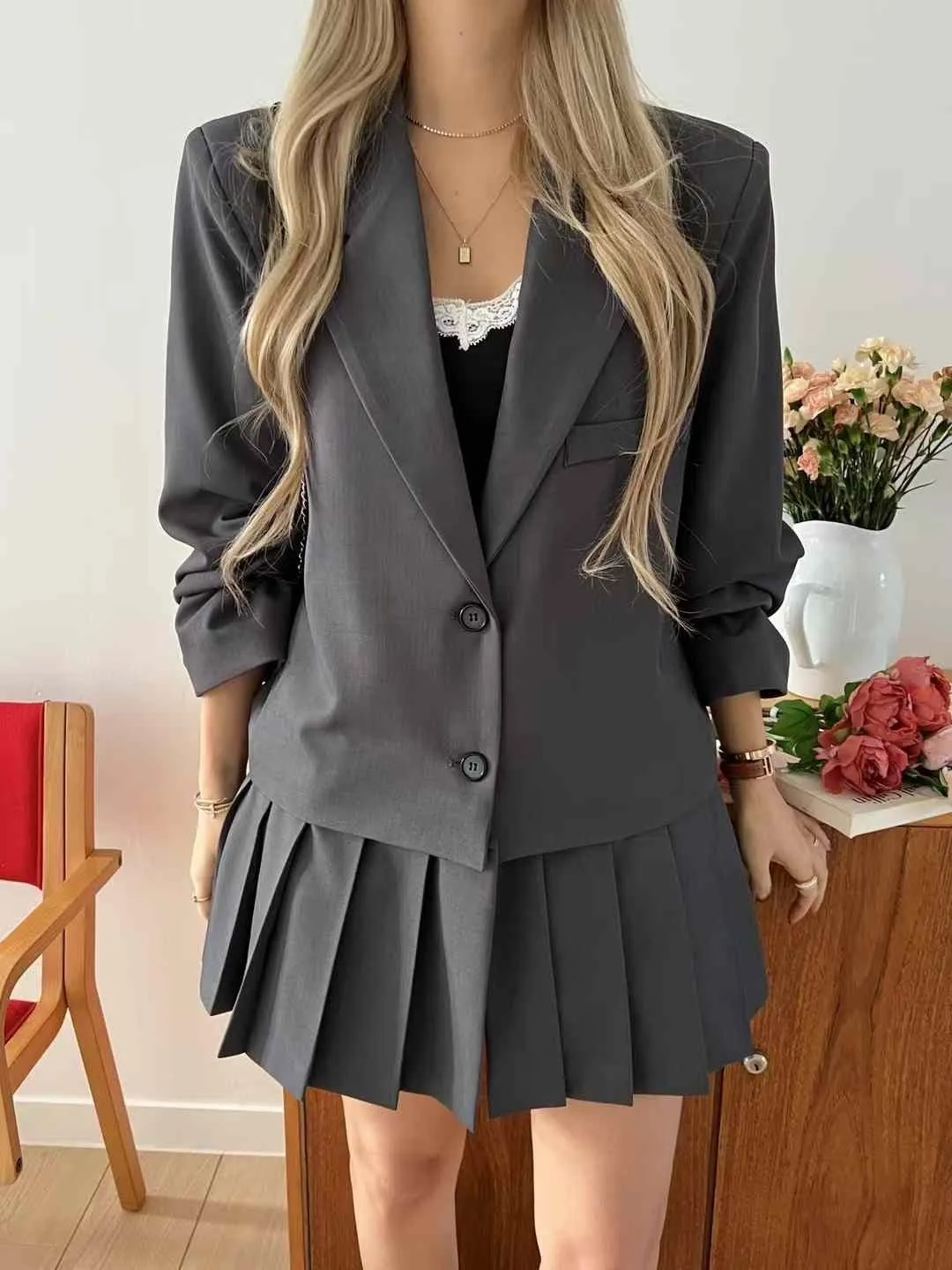 西裝面料 薄款 外套和裙子可以拆開 兩件拉鍊連結 夏天可穿 無口袋