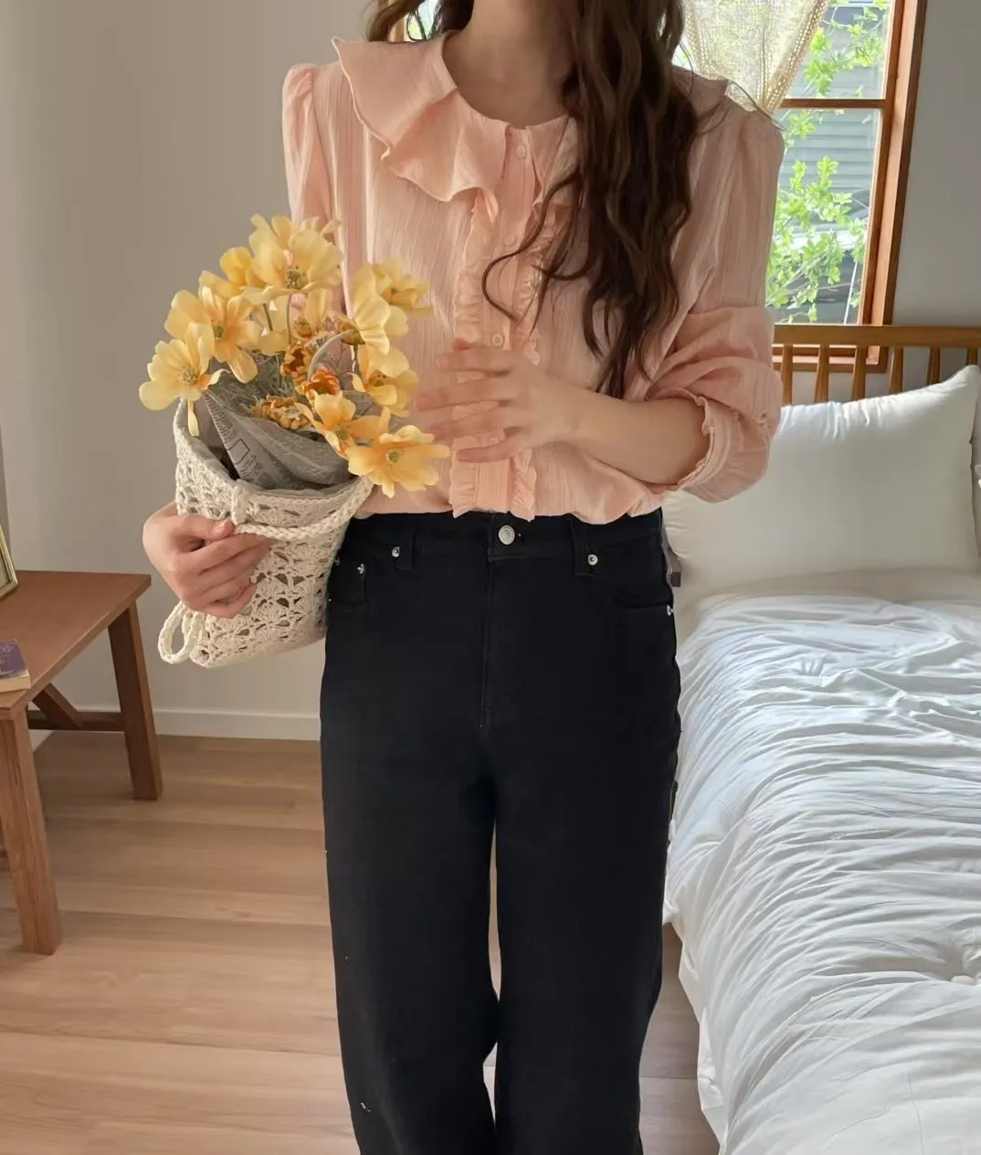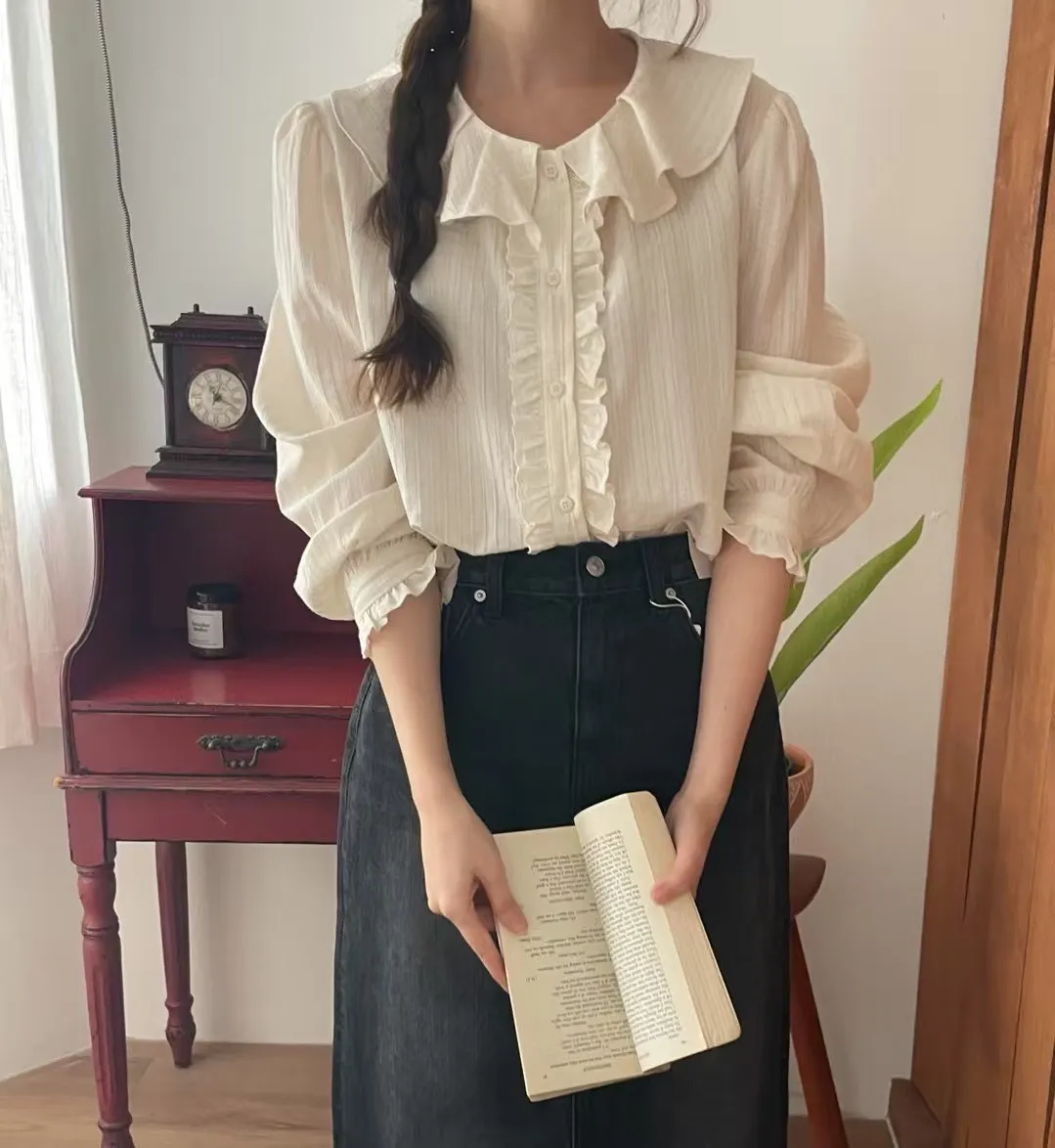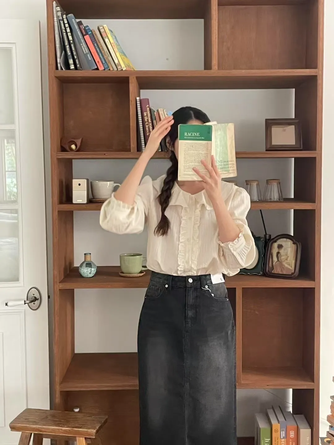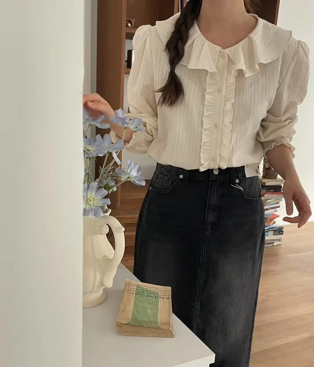 棉 薄款舒適 側圓弧開叉 氣質柔美 荷葉沿綿釦 版型顯瘦