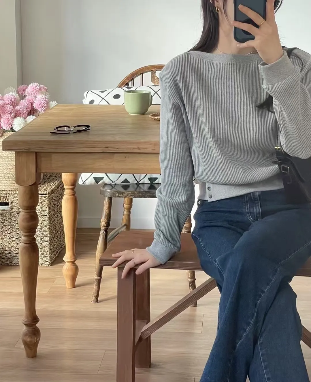 棉 船型領 下擺側腰小釦 有彈性 胸寬友善 穿到小L