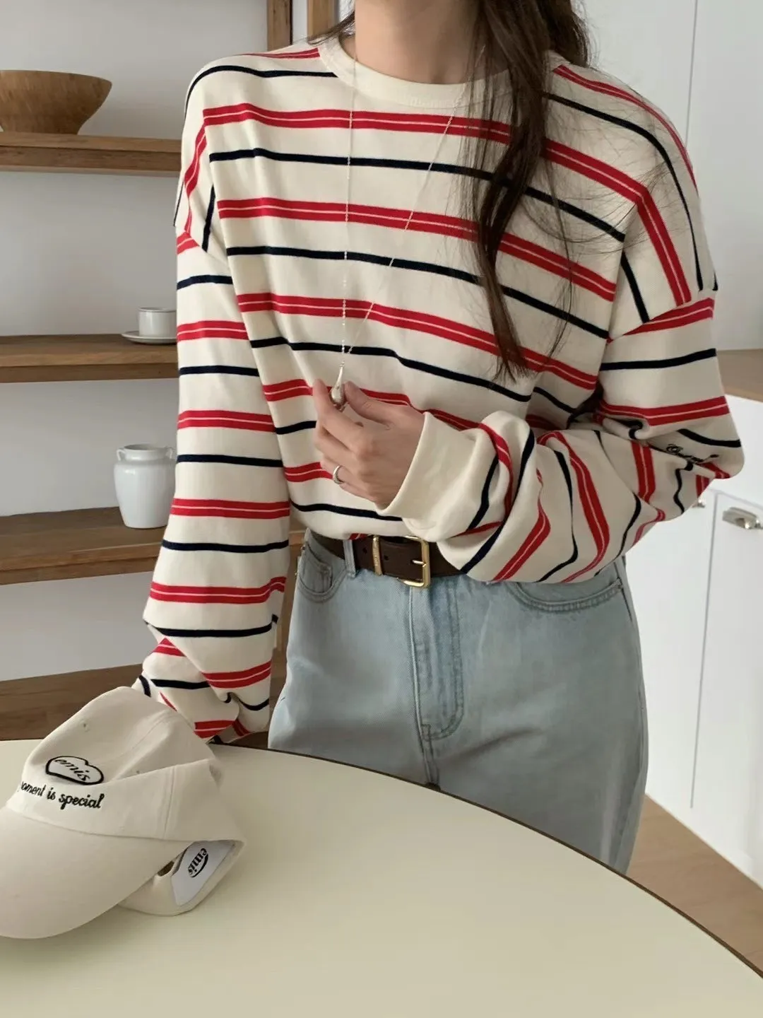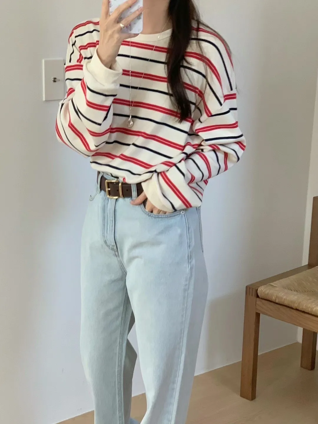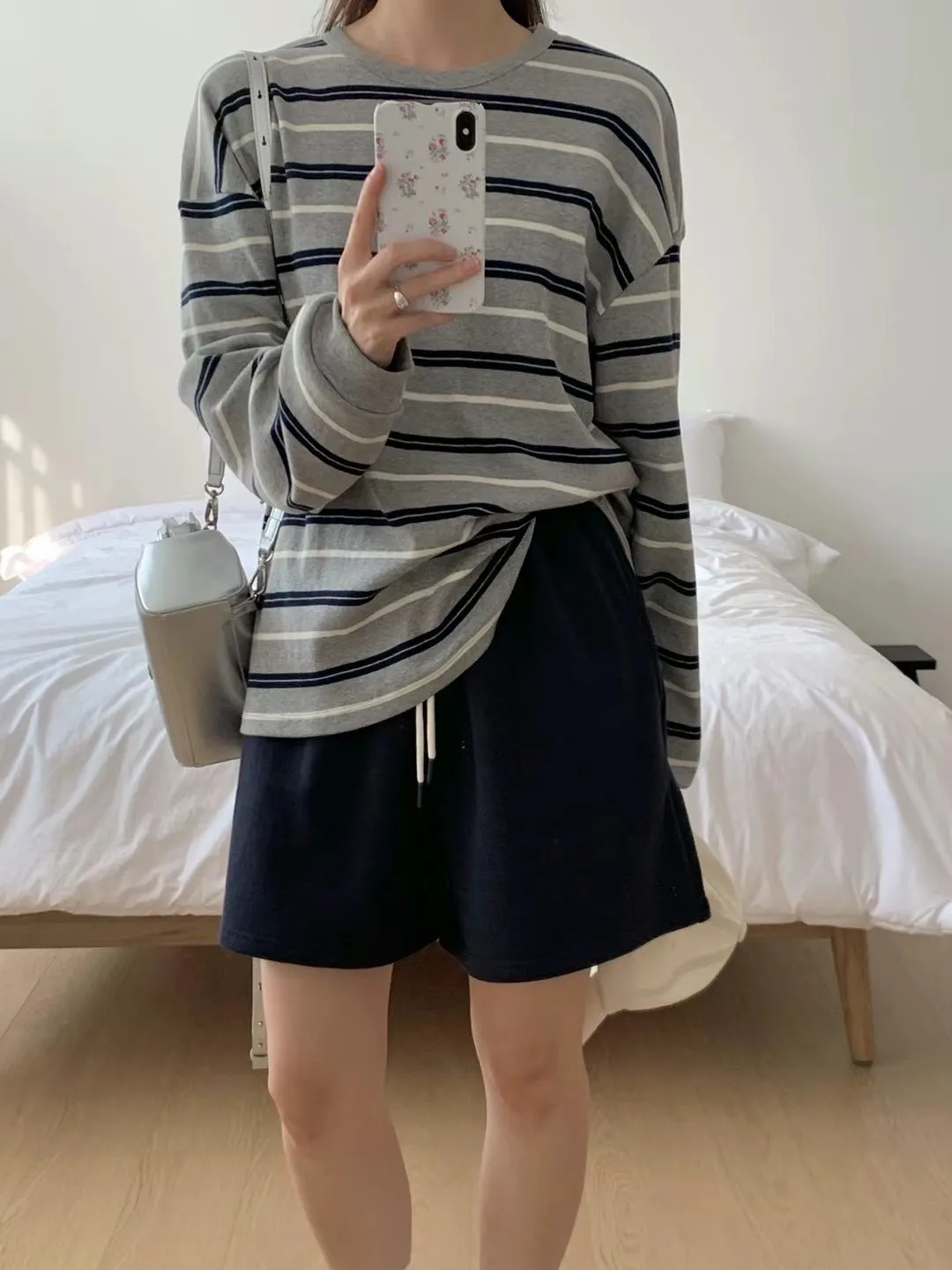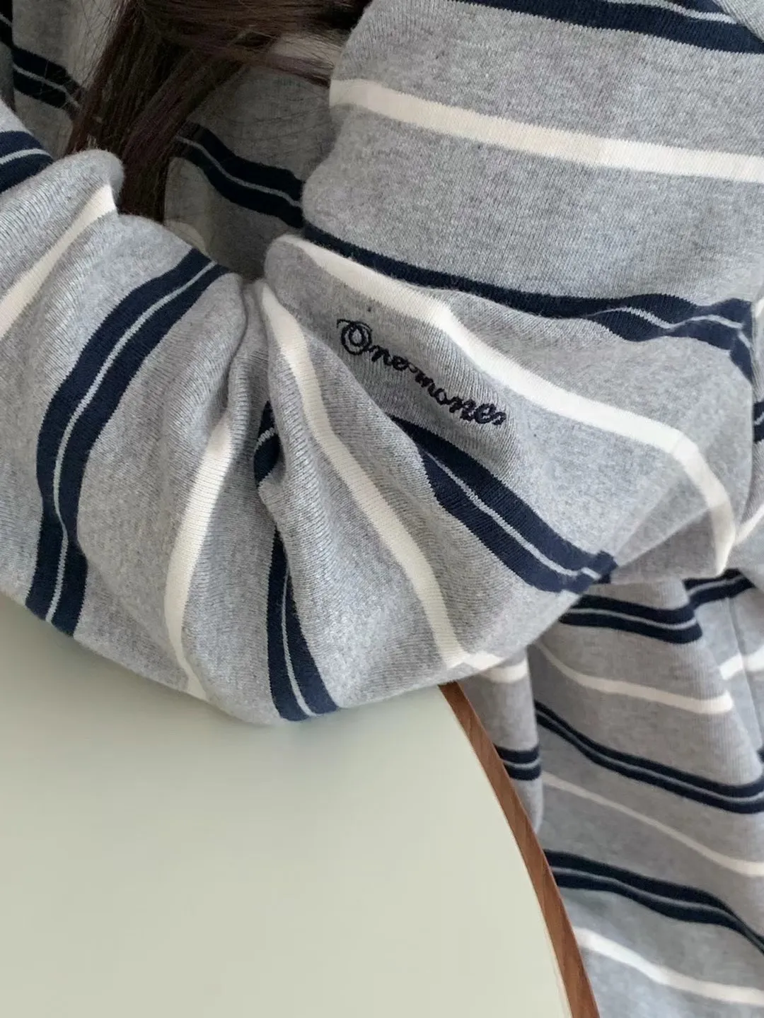 AK619推薦款很舒服條紋上衣 米 灰 官網價$920 線上價$890