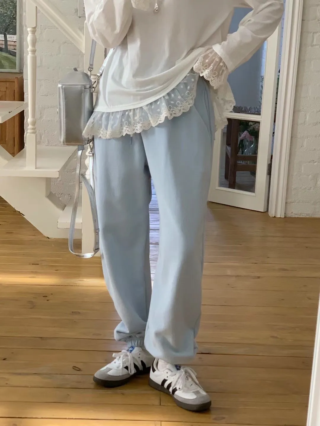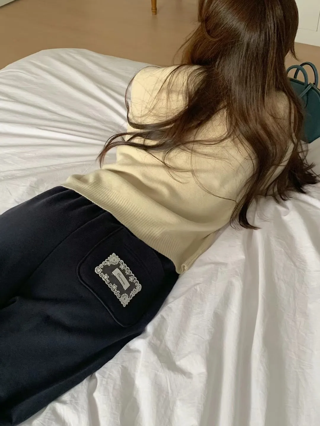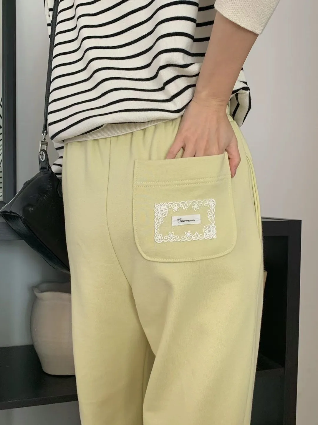棉 全腰鬆緊有抽繩 有口袋 屁屁蕾絲標 百搭風格 褲管縮口