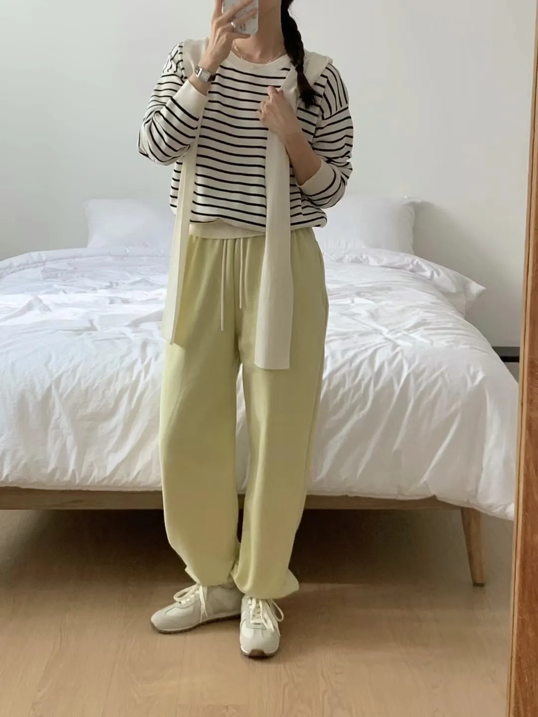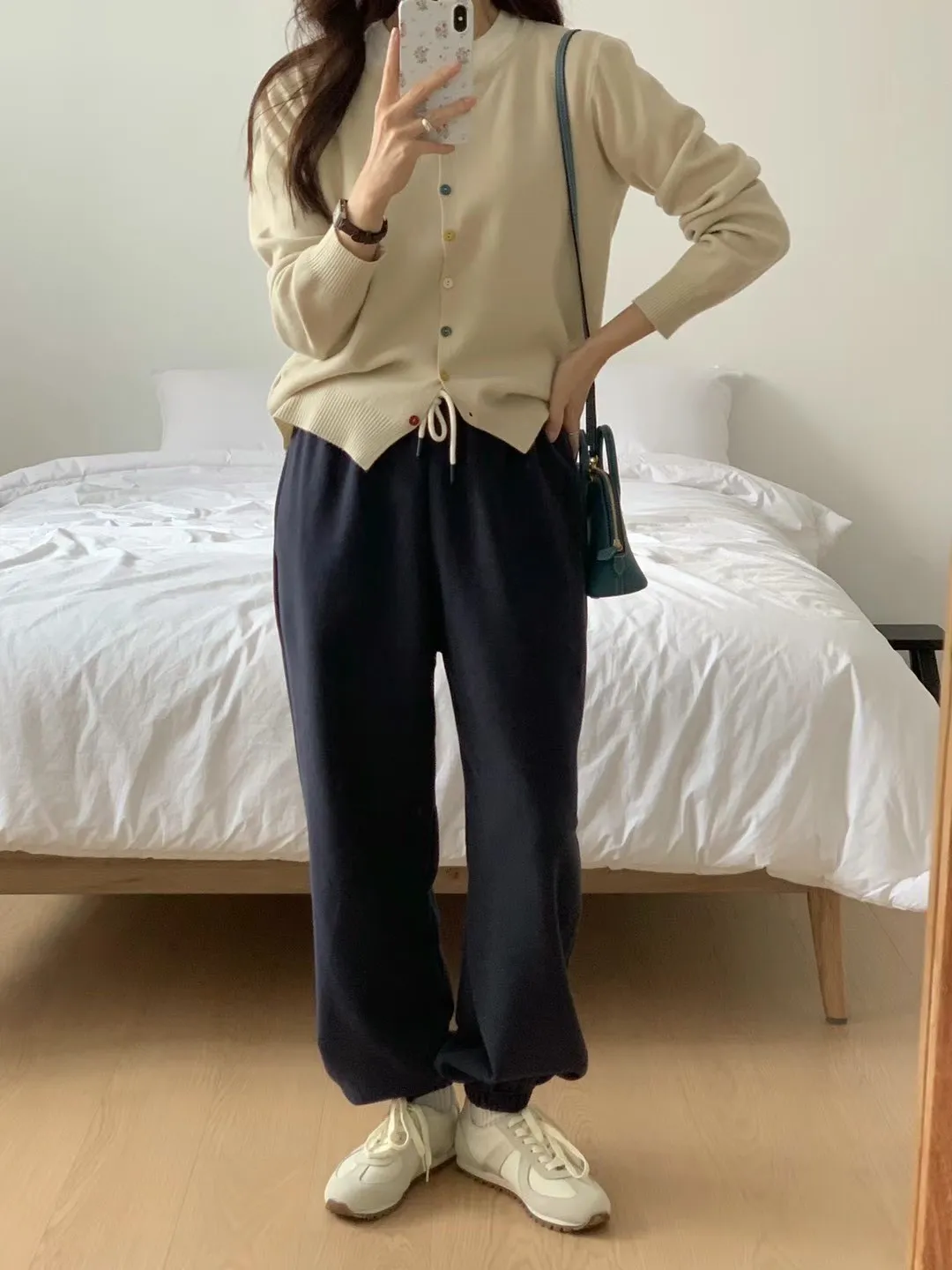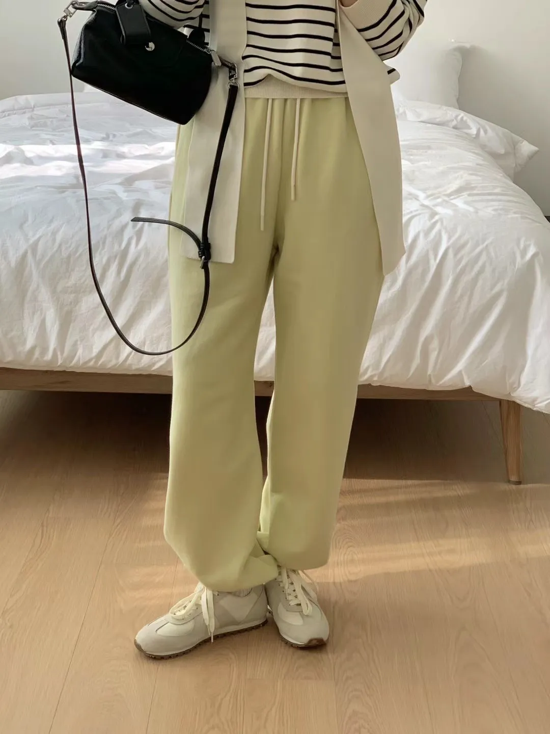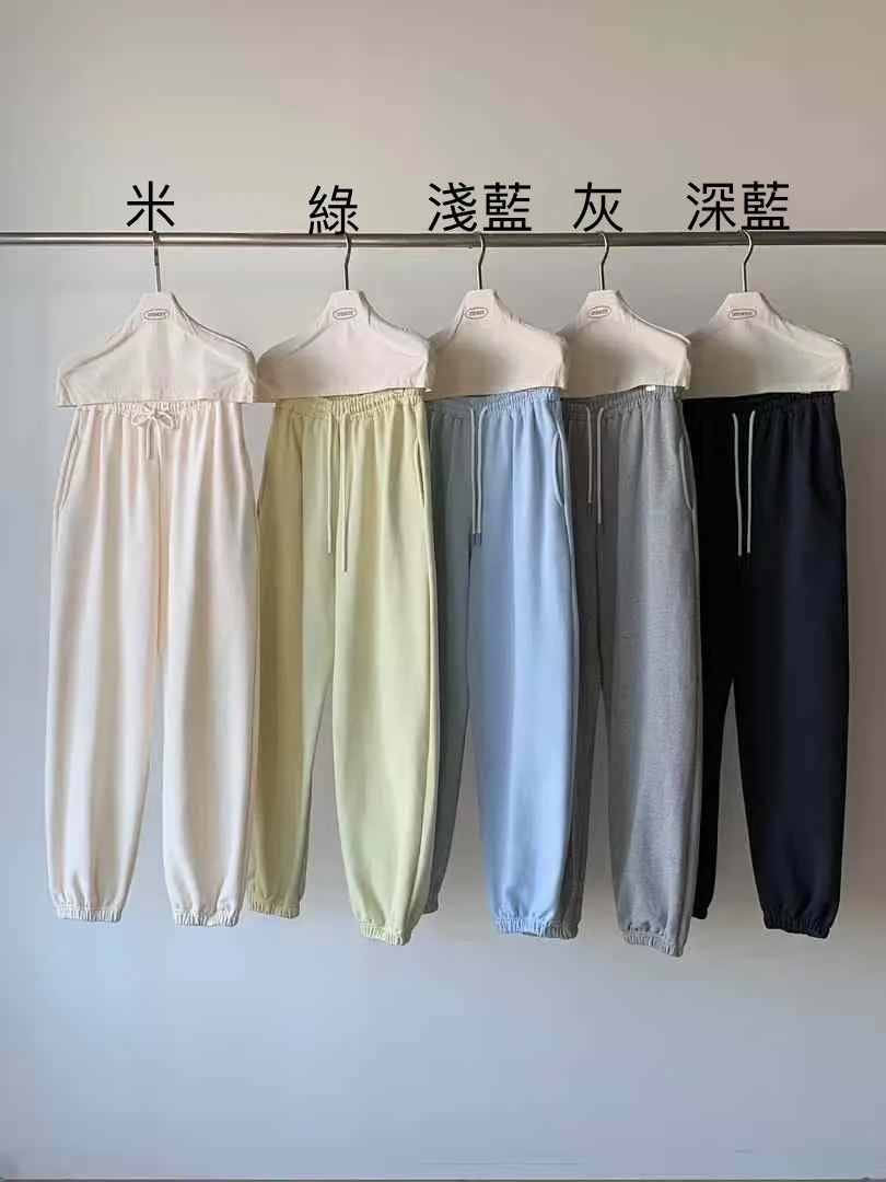 AK624百搭腰抽繩直筒棉長褲 米 綠 灰 淺藍 深藍 官網價$1070 線上價$1040