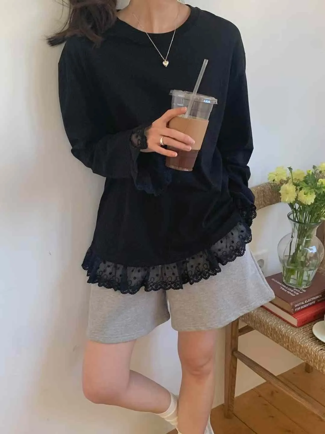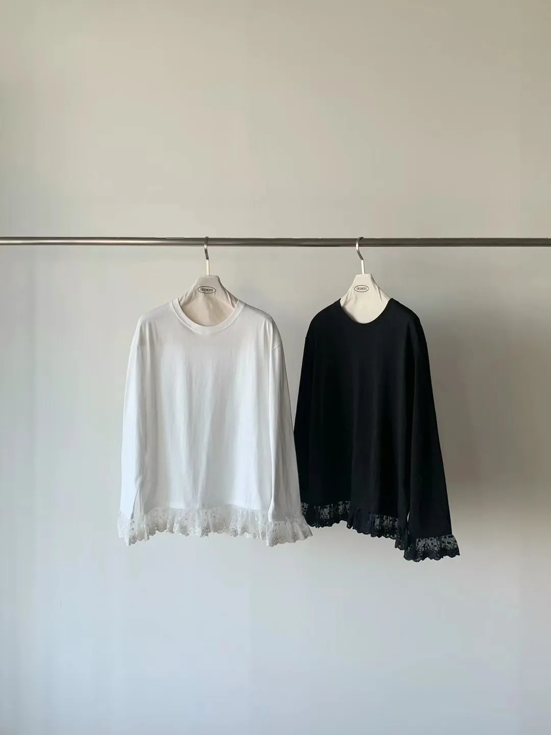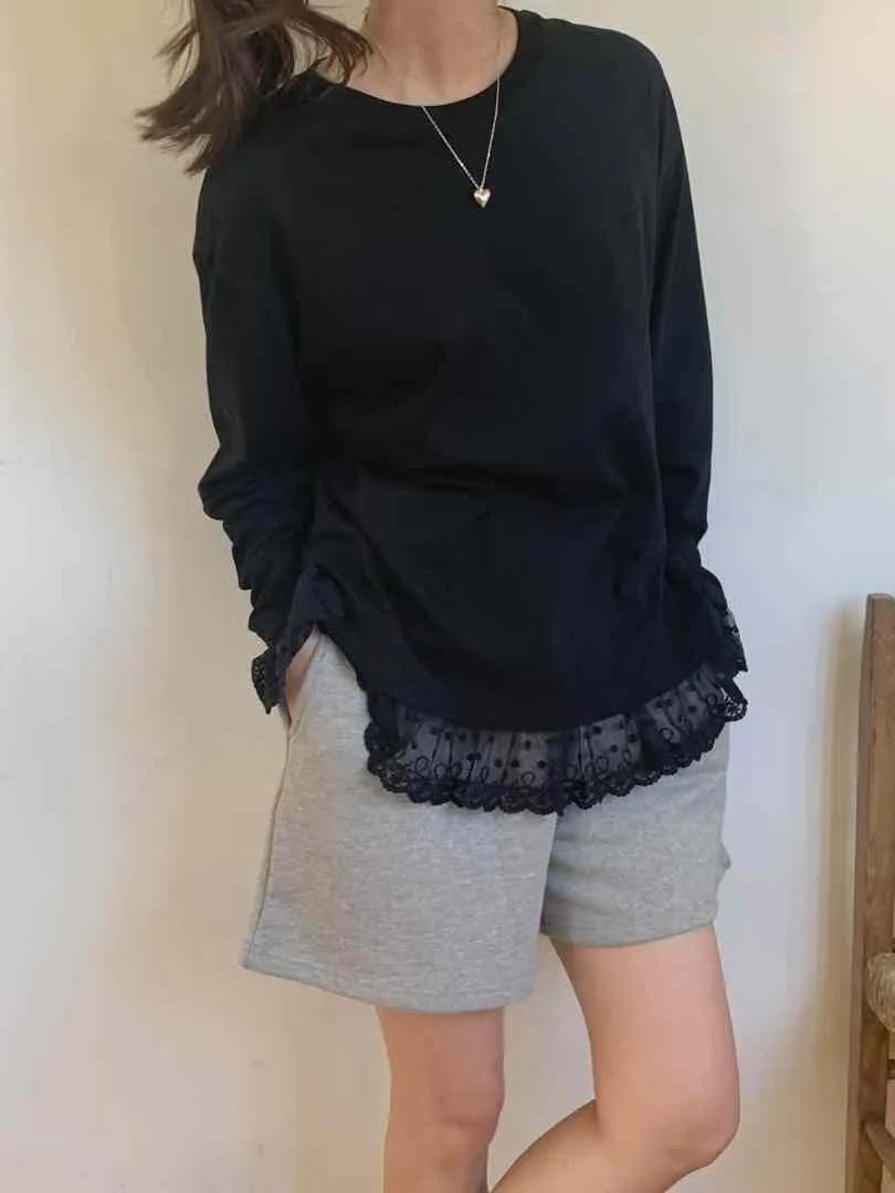 AK629極美手袖下擺蕾絲上衣 白 黑 官網價$829 線上價$799