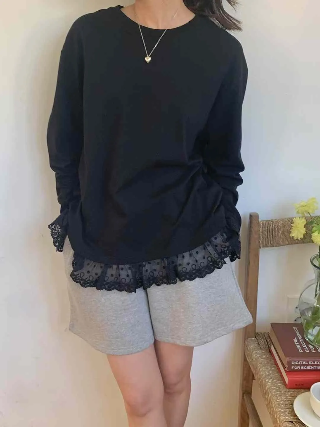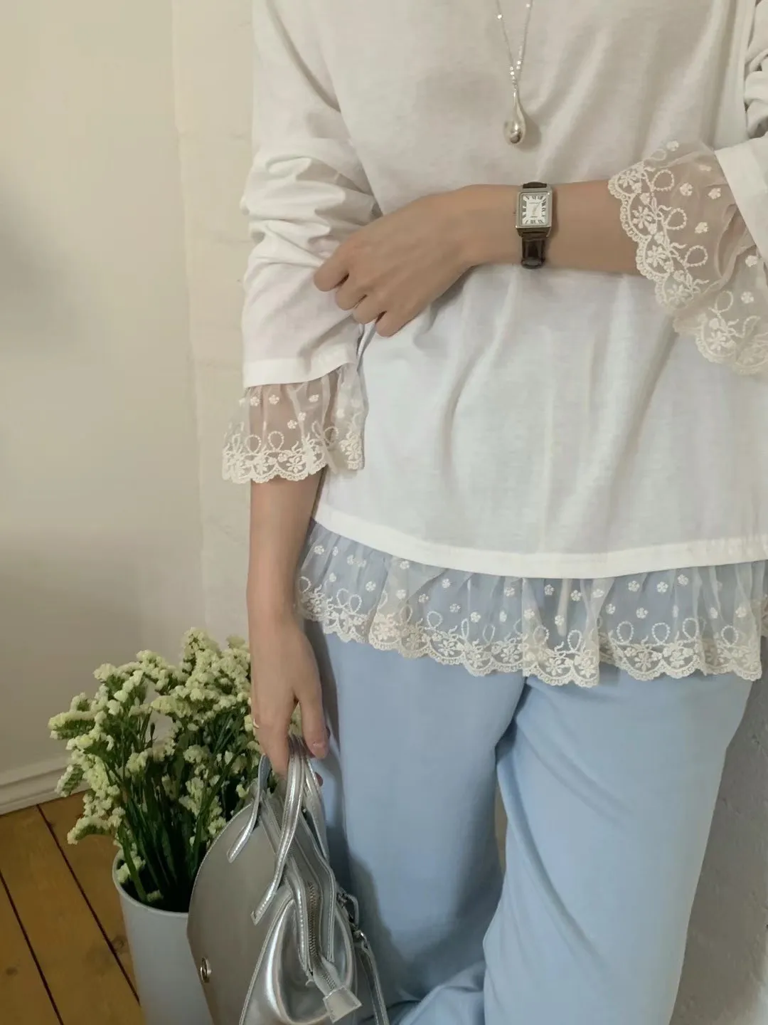 棉 輕盈薄款 涼爽體感 手袖下擺透膚蕾絲