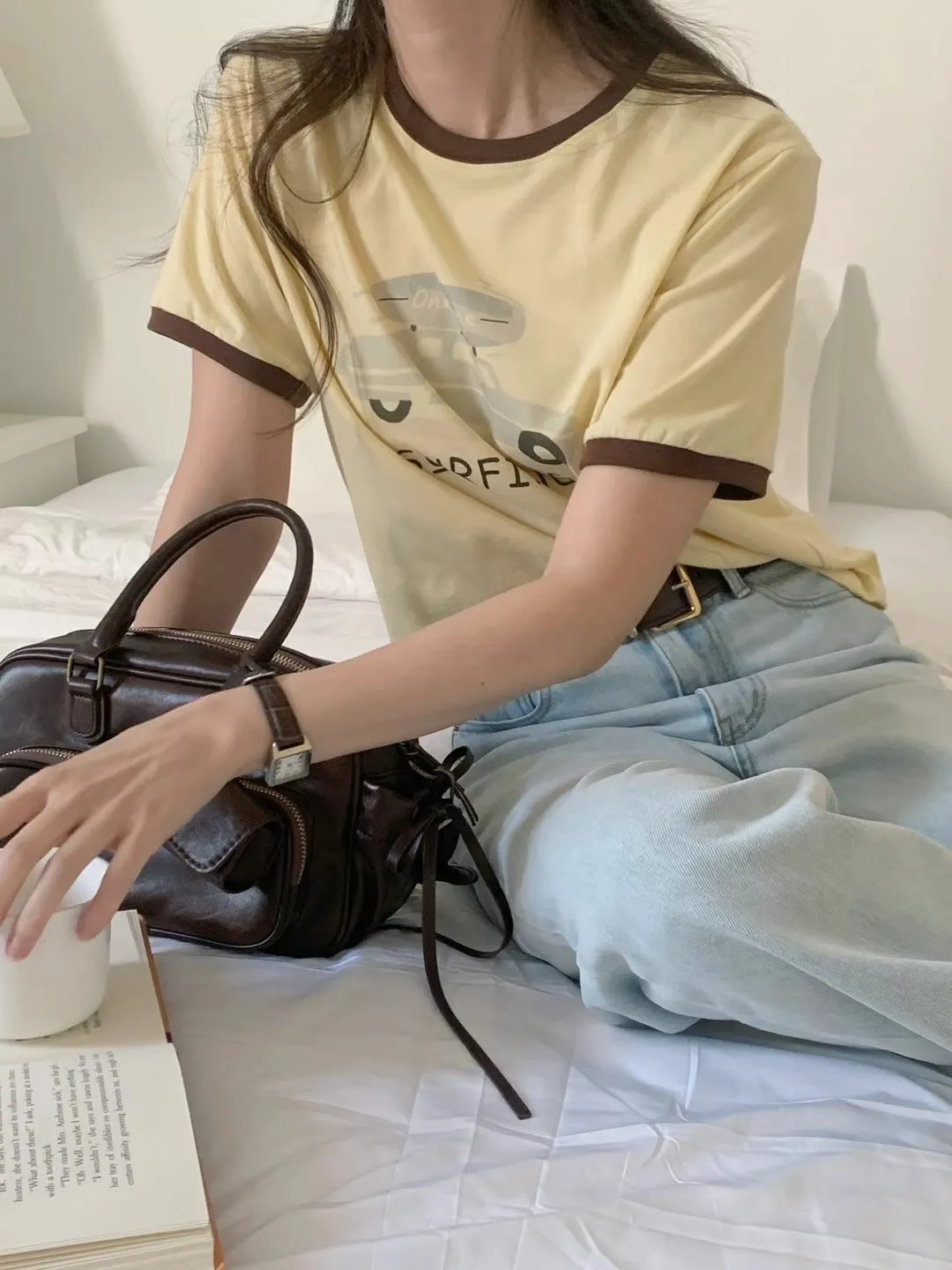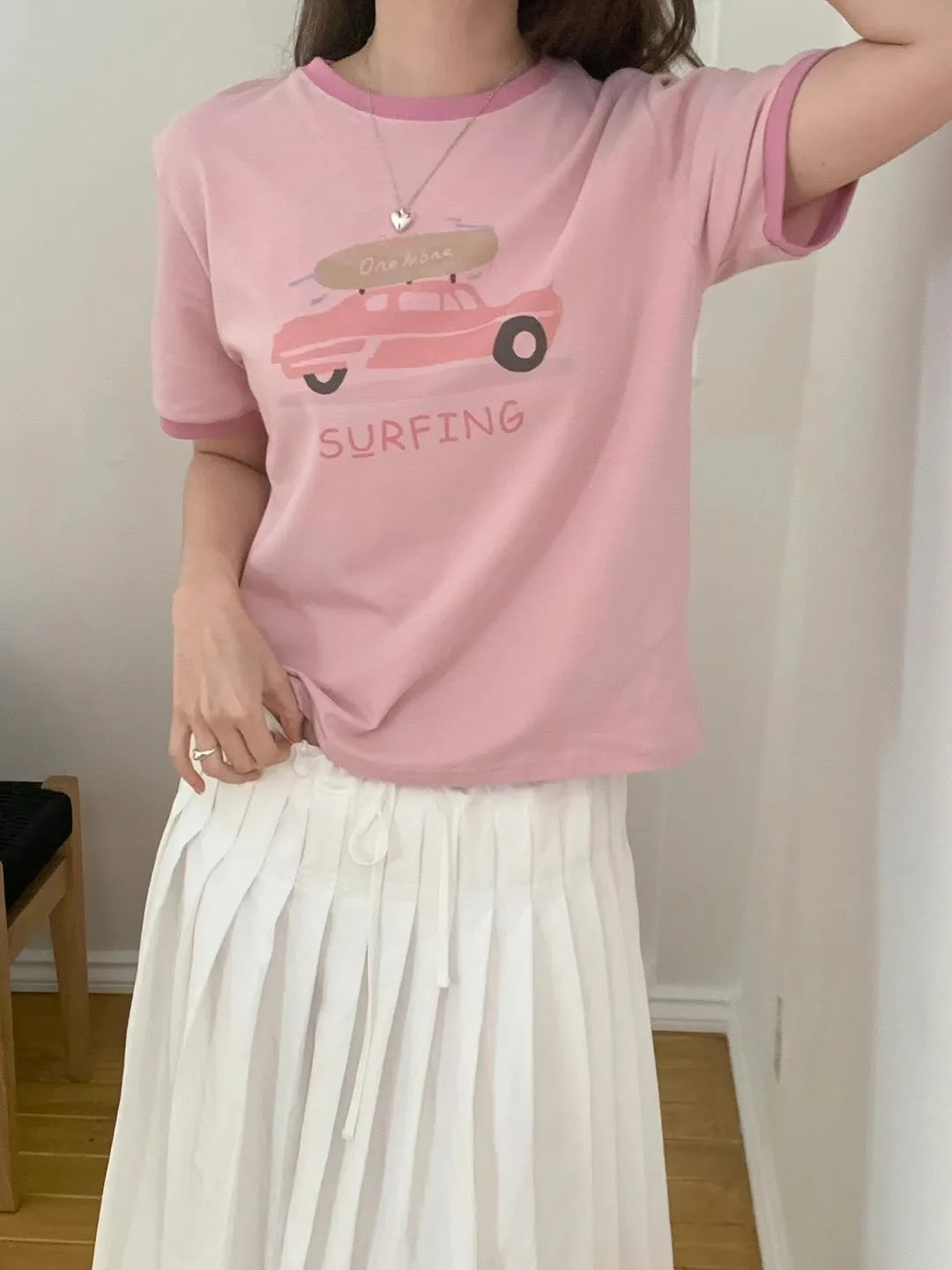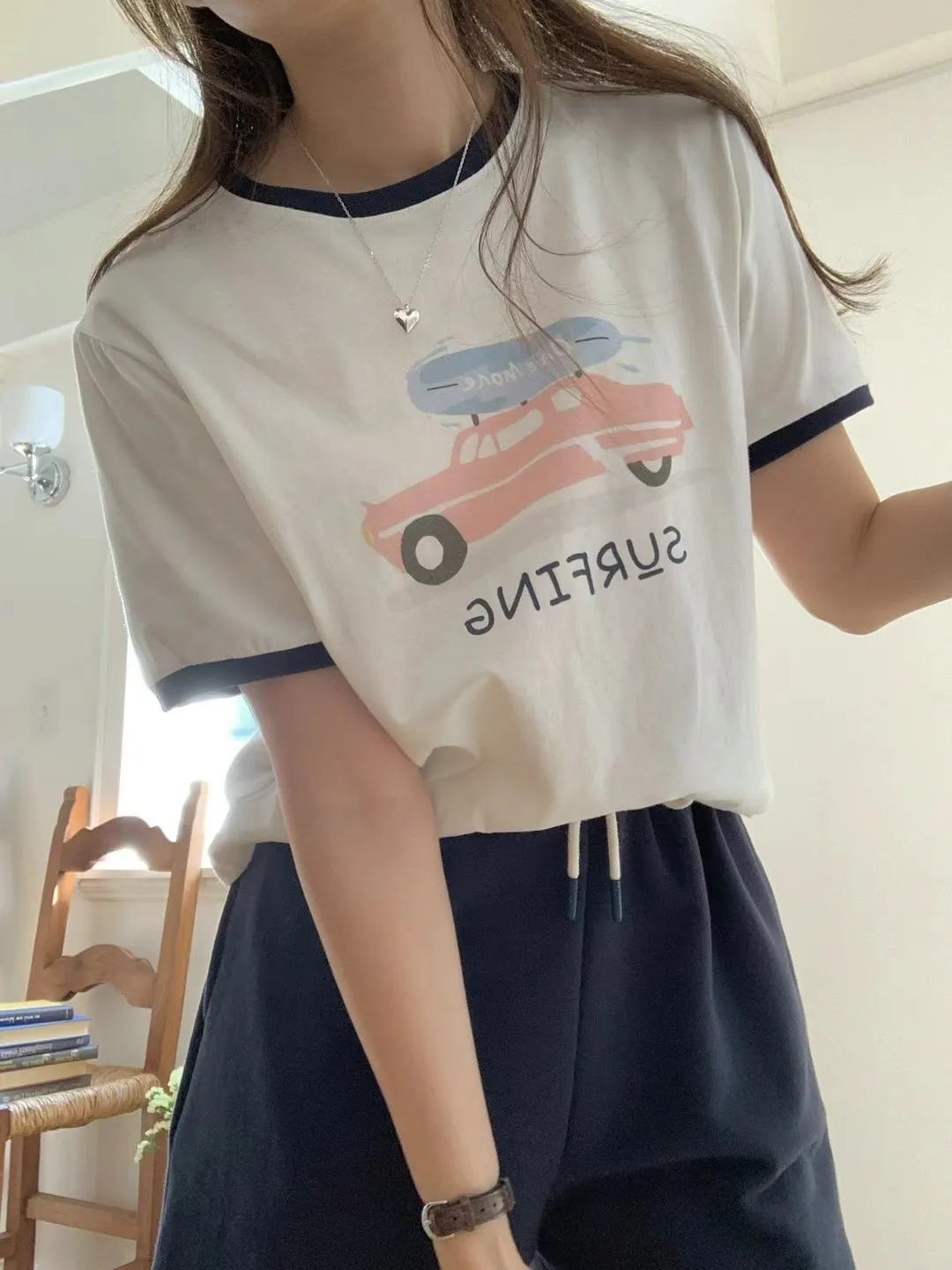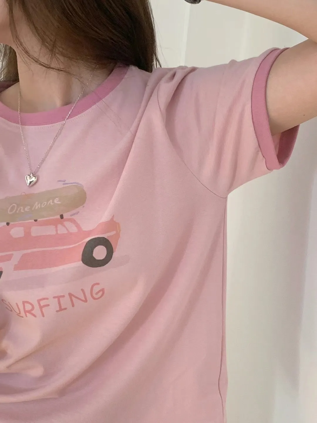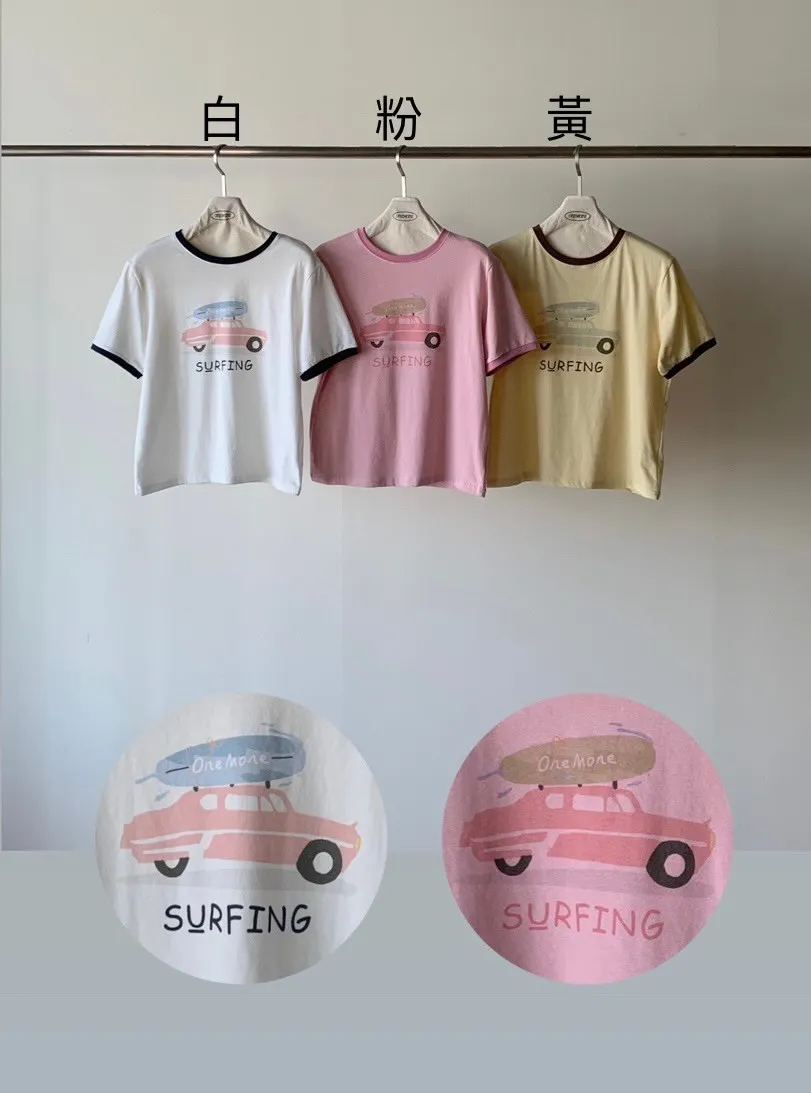 AK642可愛車車滾邊短袖Tshirt 白 黃 粉 官網價$710 線上價$680