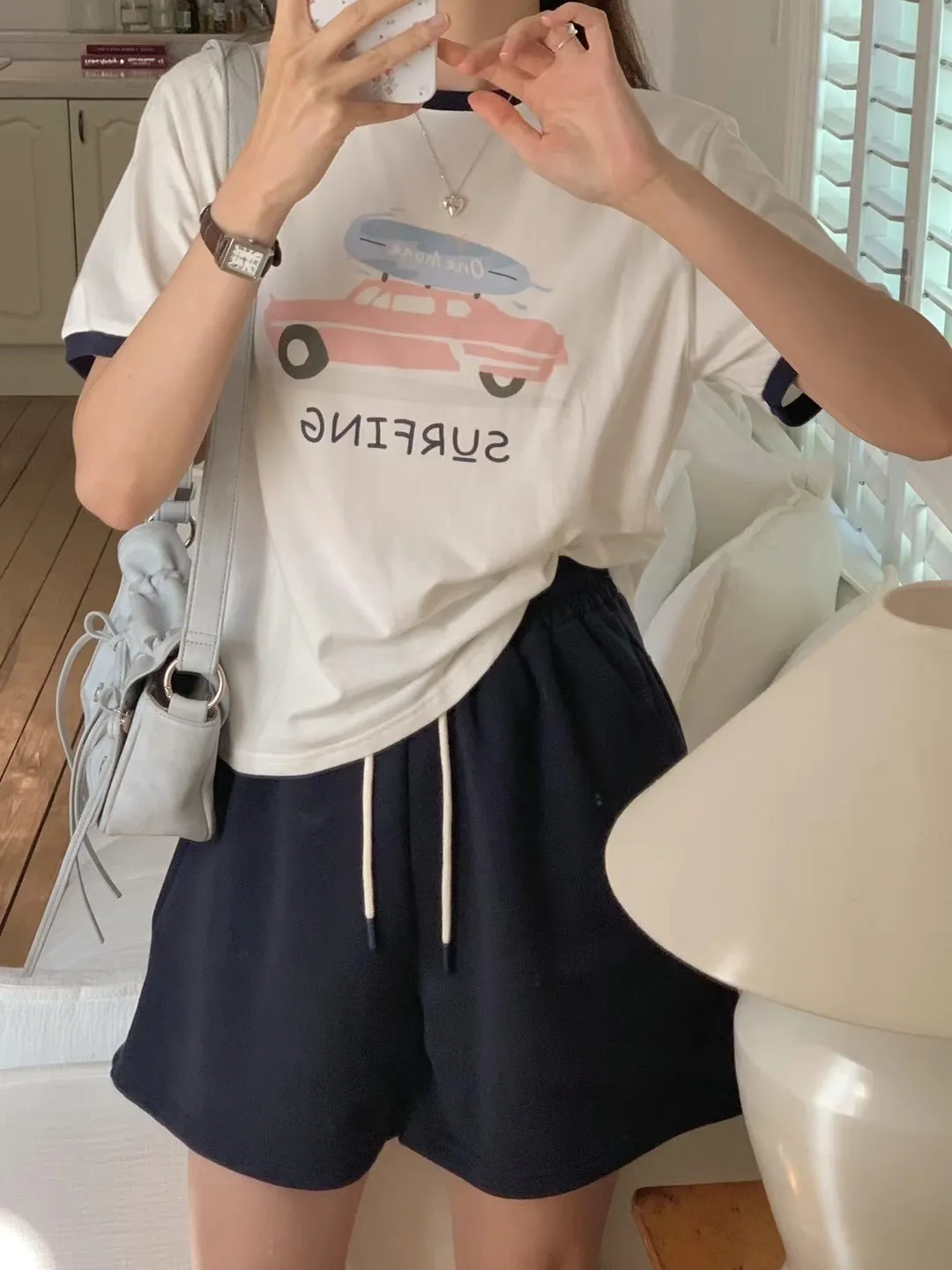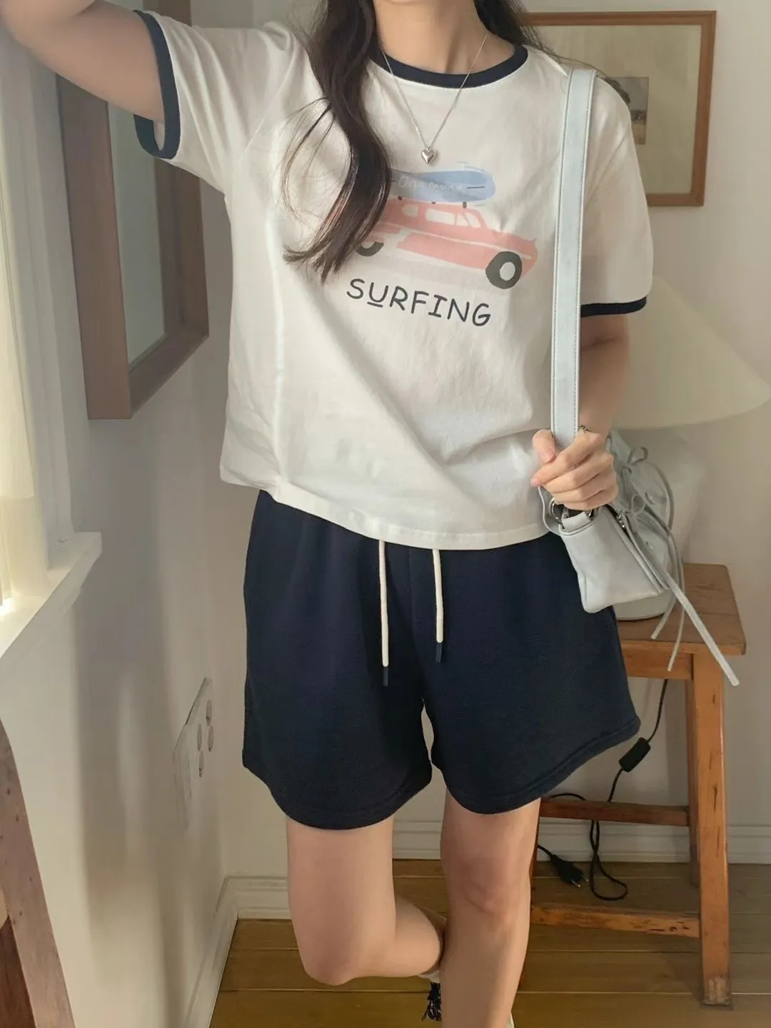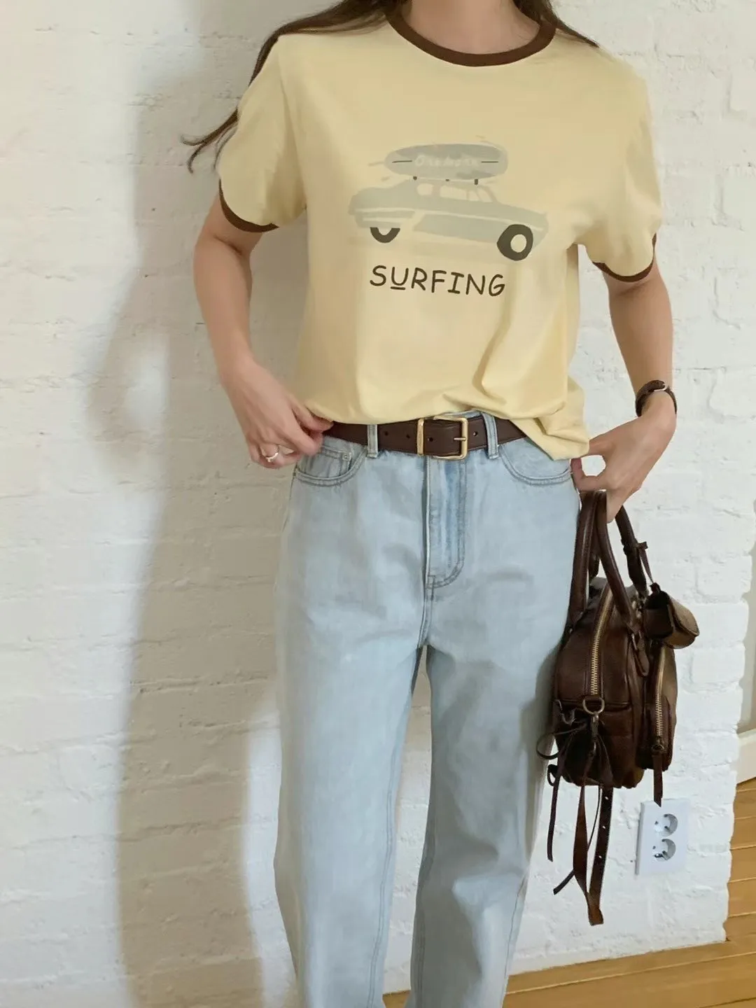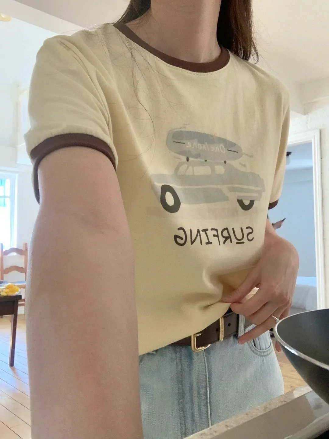 AK642可愛車車滾邊短袖Tshirt 白 黃 粉 官網價$710 線上價$680