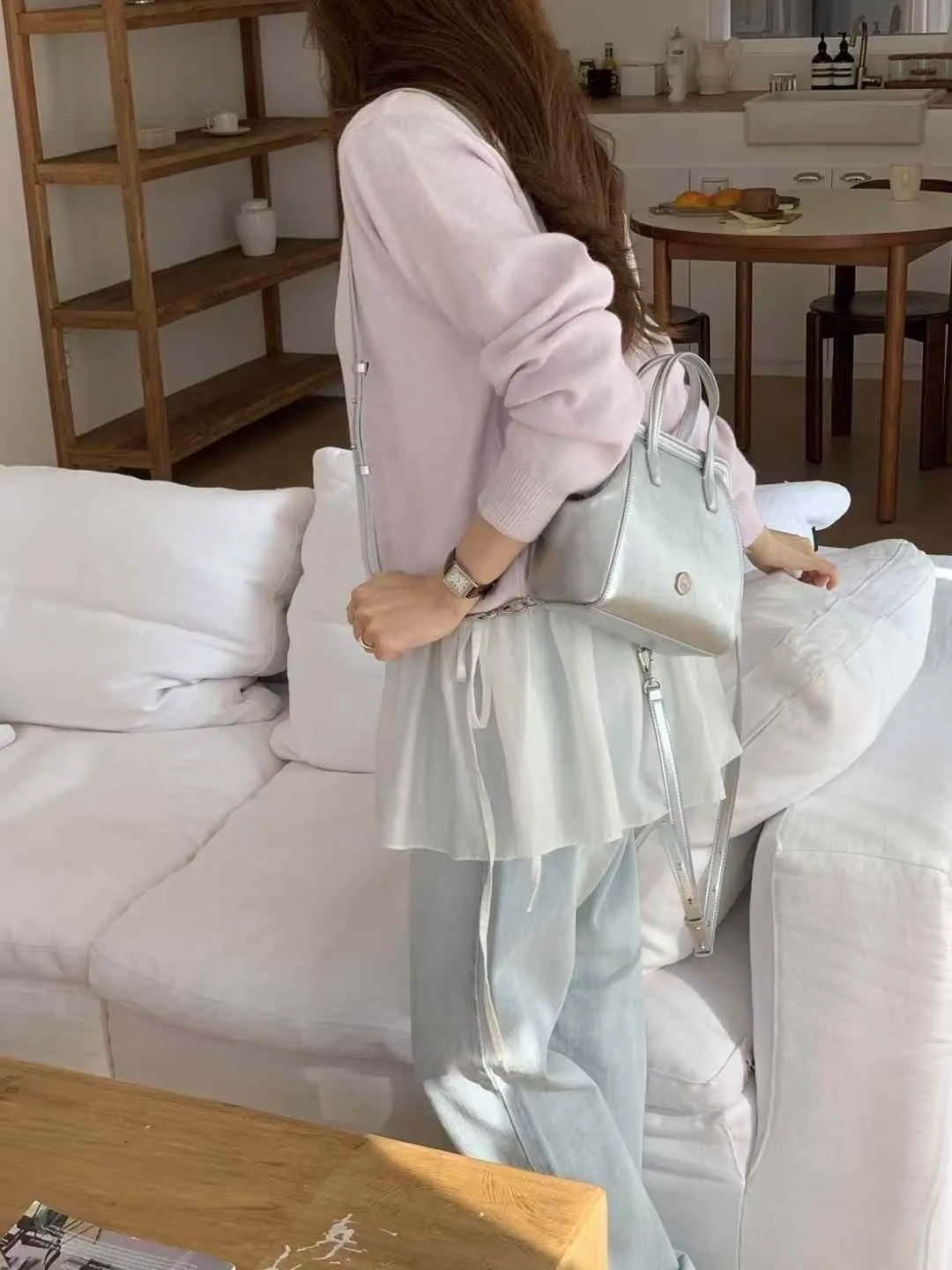 AK647小款的牛皮包包 銀 黑 官網價$1790 線上價$1760
